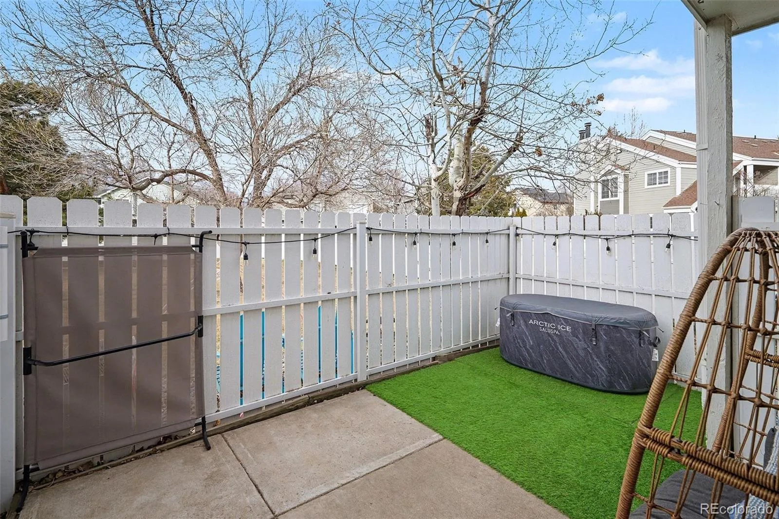 This gorgeous, 2 bed, 2 bath cottage-like end unit is full of light, and features both a charming front patio and a fenced in little yard off the kitchen/dining area for your outdoor enjoyment. It backs to a quiet green area, and its location within the coveted Indian Creek neighborhood is convenient to every part of the Denver Metro area, while allowing easy access to many parks and outdoor areas. The Highline and Cherry Creek trails are close, as is the Cook Recreation Center. The community is clean and well-kept, with a sparkling outdoor pool to enjoy in the summer.
