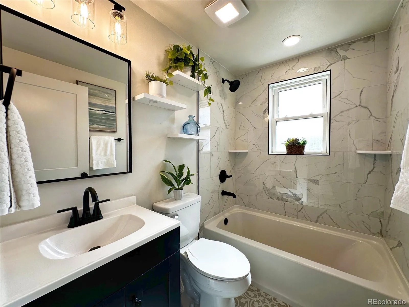 Recent improvements are extensive and meaningful, starting with a Class 4 Owens Corning hail-resistant roof paired with new 5” seamless gutters. Major systems have been replaced with a brand-new Goodman high-efficiency natural gas furnace, central AC, and a new 50-gallon hot water heater. Inside, you’ll find brand-new appliances, new flooring, fresh paint, and updated fixtures throughout, creating a clean, modern feel from top to bottom. The kitchen is highlighted by quartz countertops and a center island, offering both style and functionality.