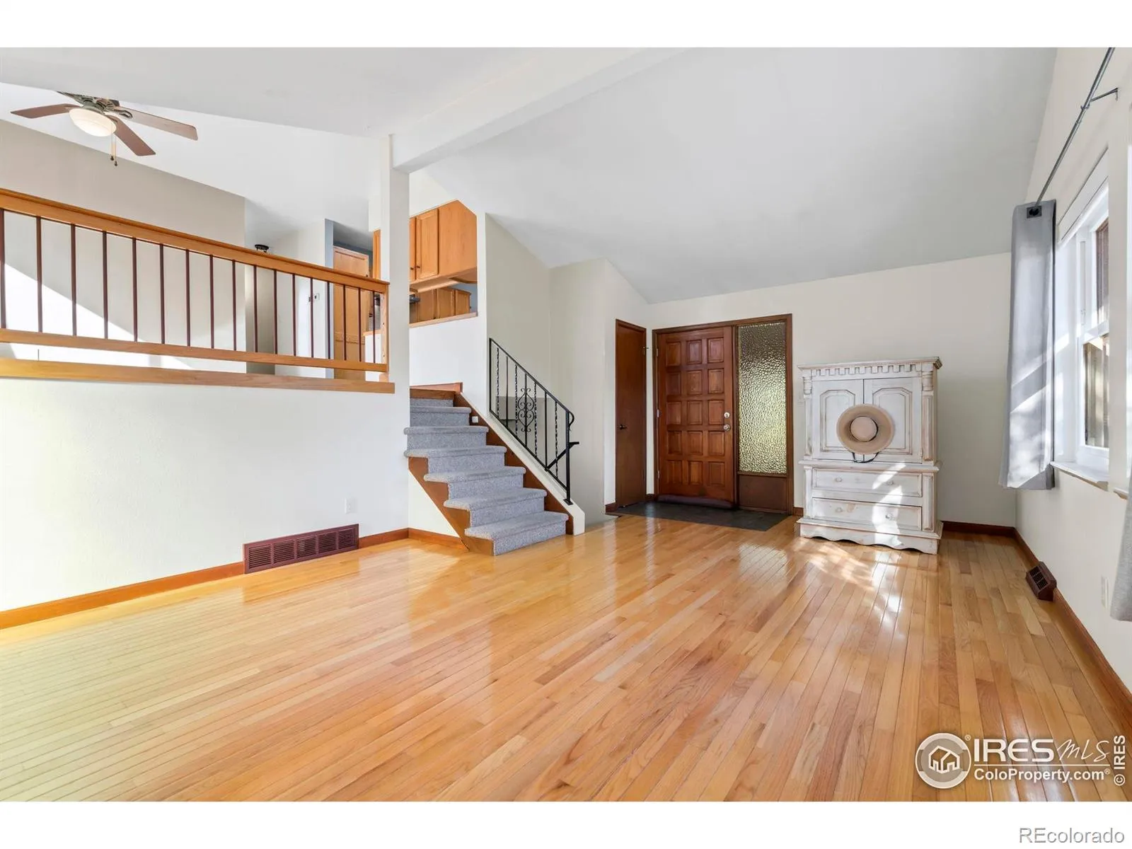 Located on a quiet street in the heart of Loveland, this home has so many features to love. Move in ready and lovingly cared for, this home is a clean gem. There is more living space than what is included in square footage. Enter on ground level into the enclosed patio room which leads to the main level living room that features vaulted ceilings. Step up to dining room that flows to the kitchen and the two bedrooms and bath. Farmhouse sink and new gas stove with hooded vent updated by current owners. Kitchen and dining room have been freshly painted. Skylight in kitchen brings in nice light. Basement includes an additional living space with brick fireplace with gas logs with tiled floors and custom woodwork. Laundry/mudroom is spacious with a door leading to the oversized garage. With a built in work table and lots of storage, pegboard on wall, this is a dream garage. A bonus enclosed outdoor patio includes a newer hot tub. Outside you will find a gardners dream including garden beds and planter boxes. The large backyard is an oasis in the summer with a decorative storage building. Newer Lennox furnace has humidifier. Newer Roof with warranty. The location can’t be beat situated near Loveland High, Benson Sculpture Garden, Olde golf course and Lake Loveland. This one is a must see in person!