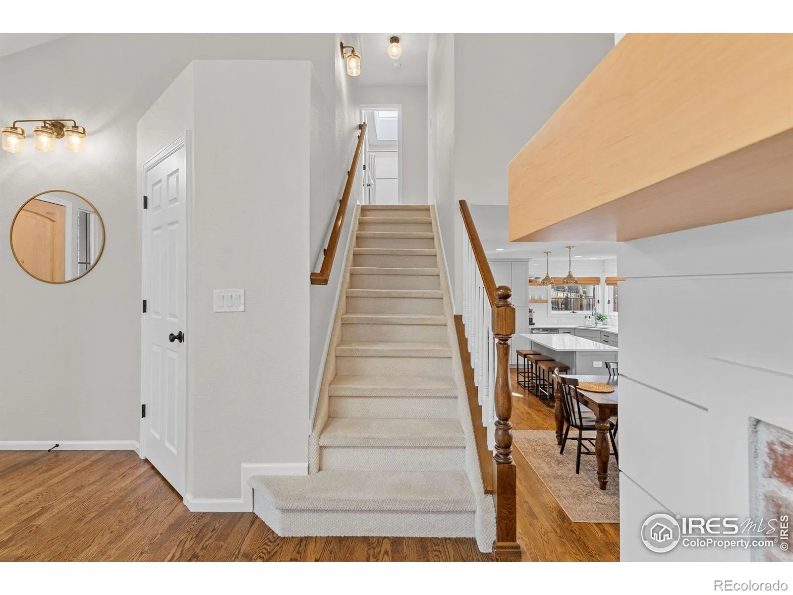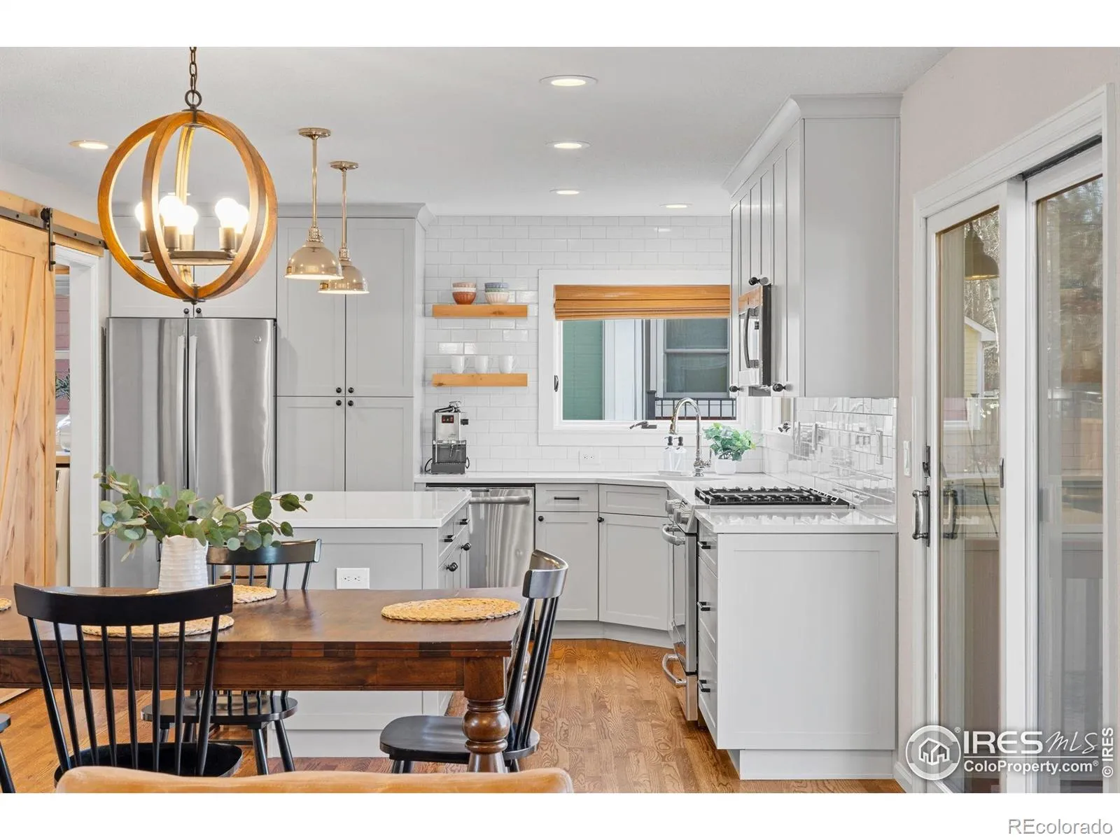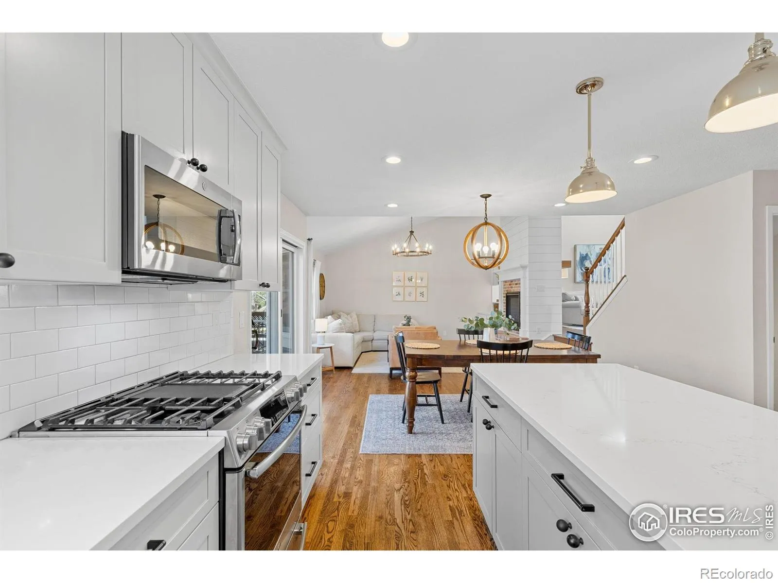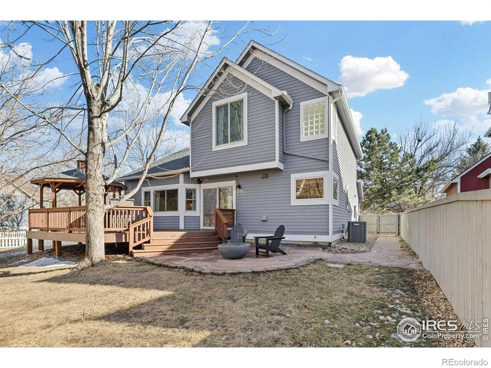 OPEN SATURDAY 2/7 12:00-2:00pm! Experience tree-lined streets, white picket fencing & a cul-de-sac location in this renovated home in Indian Peaks. Begin your mornings on the sunny, south-facing front porch – with brand new steps & railing – before stepping into a thoughtfully updated interior featuring solid hardwood floors throughout the main level. The front living room is filled with natural light and character, offering soaring ceilings, skylights, clerestory window, a cozy window seat with built-in drawers, and a striking double-sided gas fireplace with brick and shiplap surround. At the center of the home, the fully reimagined kitchen impresses with abundant cabinetry, quartz countertops, open shelving, and an expanded island with bar-top seating. It flows seamlessly into the dining area & family room, where additional built-ins and the gas fireplace create a warm, stylish gathering space. Step outdoors from the dining area to the expansive deck with a gas line for grilling and a gazebo ideal for relaxed summer evenings. The backyard also features a flagstone patio and generous grassy area for pets or play. Upstairs, there are 3 bedrooms, an updated full bathroom, a linen closet, and a tranquil primary suite featuring vaulted ceilings and a beautifully renovated spa-like bath with a frameless glass shower, dual-sink vanity, and soaking tub. The finished basement adds versatile living space with a recreation room (TV included), a bathroom, an additional guest bedroom or home office, and an unfinished area ideal for a home gym or extra storage. Enjoy peace of mind with a new water heater, newer roof, updating lighting, Anderson windows, refinished rear deck and so much more. Located just steps from Village Green Neighborhood Park and minutes from the restaurants, events & charm of both Old Town Lafayette & Downtown Louisville.
