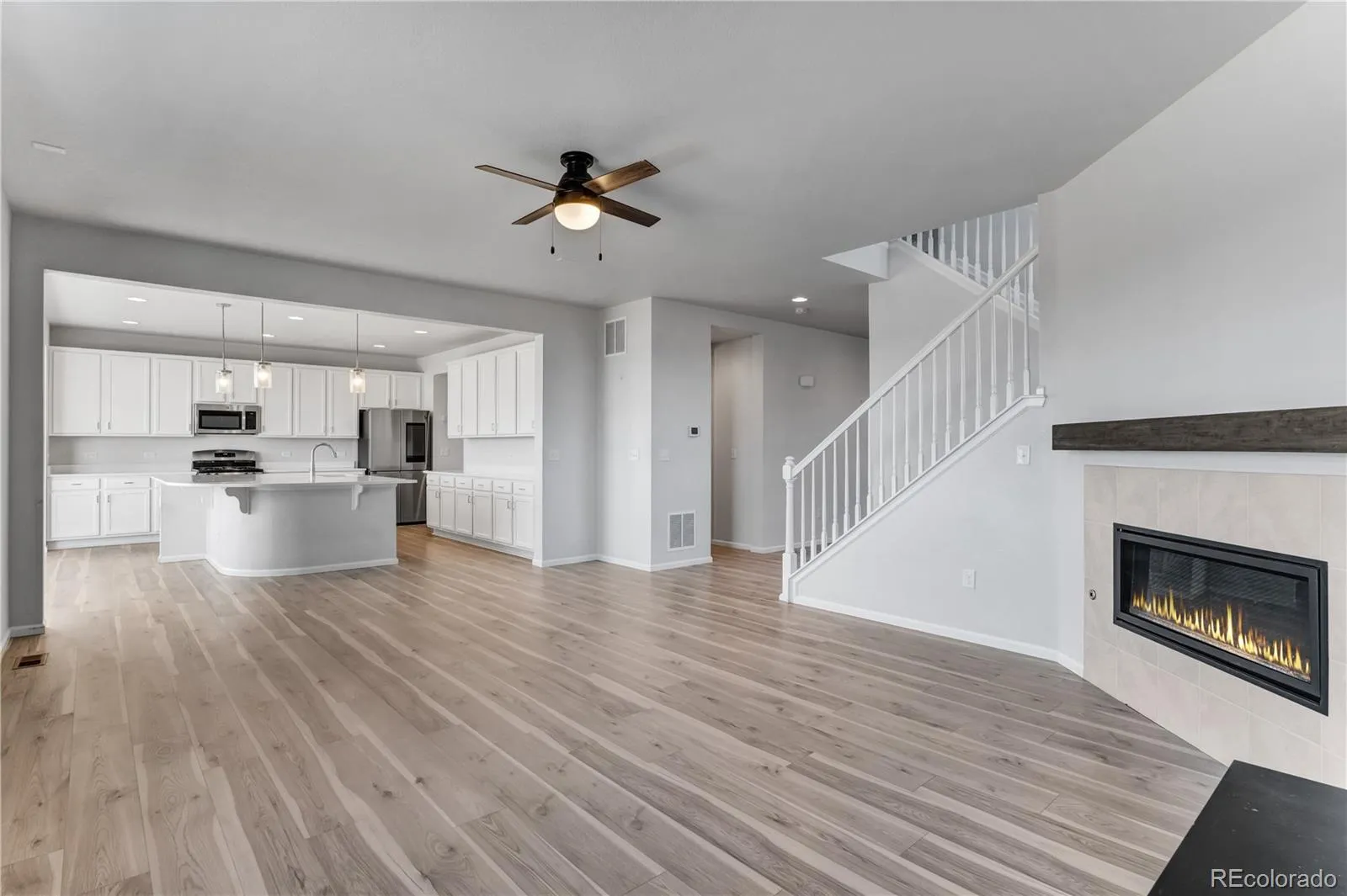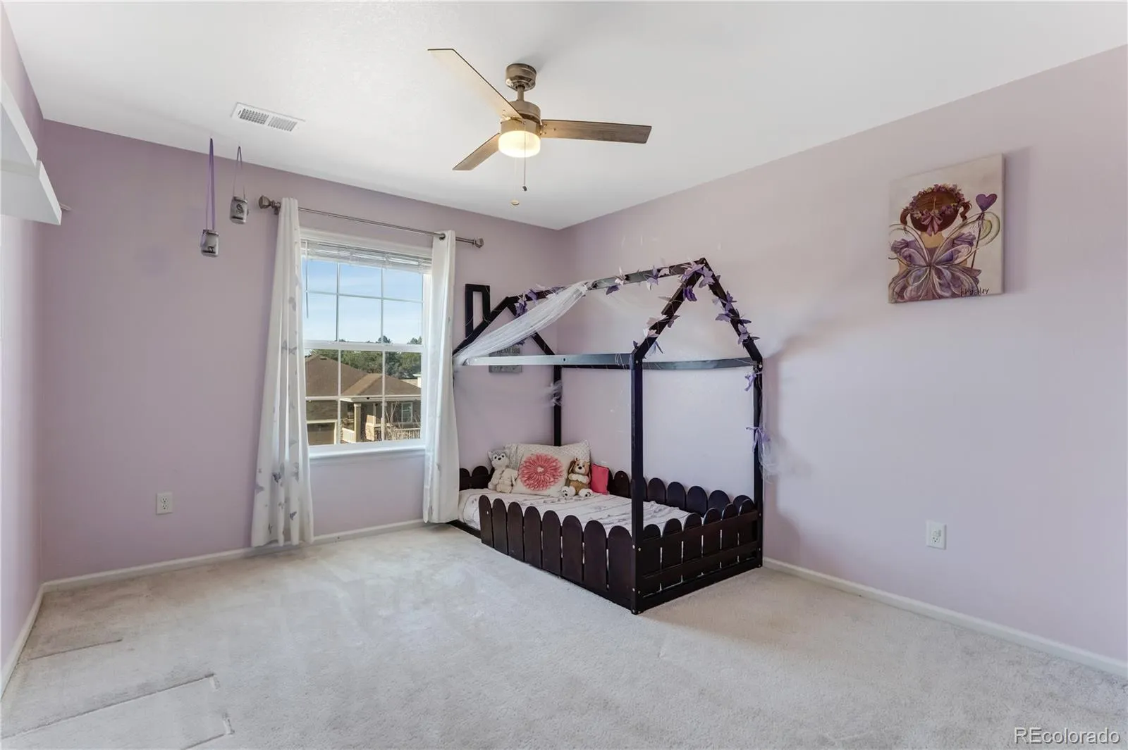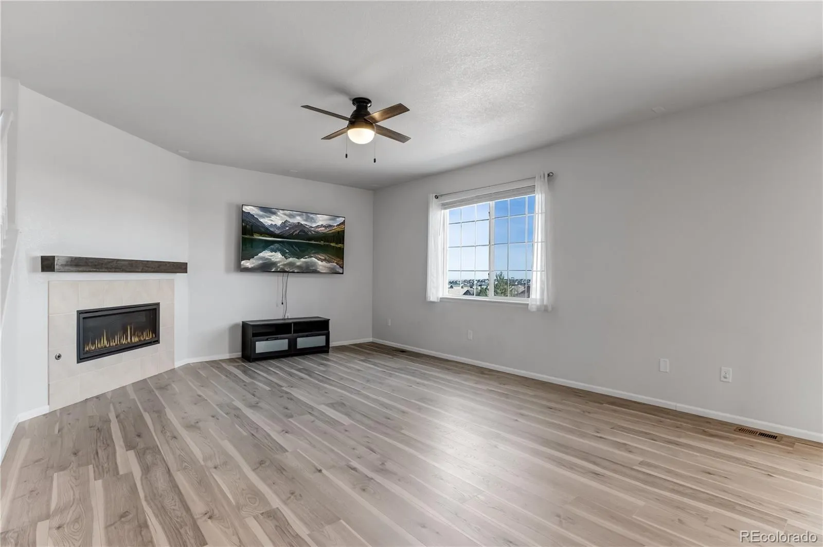 Located in Serenity Ridge within the highly sought-after Cherry Creek School District, stands this stunning 5-bedroom, 4-bath home. Showcasing mountain views from the second floor and serene views of the Aurora Reservoir, this home offers space, style, and modern efficiency. The open-concept layout features soaring ceilings and abundant natural light. The gourmet kitchen is equipped with white cabinetry, stainless steel appliances, a built-in gas stove, and an oversized island ideal for entertaining. A main-level office and cozy gas fireplace add comfort and functionality. Upstairs includes spacious bedrooms and a versatile loft, while the finished basement offers a large recreation area, additional bedroom, and full bath—perfect for guests or multi-generational living. Fully paid-off solar panels and dual HVAC systems ensure energy efficiency and year-round comfort. Conveniently located near Southlands Mall and E-470 for easy access to shopping, dining, and commuting.