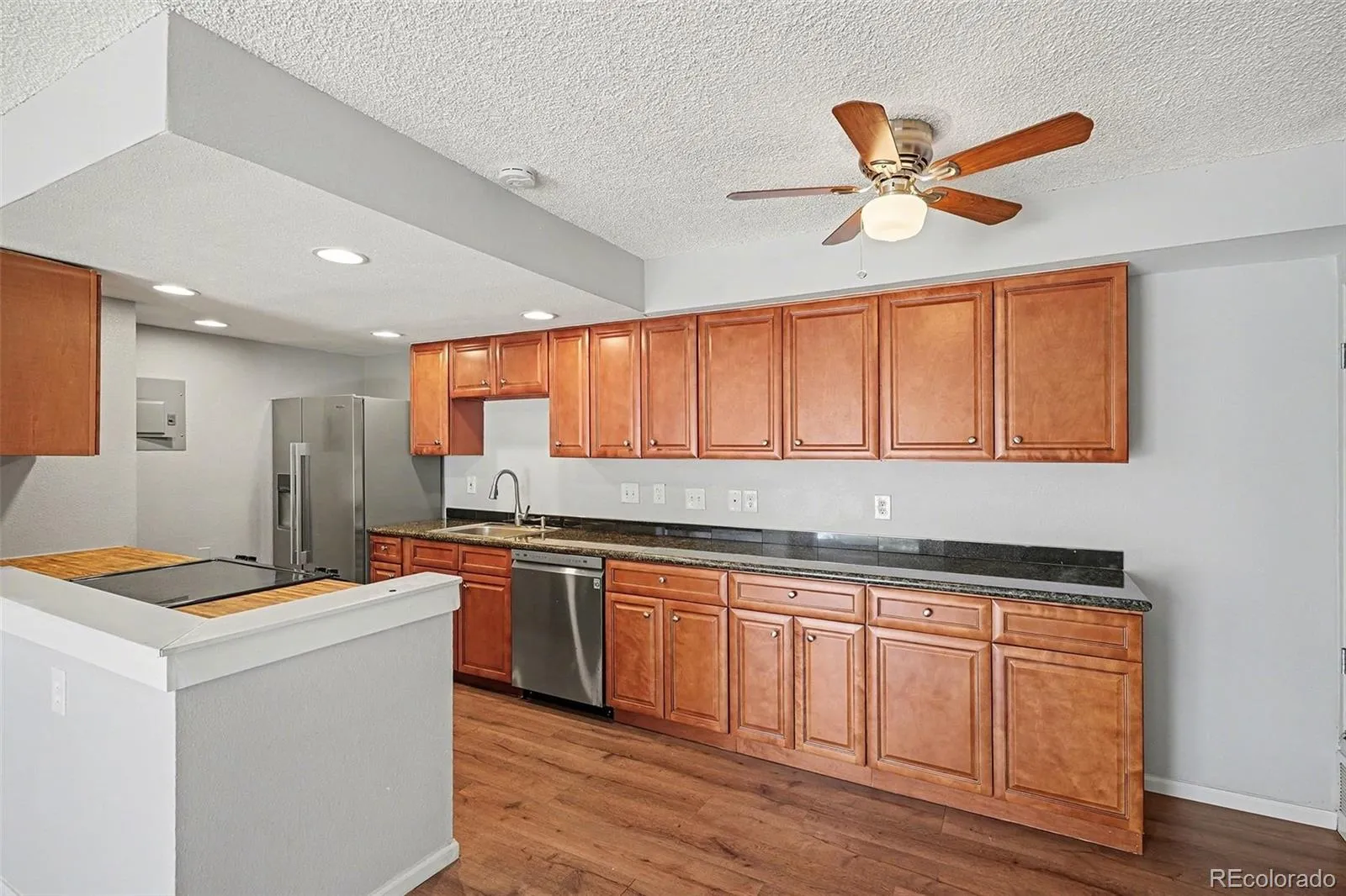 Centrally located and thoughtfully updated, this main-floor turnkey condo in Aurora’s Brandychase community offers zero-maintenance living in nearly 1,000 sqft, welcome home to 14142 E Colorado Drive. Beautiful new laminate hardwood floors and fresh interior paint (both completed in 2024) greet you upon entry and complement the spacious open living area. Abundant natural light fills the room from the large sliding glass door, easily welcoming the outdoors in. Cozy up by the wood-burning fireplace on cool Colorado evenings or enjoy sipping your morning coffee on the covered patio in the warmer months to come. The updated eat-in kitchen features both butcher-block and granite countertops, ample wood cabinetry, and a pantry. Brand new carpet (2025) extends into two generously sized bedrooms. The primary is complete with dual closets and an ensuite updated bathroom. Additional features of this property include a hew HVAC (2025), in-unit laundry (newer, included), and both a detached garage and 1 reserved parking spot. HOA includes a community pool, sports courts, a park, and a playground. Ideally situated within minutes of shopping, dining, public transportation, the Anschutz campus, and major roadways, this property delivers comfort, style, and an ideal location.