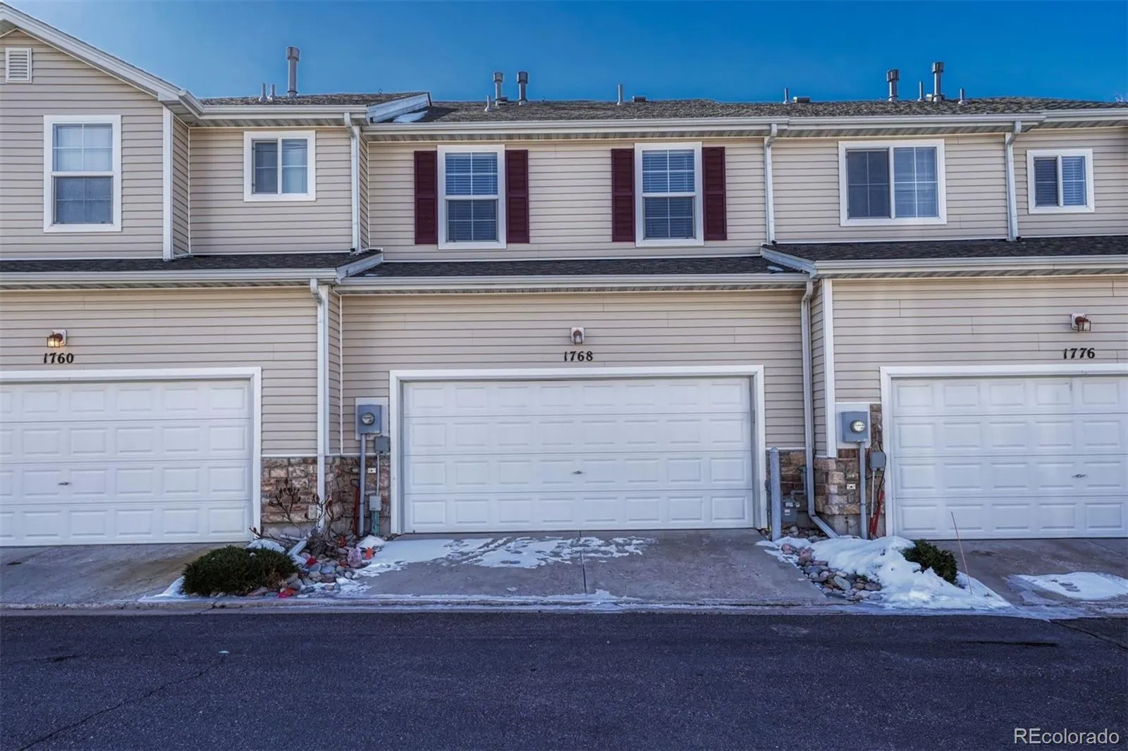 Welcome home to this inviting, move-in-ready three-bedroom, three-bath townhome featuring fresh interior paint, new carpet, luxury vinyl flooring in the kitchen, and new blinds throughout. The open, light-filled main level offers a welcoming floor plan ideal for both everyday living and effortless entertaining. The kitchen offers ample cabinet space, a pantry, all existing appliances, and a breakfast bar overlooking the dining area and spacious living room. It’s ideal for gatherings or relaxed evenings at home. A convenient powder room, additional storage, and direct access to the two-car garage complete the main level. Upstairs, the primary suite is a comfortable retreat with vaulted ceilings, a large walk-in closet, ceiling fan, and a private en-suite bath with double vanities. Two additional bedrooms, a full bath, and a generously sized laundry room with washer and dryer included round out the upper level. Set within the well-maintained Claremont Ranch community, this home is within walking distance to shopping and dining, close to trails, and offers easy access to the Powers corridor, Peterson and Schriever Space Force Bases, and District 49 schools. Comfort, convenience, and location come together beautifully here – don’t miss the opportunity to make this lovely townhome your own.