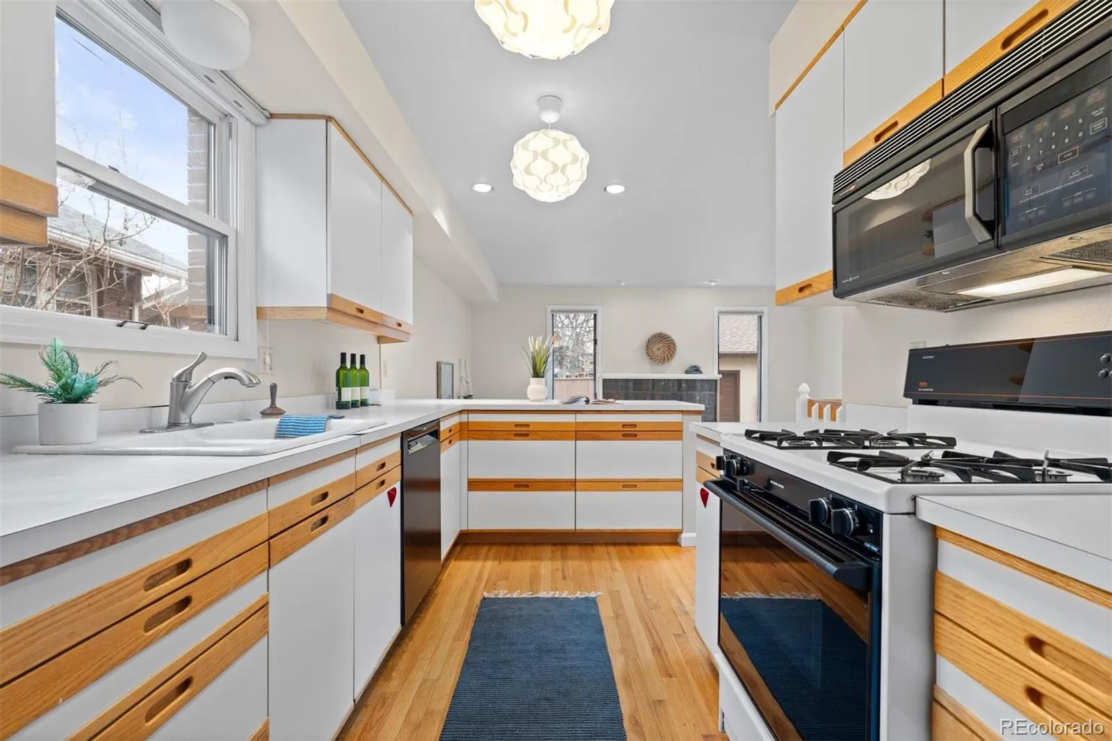 Tucked on this prime block in Congress Park, this beautiful two-story home exudes classic charm and offers modern functionality. A rare find in Congress Park, this in-fill 1980’s two-story features vaulted ceilings, windows galore, a focus on access to the outdoors, upstairs laundry, 8-ft ceilings in the basement and spacious living areas. With over 3,300 finished square feet, four bedrooms and four baths, this home is well appointed. The main floor is flooded with natural light and features a spacious living room with vaulted ceilings, fireplace and access to the outdoor deck. The cozy dining room, kitchen and family room offer intimate spaces ready for your vision. The second floor features three bedrooms including the primary bedroom, all with vaulted ceilings. The primary offers a large walk-in closet, five-piece bathroom and Juliet balcony, while the two additional bedrooms are adjoined with a Jack and Jill bathroom and laundry closet. The spacious basement offers a large living room, conforming bedroom, full bathroom and over 400 unfinished sq ft for storage or expansion. The dreamy backyard features a generous mahogany deck, raised garden beds, perennial gardens, mature trees and room to play. This property is surrounded by mature trees including the stunning 150-200 year old Blue Spruce in the front yard that soars four stories high! Recent updates include a new class 4 shingle roof and gutters. The side-load two-car detached garage is extra deep with over 490 square feet, and the home features paid-in-full solar panels for energy efficiency. Award-winning schools including Teller Elementary, Morey Middle and East High School are all located just minutes away. The Denver Botanic Gardens and Congress Park are located just 1 mile from Milwaukee. With a 78 Walk Score, this location offers excellent options for commuting, transit, biking and easy access to neighborhood hot spots. Endless commuting with RTD bus lines 3 blocks away and light rail within 3 miles.