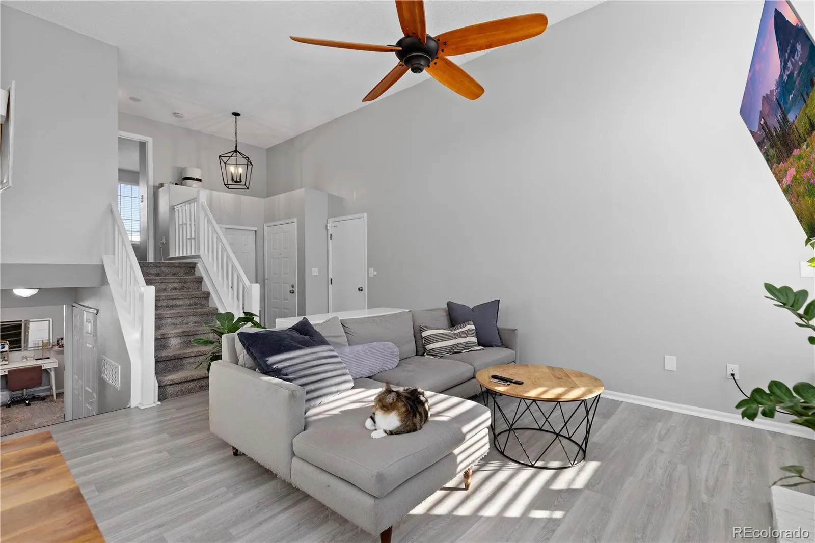 Freshly updated and move-in ready, this home is tucked away at the end of a quiet cul-de-sac with a private yard, perfect for relaxing or entertaining. The open floorplan is filled with natural light and showcases vaulted ceilings paired with new vinyl flooring throughout the main living areas. The updated kitchen features granite countertops, new cabinetry, and newer appliances, offering both style and function. Upstairs bedrooms have been refreshed with newer carpet and paint, creating comfortable and inviting spaces. Enjoy the sought-after Highlands Ranch lifestyle with access to four recreation centers offering pools, tennis courts, and fitness facilities. Ideally located near trails, shopping, and schools, this home combines modern updates with an unbeatable location.