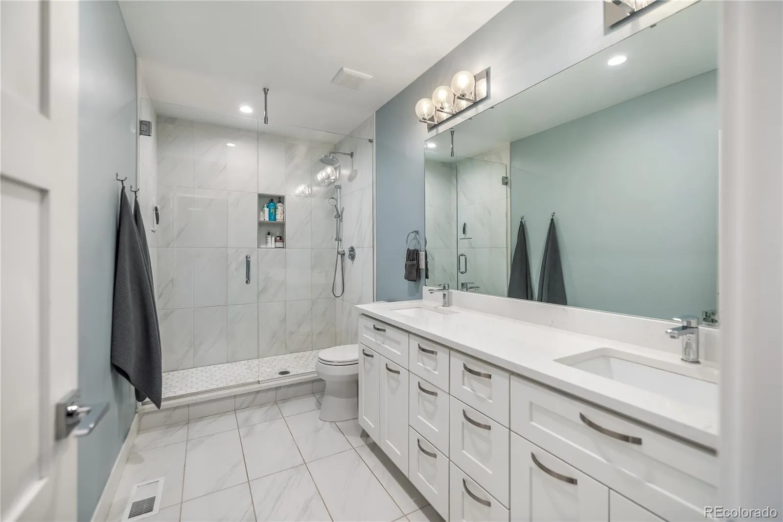 The main living area is anchored by one of two fireplaces and flows seamlessly into the kitchen, making it ideal for entertaining. The kitchen features a striking quartz waterfall island, high-end appliances, and ample storage. The primary suite has everything you need including a massive walk-in shower. With two distinct living areas, a spacious two-car garage, and a well-designed layout, this home offers flexibility and comfort. The ground-level living area and guest suite are currently operating as a permitted Airbnb, generating impressive income to help offset your mortgage by nearly HALF, should you choose. Enjoy walking to Sloan’s Lake, nearby restaurants, and hosting happy hour with beautiful views. A rare opportunity in a prime location—this one won’t last.