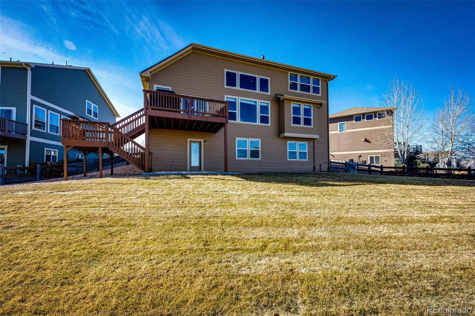 Location, location, location! This home has it all, located on an oversized quarter acre culdesac lot, backing to Blackbear Golf Course with amazing city and mountain views, you couldn’t ask for a better location in Canterberry Crossing. Walking distance to elementary, middle and high school, bike paths and hiking trails make this location ideal. This home boasts of over 4100 square feet of living space which includes a rare main floor primary bedroom suite with 5 piece bath. As you enter the home you are greeted by soaring ceiling heights and beautiful wood floors throughout, a spacious office, formal dining room, large great room with floor to ceiling windows and gas fireplace adjacent to the gourmet kitchen that includes granite counters, a gas cooktop, stainless steel appliances and breakfast nook, the large laundry/ mud room is located on the main floor next to the primary bedroom for easy access and a half bath completes the main floor. The second floor is exactly what your hoping for with a large loft area, bedroom 2 has a walk in closet, and the hall bath is next to it, bedrooms 3 and 4 are spacious and share a Jack and Jill bath. The entire home has beautiful windows with amazing views overlooking the Golf Course. The walkout basement adds another level of living with a bonus room, entertainment and gaming areas, a full bath and access to the stunning yard with mature landscaping. The 3 car garage completes the home. This home is truly one of the finest in Canterberry and offers a perfect spot to live the Colorado Dream. Come see your new home today!