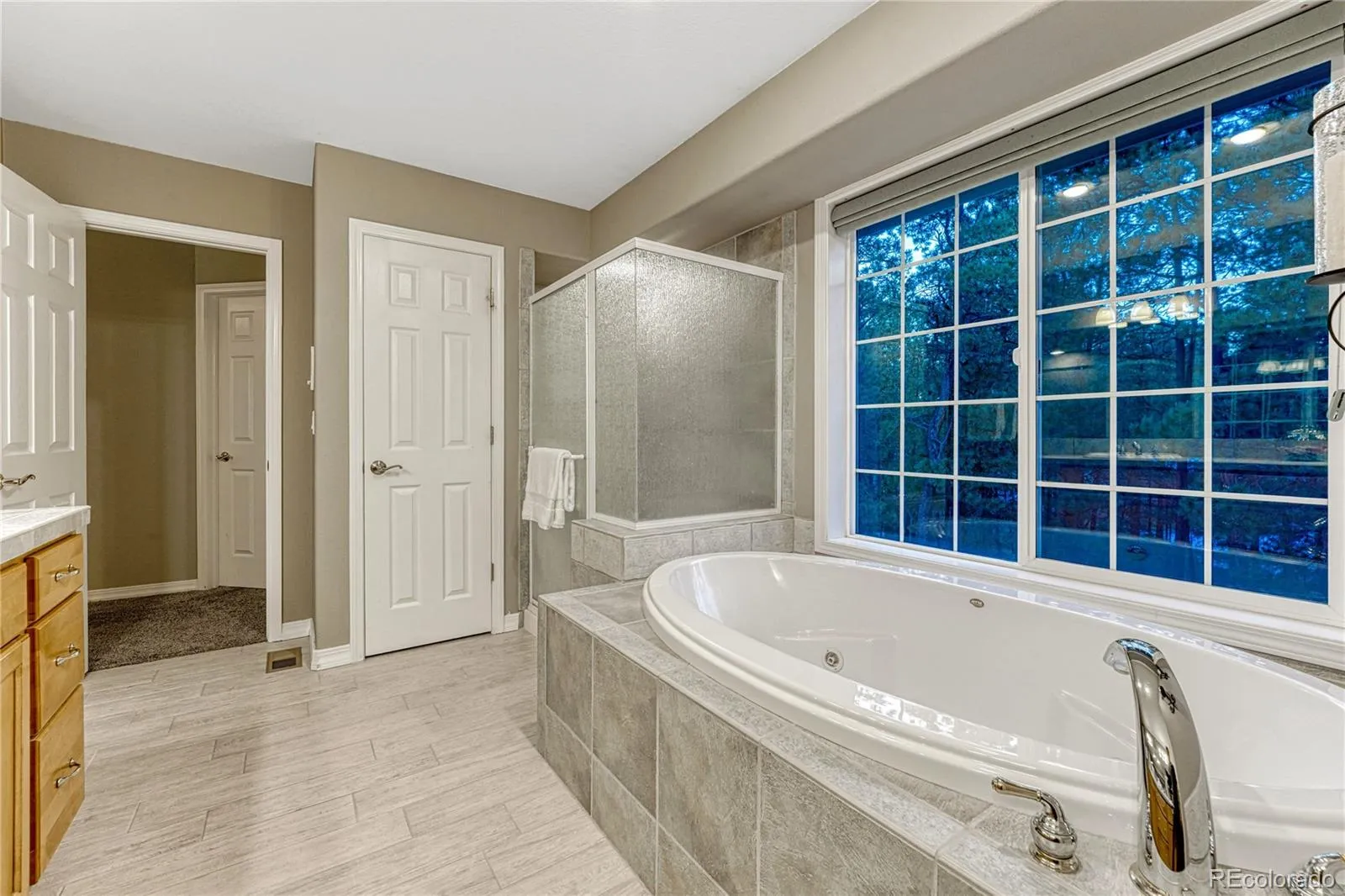 Located in the highly sought-after Walden III neighborhood, this expansive two-story home is situated on nearly an acre of beautifully treed land, offering a perfect blend of privacy, comfort, and convenience. With a sprawling wrap-around porch, a recently updated gourmet kitchen, and abundant living space, this 6-bedroom, 4-bathroom home is designed for modern living and entertaining. The bedrooms are generously sized throughout, including a luxurious primary suite, and 4 bathrooms to accommodate a growing family or provide ample space for guests. Two main level living areas provide room as a family area or as of now, being used as an office. Plantation shutters throughout add to its character. The walk out basement area offers a recreation room with a non conforming bedroom and a second bedroom with walk in closet. Relax and enjoy the outdoors on this spacious porch that wraps around the home, offering multiple seating areas and stunning views of the surrounding trees and landscape. This style of porch is rare in Colorado! The circular driveway gives ease to guests parking and adds to the curb appeal of the home. 3 car garage is perfect for cars and storage. Located in the highly-rated Academy District 38, this district offers excellent educational opportunities for your student. This home is special!