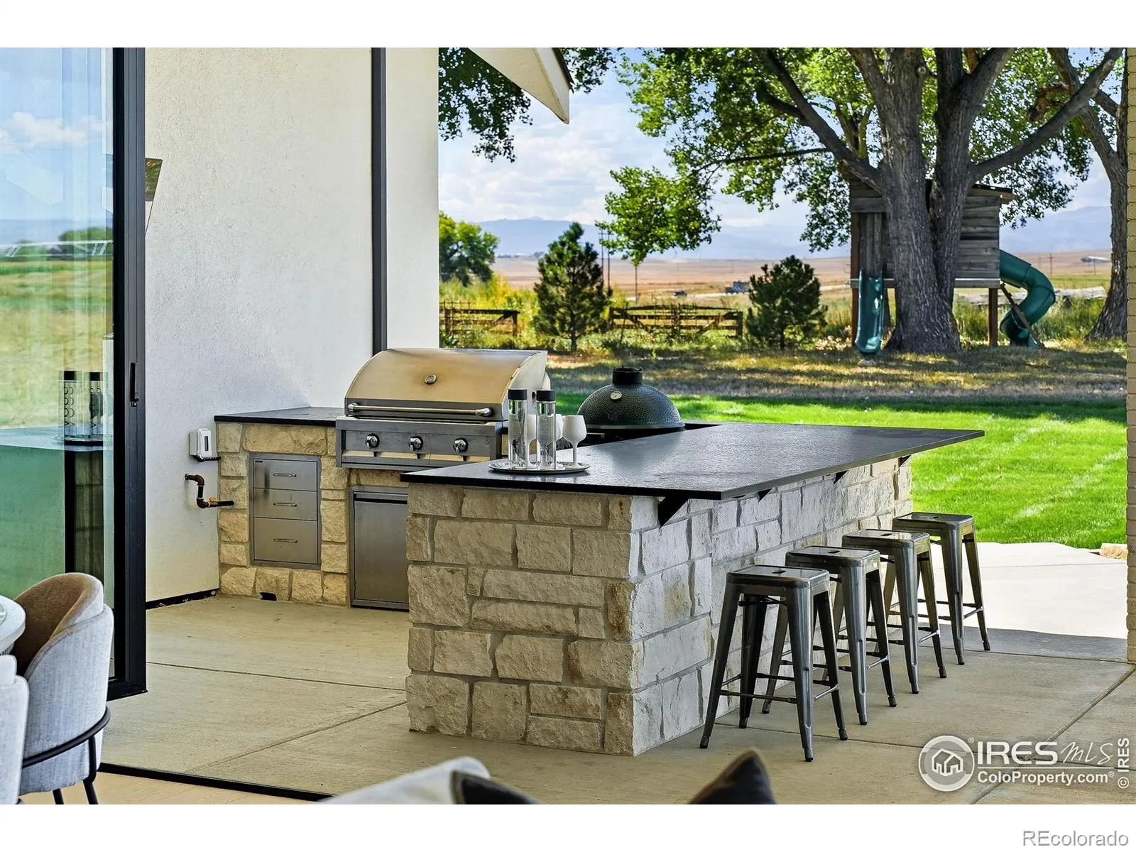 Welcome to a rare fusion of modern European elegance and Colorado farmland serenity. Set on 22 sweeping acres with 10 Class A Shares of Boulder White Rock Ditch, this 2023-built estate delivers a lifestyle as dynamic as it is luxurious. Every detail has been crafted for impact-from the dramatic Austin white stone wall with its now-iconic mantel to the soaring great room where 24-foot panoramic glass doors dissolve into a horizon-wide view of the Rockies. Inside, the home strikes a perfect balance of sophistication and comfort. Four spacious bedrooms, six spa-inspired baths, and playful built-in bunk beds ensure there’s space for everyone. Smart living is effortless here with Control4 home automation managing Thermador appliances, climate, and security. The primary suite is a private sanctuary with gauzy, switchable privacy glass, while a hidden wine cellar, secure vault, and custom steel doors add intrigue at every turn. Function meets flair in the details: two laundry rooms for convenience, a half-bath vanity crafted from the property’s original cattle corral, and sustainability woven throughout with passive/active solar systems and a brand-new irrigation network-tractor included. Head outside to discover an entertainer’s paradise. The outdoor kitchen gleams with stone and quartz counters, drink fridge, firepit, and TV hookups, making it the go-to gathering place. Surrounded by conservation easements (without being tied to one), the property offers uninterrupted privacy and open space in every direction.This isn’t just a home-it’s a statement. A place where heritage and innovation meet, where wide-open spaces frame mountain vistas, and where modern design creates a legacy for generations. Experience Colorado living at its most vibrant, purposeful, and unforgettable. LIVE BOLDER, LOVE BOULDER!