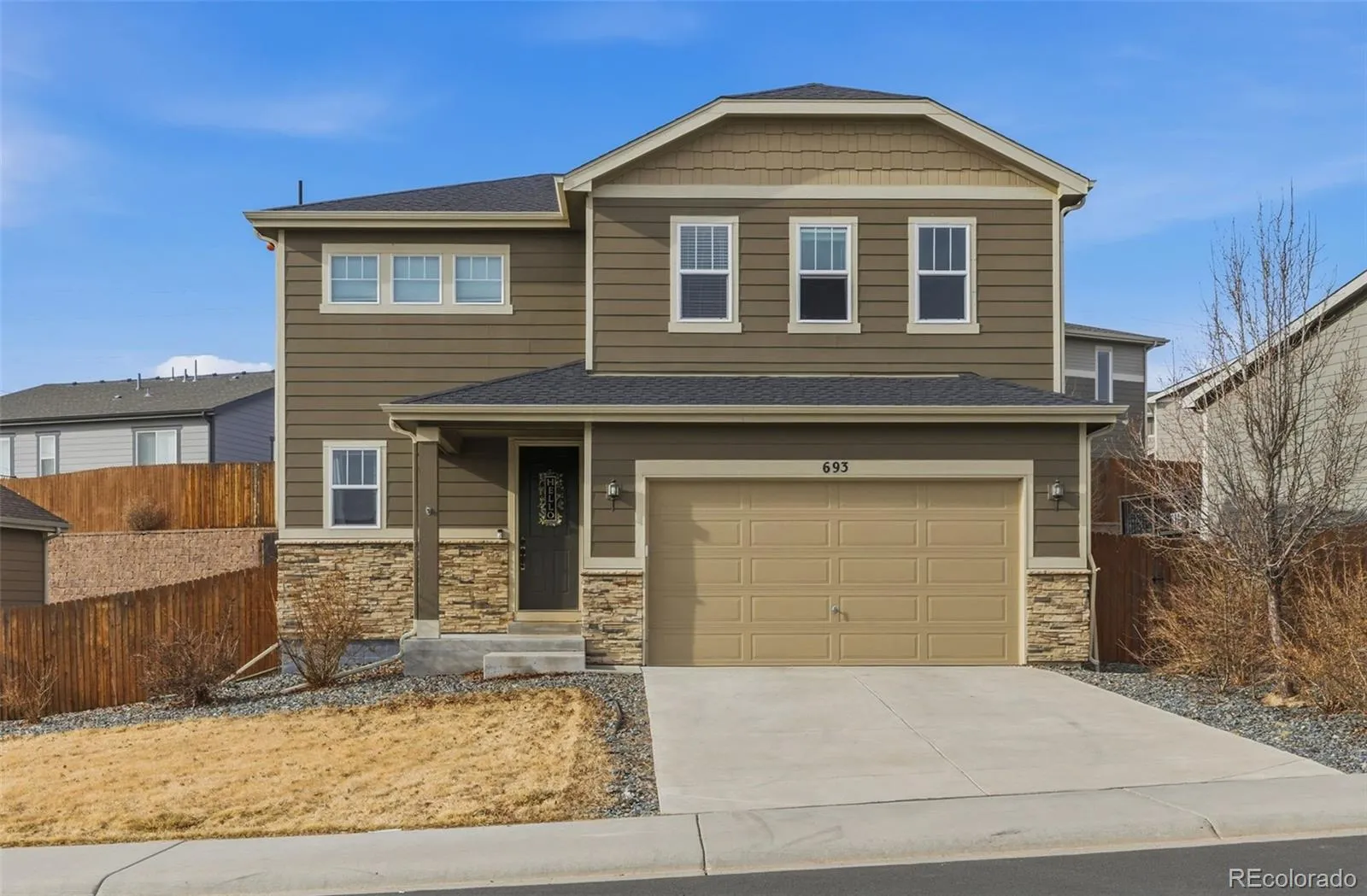 Welcome to 693 Blue Teal Street, a beautifully maintained 3 bedroom, 3 bath home with a 2 car garage in the sought-after Founders Village neighborhood of Castle Rock. This move-in-ready home features a modern kitchen with quartz countertops, a large center island, gas range, and an open-concept floor plan with high ceilings that create a bright and spacious atmosphere. The primary suite includes a walk-in closet and private ensuite bath. Upstairs, a large family room provides flexible space for a second living area, media room, home office, or bonus room. The landscaped backyard features a sprinkler system for easy maintenance and outdoor enjoyment. Community amenities include pool, clubhouse, trails, and tennis courts. Conveniently located near parks, shopping, dining, and major commuter routes, this Castle Rock home offers comfort, functionality, and a prime location.