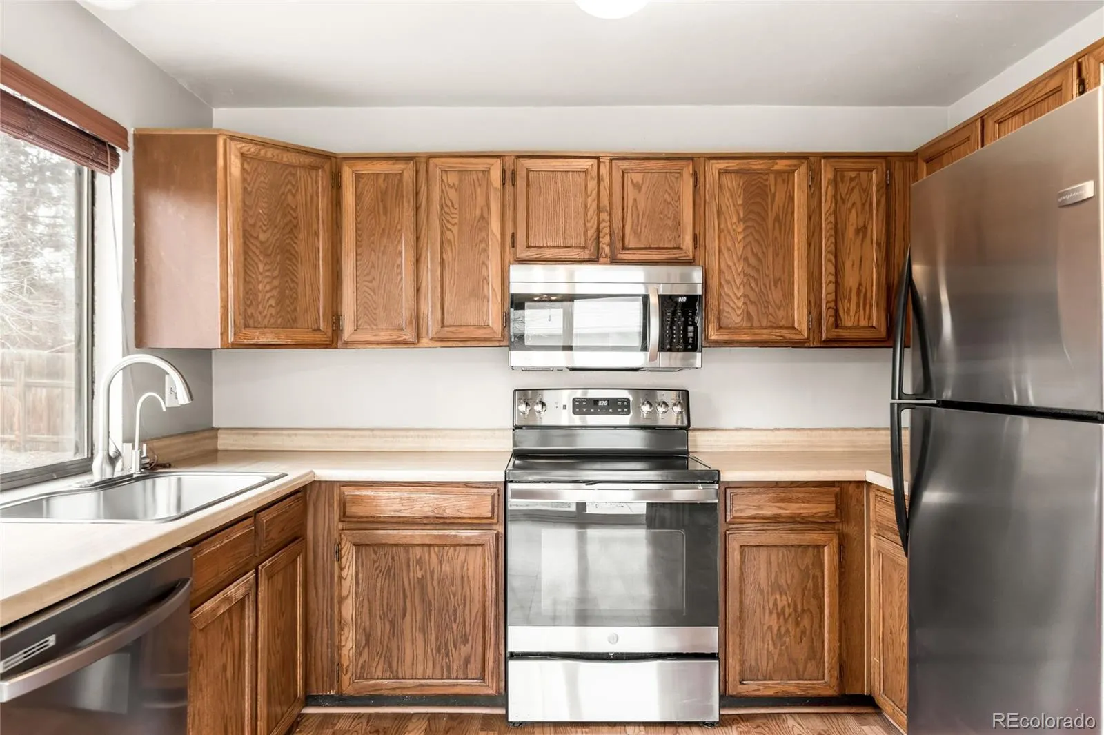 Set on a generous sized lot surrounded by lush and mature manicured landscaping, this Woodglen residence offers a rare opportunity for personalization offering solid construction and a thoughtful layout. Well-cared for by the original owner, this home offers recently upgraded major systems including Rheem furnace/Upgraded Roof/H20 heater/Vinyl Siding/Front and Back Sprinkler System/Landscaping/Concrete Walkways and Driveway/Concrete Patio/Garden Boxes/Stainless Steel Appliances/Fence/and more, providing confidence and value for its next chapter. The main level welcomes with a spacious living room centered around a cozy wood burning fireplace. An adjacent dining area opens to the backyard through newer sliding glass doors, creating an easy indoor-outdoor connection and 2 spacious bedrooms with 1 full bathroom. Downstairs, a finished basement expands the living space with an oversized laundry room, additional bedroom and 3/4 bathroom, and additional flex room with built ins and darling walk in wet bar ideal for a media room, home office or recreation space. Outside, a newer fully fenced and well manicured large backyard and patio provide plenty of room to relax, garden or entertain.