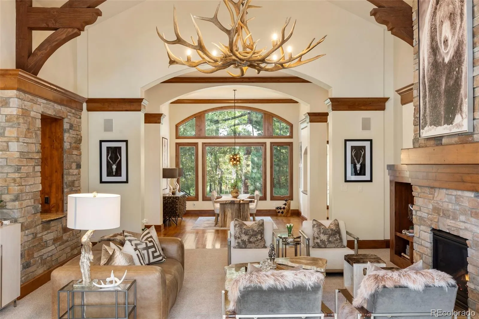 Tucked among towering pines in the coveted Broadmoor Resort Community, this exceptional 6,500-square-foot luxury lodge offers refined elegance, set amid serene mountain surroundings. Soaring ceilings, expansive windows, and warm, nature-inspired finishes create a seamless connection between indoor and outdoor living. Grand iron entry doors welcome you into interiors rich with custom wood trim, artisan stonework, and timeless textures throughout. The breathtaking great room showcases vaulted ceilings with exposed beams, a dramatic floor-to-ceiling stone fireplace, and walls of glass that frame tranquil forest views while flooding the home with natural light. Open dining and living areas flow effortlessly, ideal for both entertaining and everyday comfort. The gourmet kitchen is a showpiece, featuring a professional-grade Wolf gas range, Sub-Zero refrigerator, two dishwashers, and designer finishes. The home offers four spacious bedrooms, three full baths, and one half bath, and multiple gathering spaces, including a private theatre room and an executive office with custom millwork. Handcrafted fireplaces and curated designer details elevate every space. Enjoy covered terraces and private outdoor living areas surrounded by nature, with convenient access to world-class resort amenities, championship golf, hiking trails, and the unparalleled Broadmoor lifestyle—a rare opportunity to own a sophisticated mountain retreat in one of Colorado’s most sought-after communities. Buyer has the option to purchase a Broadmoor Golf Club Membership.