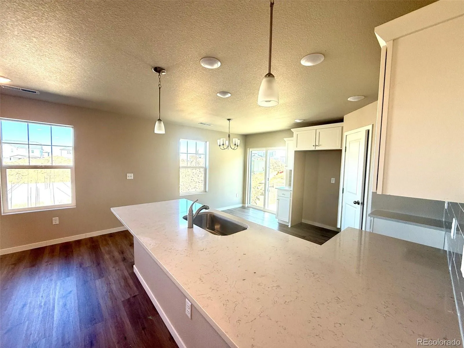 The Hanover floor plan—a charming one-story ranch-style home for sale—features main-floor master living at its finest. The front of this home includes a bedroom, bathroom, and family room which opens to a thoughtful kitchen, nook, and large pantry. A large laundry room and third bedroom are located on the way to the master bedroom, bathroom, and walk-in closet.