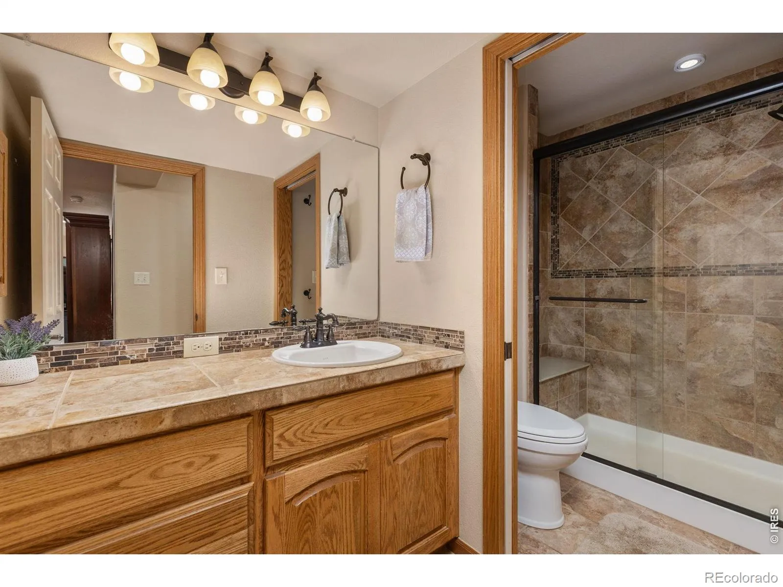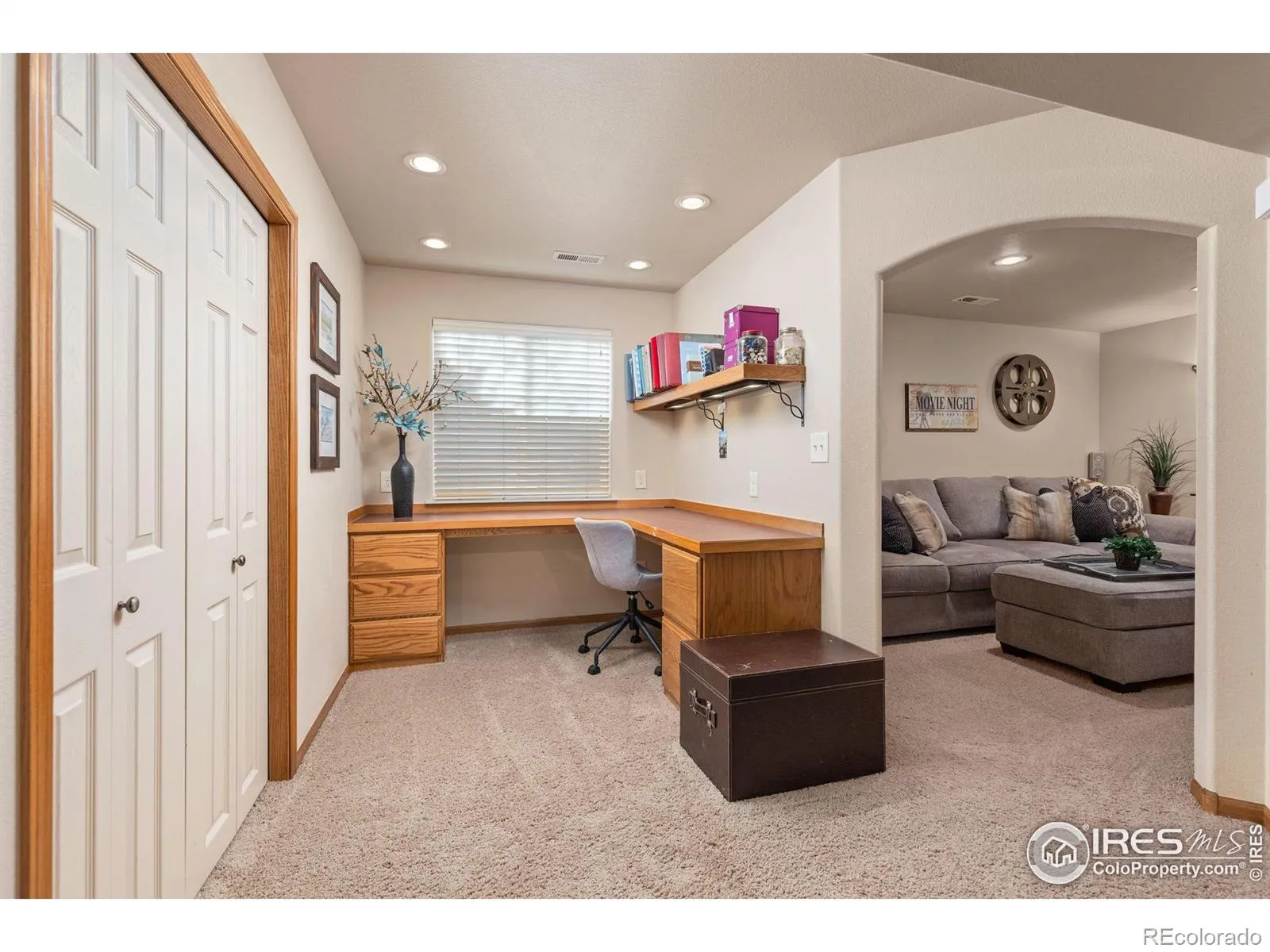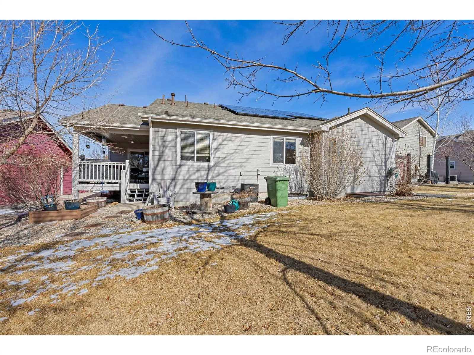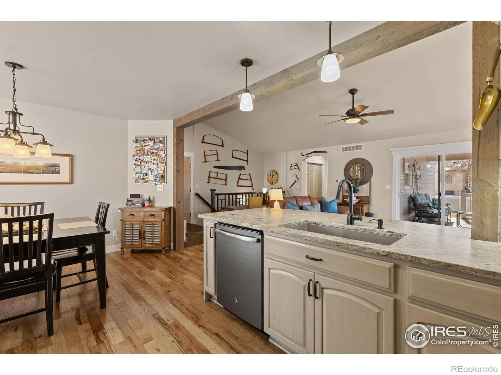 A professionally customized & updated, well-appointed single owner home w/mature, low-maintenance landscaping, a brand new & expanded driveway + a brand new class 4 hail resistant roof under warranty offering peace of mind & reducing the cost of your insurance , The covered front porch entrance invites you into the foyer/drop zone which is also conveniently adjacent to the garage entrance. An open concept w/the living-kitchen-dining areas working together to create excellent use and arrangement potential. Beautiful new Hickory wood flooring, vaulted cathedral ceiling, rustic wood beams & that fireplace w/a new hearth, mantle & stone facing all add character & make this place feel so warm and welcoming. Adjacent is the backyard covered Trex deck living space w/it’s automatic sunshade, ceiling fans & access into the yard & garden areas. The kitchen has black stainless appliances, beautiful Tharpe painted raised panel cabinetry w/crown molding, slide out shelving, a vertical baking sheet organizer & undermounted lighting over unique leathered granite countertops w/a full subway tile backsplash & an undermounted single basin sink w/a convenient tilt out accessory tray & all new lighting. The large primary bedroom showcases vaulted ceilings, a walk-in closet, lots of natural light + a luxury ensuite w/a double vanity, jetted tub, walk-in shower w/a bench, a private water closet & linen closet w/1 of 2 laundry rooms right next door. The oversized garage is loaded with built-in shelving, workbenches, storage & parking spaces. The finished basement makes this home perfect for big families, multigenerational living, entertainers & guests. It has a second living/family room & a private media/theater room + 3 more bedrooms allowing lodging or further space for offices, home gym, yoga studio, workshop, crafting & wrapping rooms, etc. A full bath, a 2nd laundry room & plenty of storage closets afford great flexibility. Could it get any better than this?
