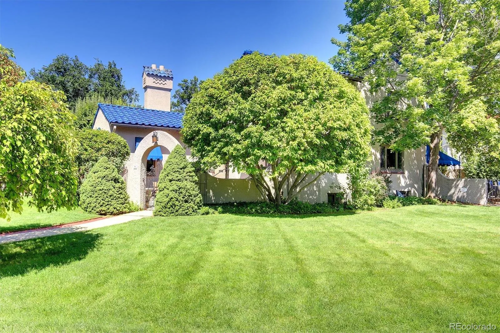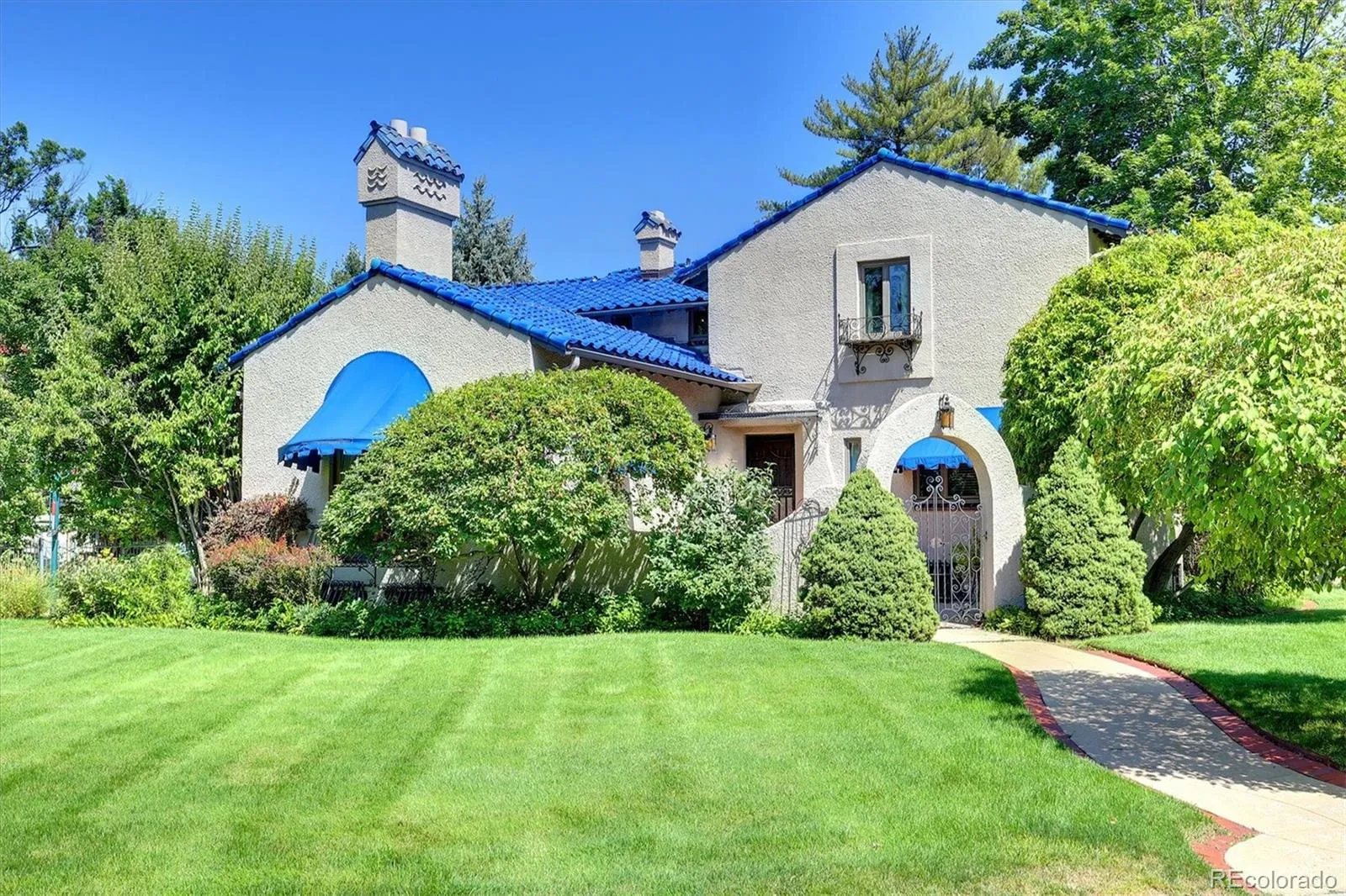 This rare gem in the heart of Old Crestmoor is an incredible opportunity for the discerning buyer. Located on coveted Ivy Lane just off tree-lined Sixth Avenue Parkway, a perfect location, rich in style, beauty, and history. The Spanish Mediterranean architecture with its blue tile roof makes this one of Crestmoor’s most iconic homes, boasting five bedrooms & five baths in 4,722 square feet of refined living on a sprawling 12,300 sq. foot, sunny, southwestern lot. The home hosts a spectacular grand living room with vaulted ceilings supported by large hand-carved beams, featuring a charming Juliet balcony, huge picture window that lights up interior archways, wrought iron gates, railings, gorgeous wood floors, and vintage tile finishes. The warm, kitchen is the heart of the home for gourmet cooking and socializing, with top-of-the-line appliances, a large island, and serpentine countertops. The kitchen opens beautifully into the bright family room, and together they flow through French doors out to a perfect setting for outdoor entertaining with an extensive flagstone patio and cozy backyard with stucco and tile landscaping, featuring a tranquil fountain and gas fire pit seating area. Upstairs are four large bedrooms, two with en suite baths. The other two share a spacious full hall bath. The primary bedroom has windows on three sides, two closets, and a beautiful private balcony. There is an expansive, finished basement with a fifth bedroom and en suite bath and two large living and play areas. A rare three-car garage for a historic home adds to the appeal. The sought after location in Old Crestmoor offers a priority position for expedited membership in the exclusive Crestmoor Swim and Tennis Club. Close proximity to parks, Pete’s Fruit & vegetables, restaurants and both public and private schools. Easy access to routes for airport and mountains. A beautifully maintained, one of a kind home in a premier location offers a truly unique chance to make her your own!