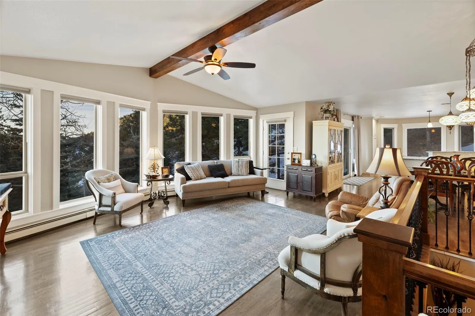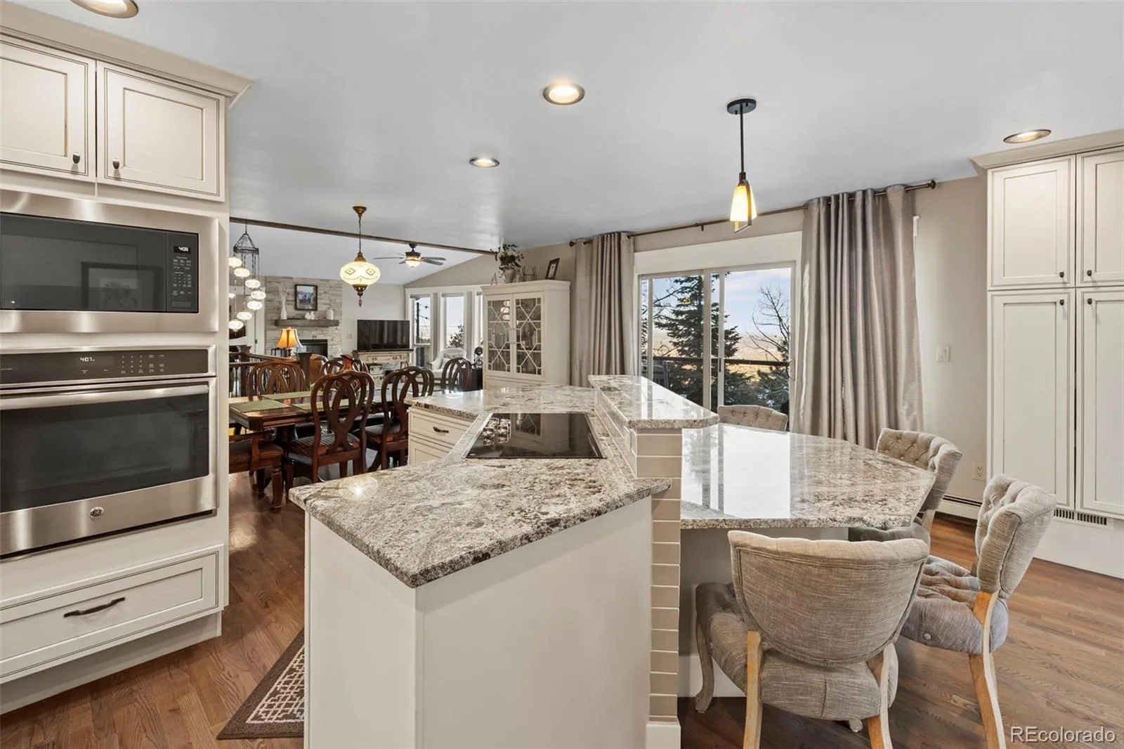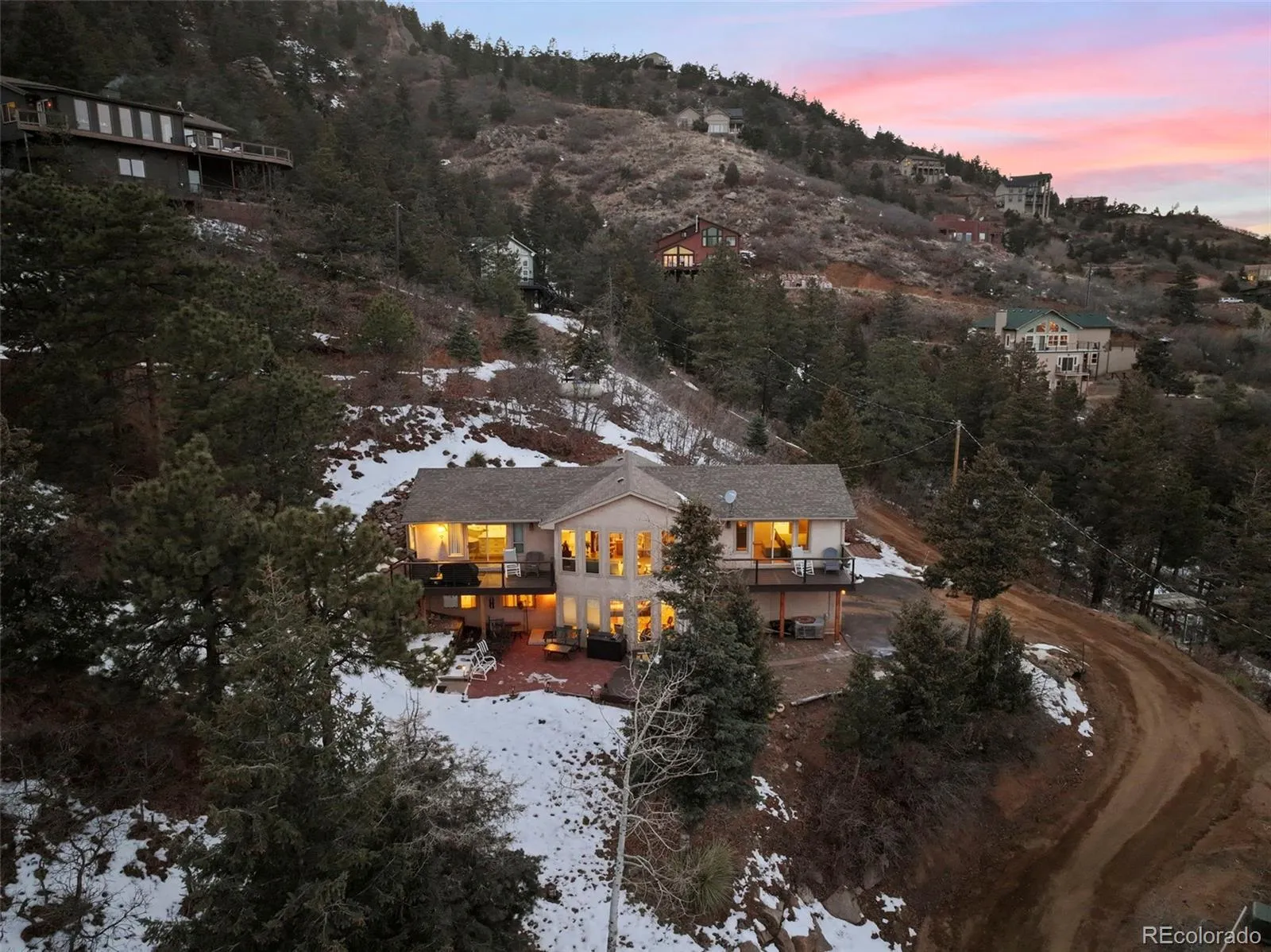 The perfect balance of peaceful mountain living and everyday convenience in the exclusive, private gated community of Crystal Park. Ideally located just minutes from the charm of downtown Manitou Springs and the amenities of Colorado Springs, this beautifully maintained home offers a rare opportunity to enjoy a serene retreat without sacrificing accessibility. Tucked into a quiet, desirable setting in lower Crystal Park, this property is surrounded by natural beauty and provides an atmosphere of privacy, tranquility, and breathtaking scenery. From the moment you arrive, you’ll appreciate the calm mountain environment, where fresh air, towering pines, and stunning vistas create an unmatched sense of escape. Step outside onto one of two expansive composite decks or the inviting patio and take in sweeping views of the surrounding mountainside, along with sparkling city lights in the evening. The heart of the home has been beautifully updated with a completely remodeled kitchen and dining room, enhancing both style and functionality. These refreshed spaces are perfect for gathering, cooking, and entertaining while enjoying the open flow of the main living area. Extensive windows fill the home with natural light, while the main level offers an inviting great room centered around a cozy gas fireplace, providing a warm and welcoming space to unwind. Also located on the main floor, the primary suite serves as a peaceful retreat with a luxurious, adjoining five-piece bath that has been thoughtfully updated with in-floor heating for a spa-inspired experience and year-round comfort. Lower level expands the home’s versatility, featuring a spacious family room with a private entrance and access to the patio—perfect for guests, additional living space, or multi-generational flexibility. Two additional bedrooms and a full bathroom are also located on this level, providing plenty of room for visitors, family, or a home office.