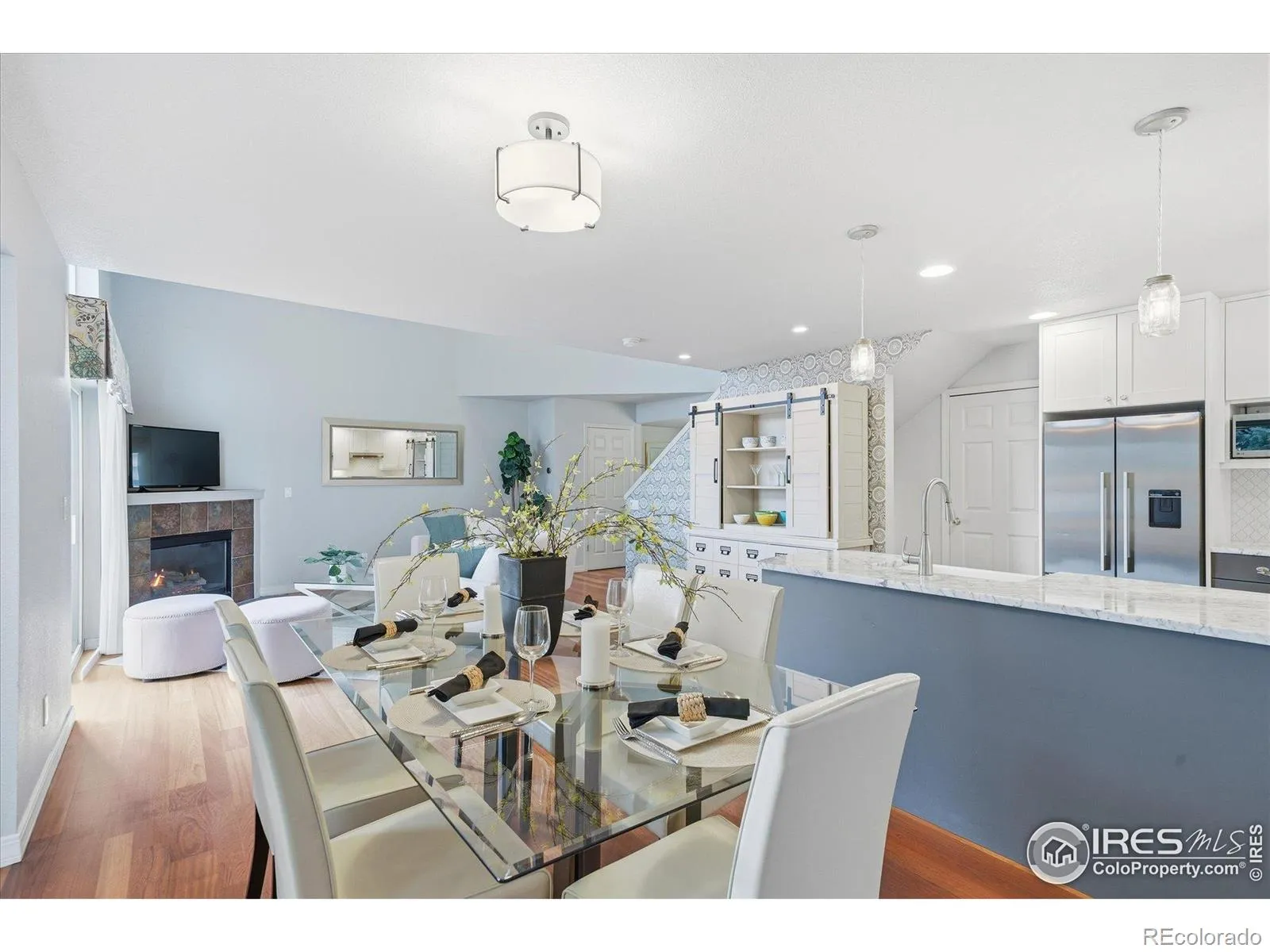 Stunning townhome style condo just blocks from Old Town Louisville! Exceptional upgrades include slab granite countertops, stainless appliances, double ovens, gas range, country sink, cabinetry, wall treatments, lighting and gorgeous cherry floors. This home offers an open floorplan with over 1800 total sf, 4 bedrooms, 3 baths, vaulted ceilings, is loaded with wonderful natural light AND it also backs to the HOA greenbelt & walking / bike path which extends throughout Louisville and beyond! With a 2-car garage, fully finished basement, upstairs laundry, fireplace and unbeatable location, you’re going to love this home!