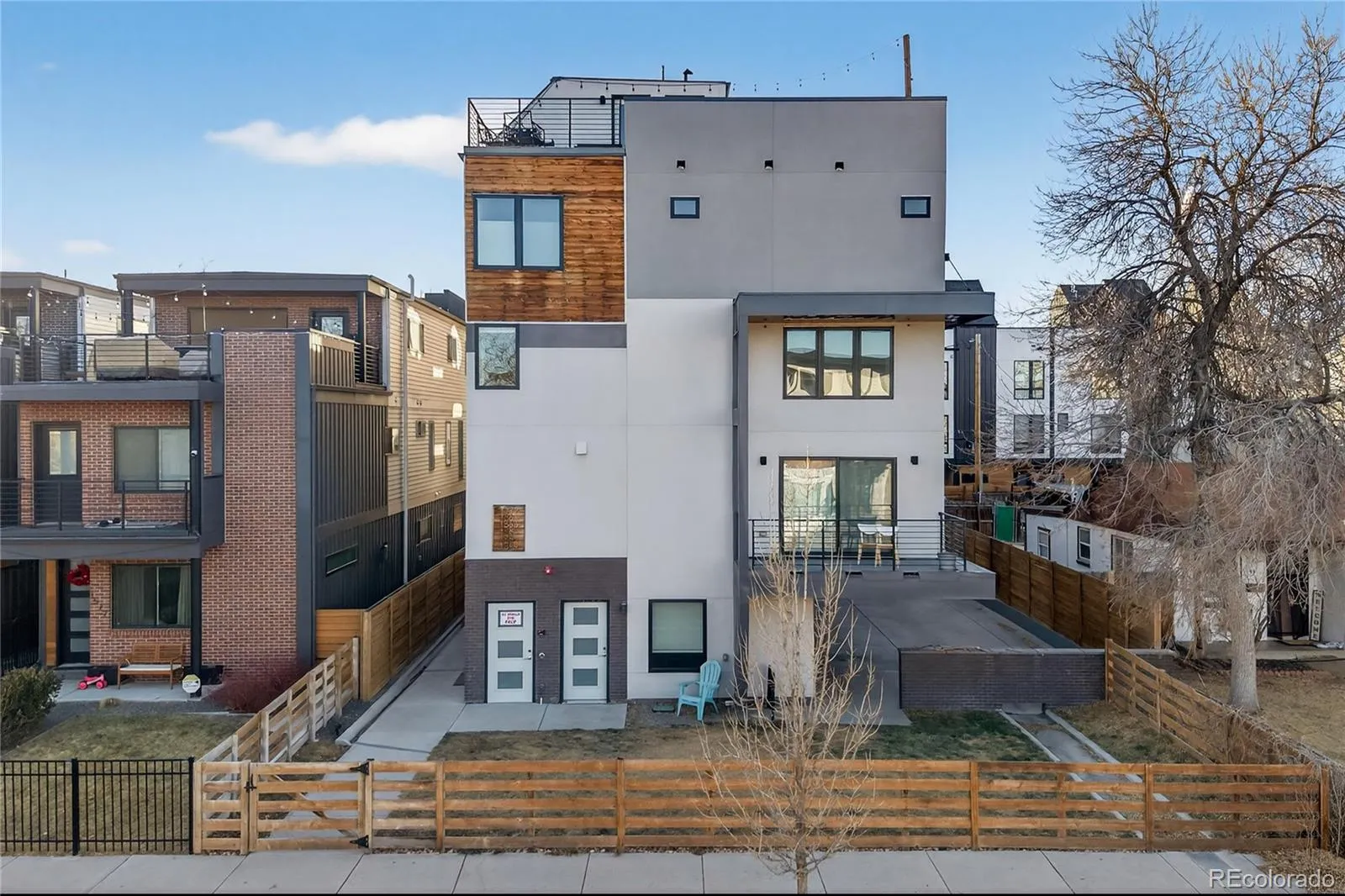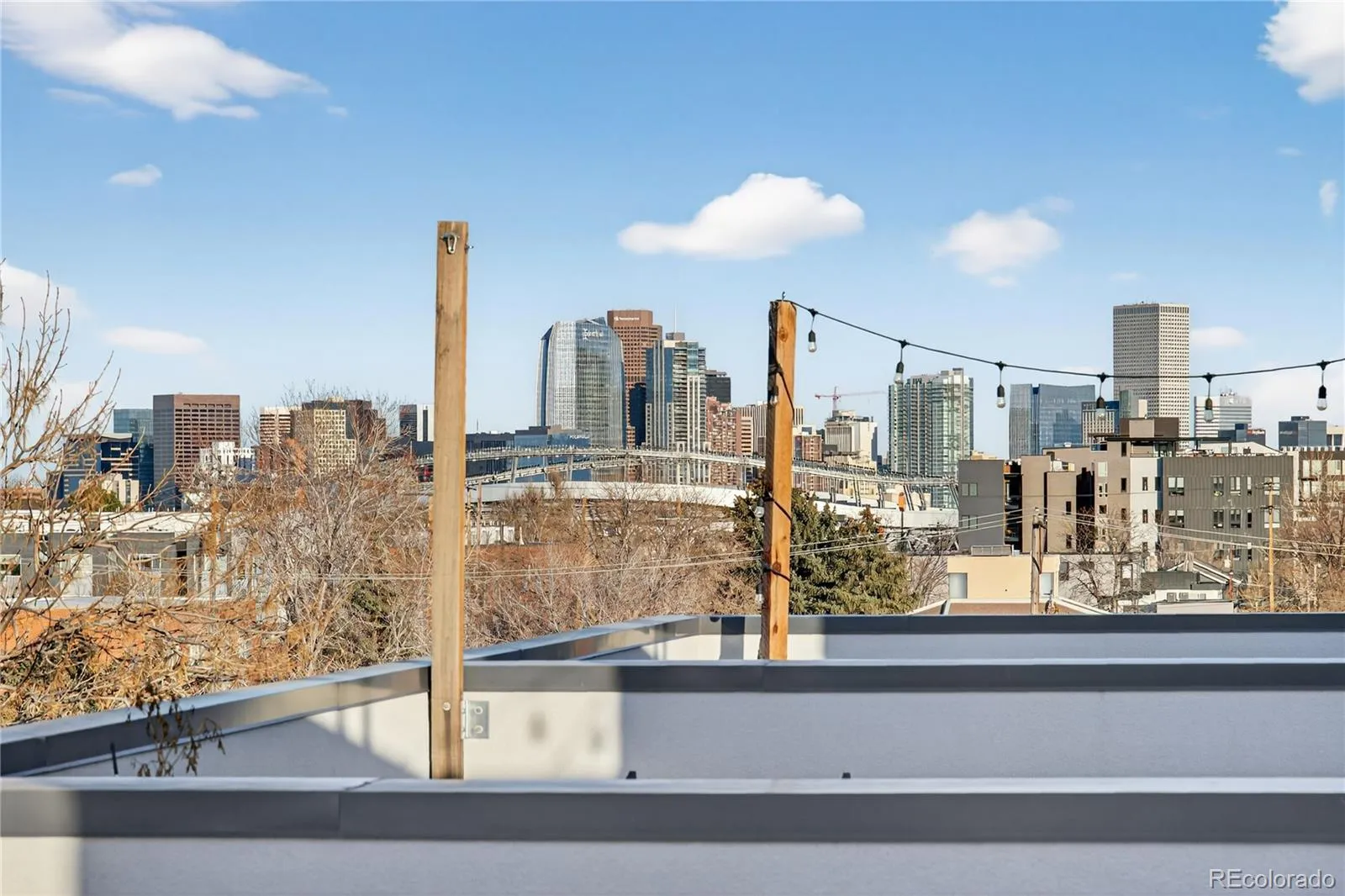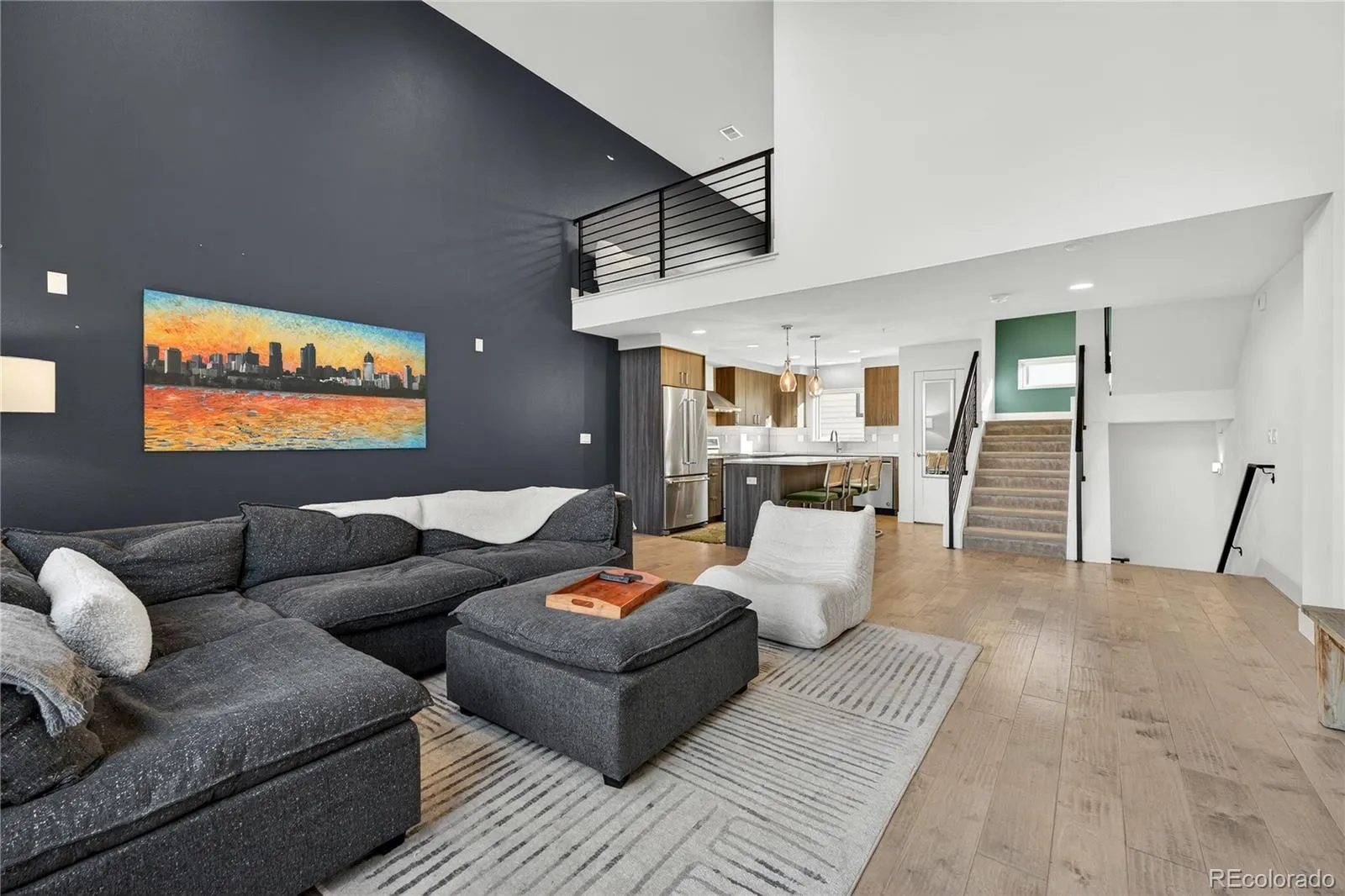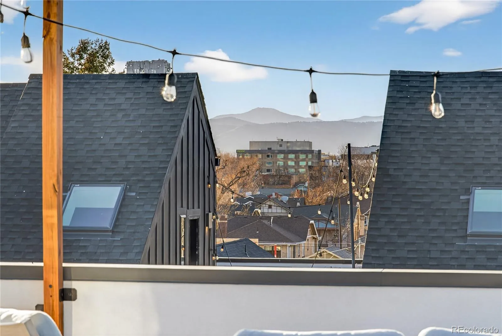 City living meets elevated style in this stunning multi-story cityscape townhome, perfectly positioned just three blocks from Sloan’s Lake and minutes from downtown Denver, the Highlands, and I-25. Set within a vibrant, easygoing neighborhood, this move-in-ready home delivers both an unbeatable location and show-stopping views. The crown jewel is the expansive rooftop deck, where panoramic views of downtown Denver, Sloan’s Lake, and the mountains create an unforgettable backdrop. Strung with charming café lights, it’s the perfect spot to unwind in the evening, entertain friends, or soak in twinkling city lights and nighttime stars. Inside, the home impresses with dramatic 20-foot vaulted ceilings in the living room, creating a bright and airy atmosphere enhanced by a lofted office or flex space overlooking the room below. The open floor plan easily accommodates a large sectional and features a cozy fireplace for relaxed evenings at home. The modern chef’s kitchen is sleek and functional, offering high-end KitchenAid appliances, a gas range, and a generous center eat-in island ideal for gatherings. A third-level bonus room with a convenient laundry closet with included washer and dryer provides flexible space for a home office, TV room, or creative studio. Upstairs, two spacious bedrooms each feature private en-suite bathrooms, with the primary suite offering two closets, including a walk-in. Dual-zone climate control ensures comfort throughout, with separate thermostats for the living areas and bedroom level. Built less than 10 years ago, the home benefits from newer systems and appliances, including a brand-new microwave and recently serviced HVAC. A shared fenced front yard adds a welcoming outdoor touch, while the surrounding area offers trendy restaurants, coffee shops, Bronco’s Stadium, and easy access to Sloan’s Lake’s scenic trail. This is urban Colorado living at its best—stylish, low-maintenance, and perfectly located.