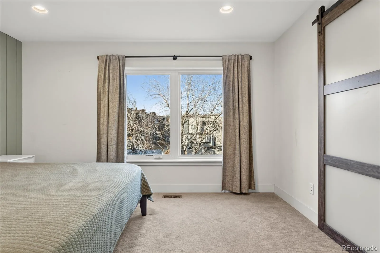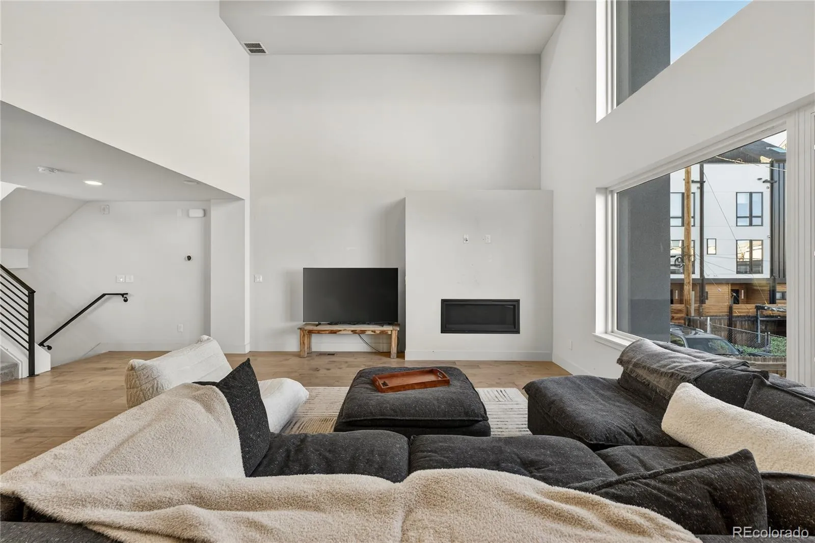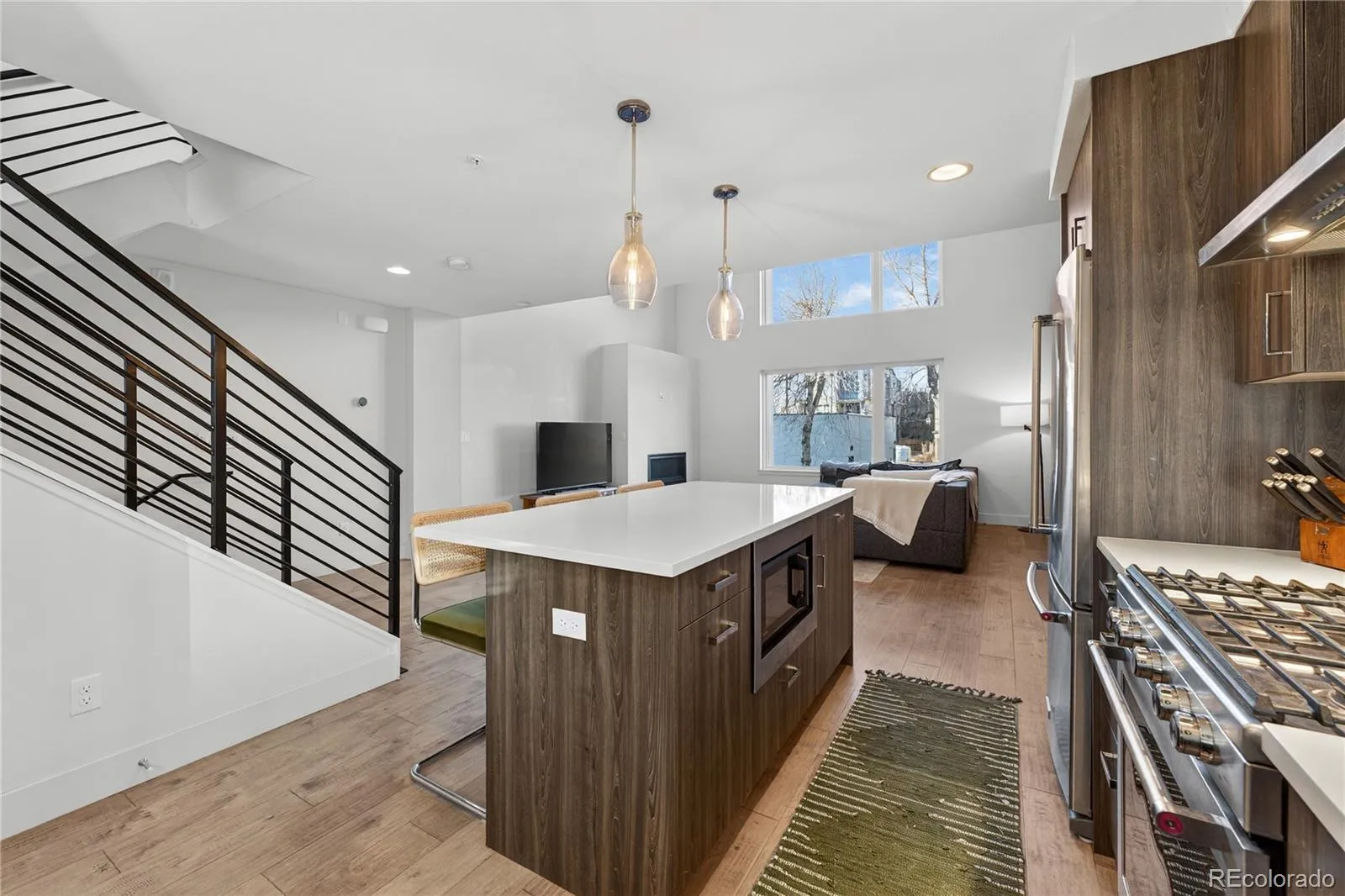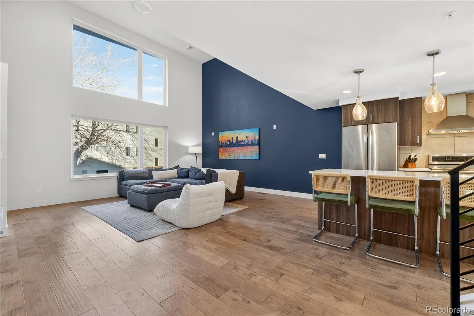 City living meets elevated style in this stunning multi-story cityscape townhome, perfectly positioned just three blocks from Sloan’s Lake and minutes from downtown Denver, the Highlands, and I-25. Set within a vibrant, easygoing neighborhood, this move-in-ready home delivers both an unbeatable location and show-stopping views. The crown jewel is the expansive rooftop deck, where panoramic views of downtown Denver, Sloan’s Lake, and the mountains create an unforgettable backdrop. Strung with charming café lights, it’s the perfect spot to unwind in the evening, entertain friends, or soak in twinkling city lights and nighttime stars. Inside, the home impresses with dramatic 20-foot vaulted ceilings in the living room, creating a bright and airy atmosphere enhanced by a lofted office or flex space overlooking the room below. The open floor plan easily accommodates a large sectional and features a cozy fireplace for relaxed evenings at home. The modern chef’s kitchen is sleek and functional, offering high-end KitchenAid appliances, a gas range, and a generous center eat-in island ideal for gatherings. A third-level bonus room with a convenient laundry closet with included washer and dryer provides flexible space for a home office, TV room, or creative studio. Upstairs, two spacious bedrooms each feature private en-suite bathrooms, with the primary suite offering two closets, including a walk-in. Dual-zone climate control ensures comfort throughout, with separate thermostats for the living areas and bedroom level. Built less than 10 years ago, the home benefits from newer systems and appliances, including a brand-new microwave and recently serviced HVAC. A shared fenced front yard adds a welcoming outdoor touch, while the surrounding area offers trendy restaurants, coffee shops, Bronco’s Stadium, and easy access to Sloan’s Lake’s scenic trail. This is urban Colorado living at its best—stylish, low-maintenance, and perfectly located.