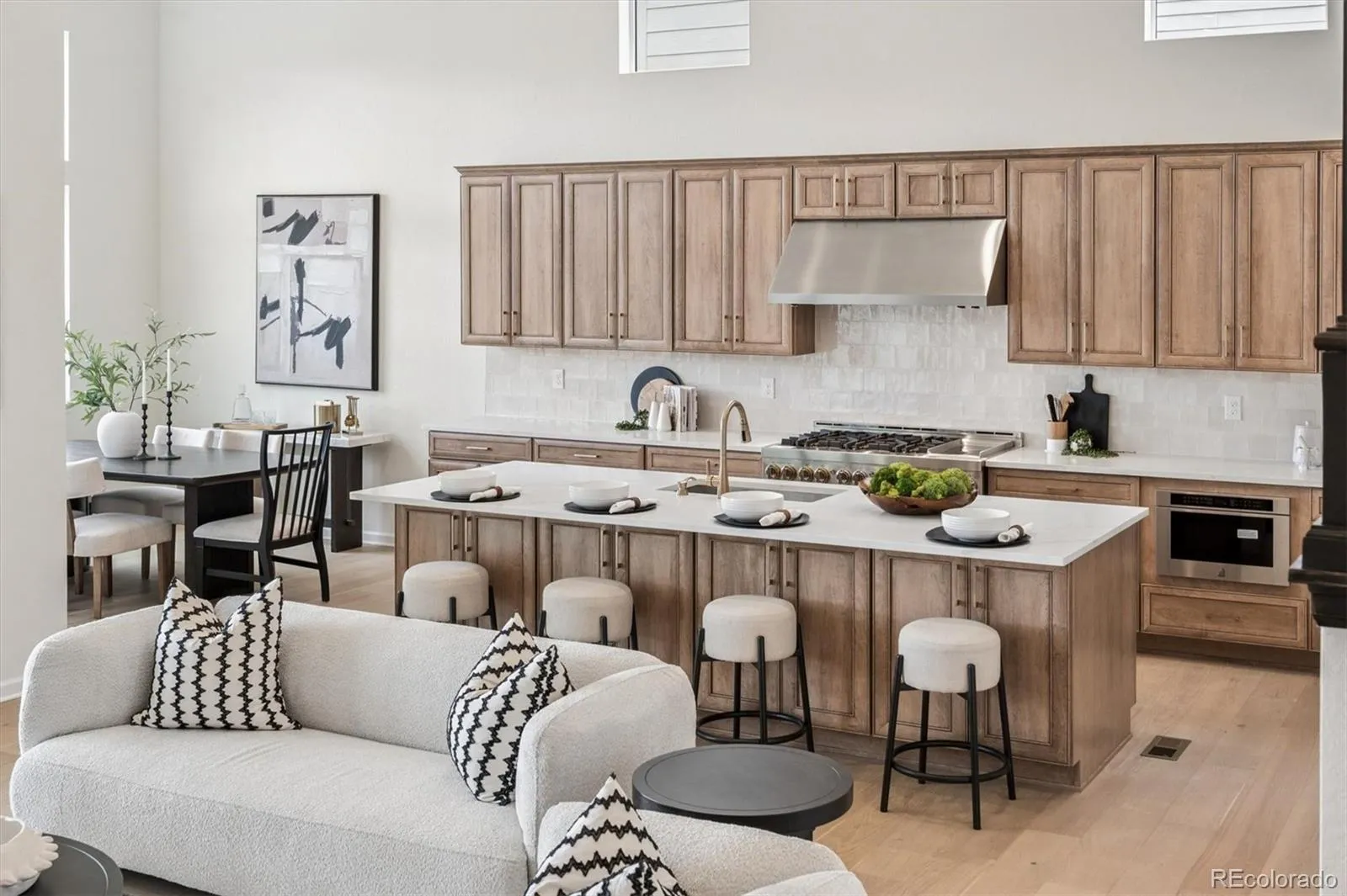 This brand-new Toll Brothers home is move-in ready and delivers standout style as one of the only available Farmhouse exteriors – now discontinued and in high demand. Located on a premium golf course lot with beautiful mountain and fairway views, the setting is exceptional. A dramatic two-story foyer leads into a spacious great room featuring a 14-foot floor-to-ceiling stone fireplace and a multi slide stacked door that opens to the covered patio and view of the golf course. The indoor/outdoor connectivity is ideal for entertaining. The chef’s kitchen includes JennAir appliances, quartz countertops, and upgraded cabinetry. The first-floor primary suite is a serene retreat, highlighted by a 14-foot ceiling, a sizable walk-in closet, and a spa-inspired bath with a freestanding tub and an upgraded glass-enclosed shower. Additional highlights include engineered hardwood flooring on the main level, upgraded 8-foot interior doors throughout, exterior black windows, a versatile front flex room, three generously sized upstairs bedrooms with walk-in closets, a bonus loft space, two full baths, and a 3-stall garage. With its rare farmhouse style, premium upgrades, and coveted golf course location, this residence stands out as a unique opportunity in a new neighborhood.