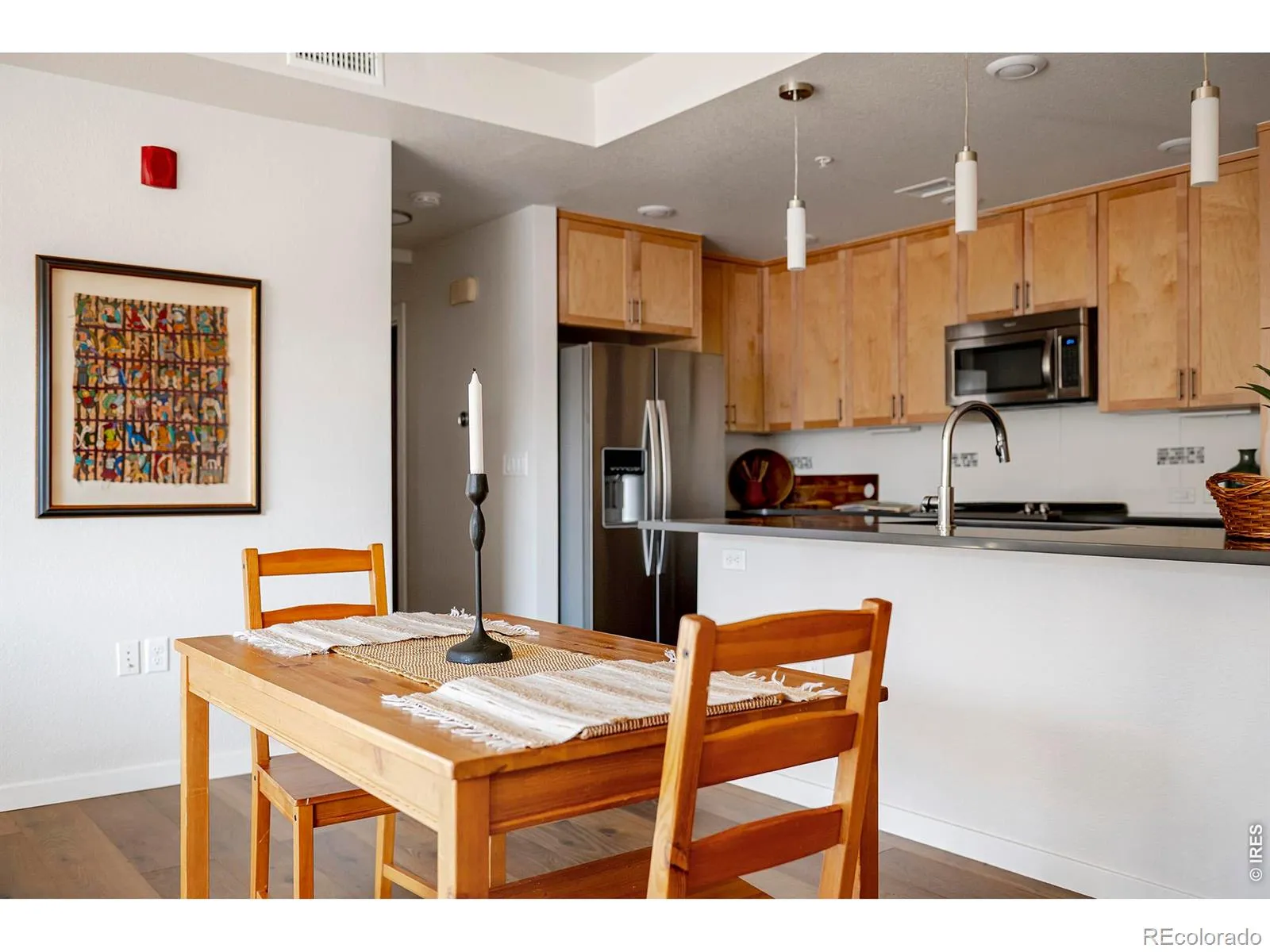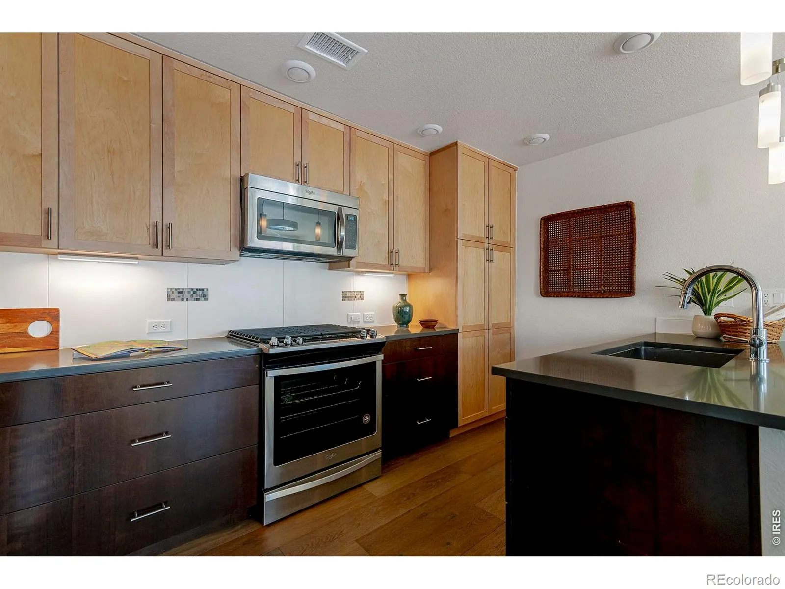 HUGE price improvement! Enjoy the perfect blend of quality, low-maintenance living, and stylish design with no stairs, in-unit laundry, and a private garage with this 2BR x 2BA luxury condo! A light-filled, main level, open floor plan and a spacious kitchen thoughtfully designed with plenty of storage. Large primary bedroom and bath en suite with walk-in shower and double sinks. Flexibility for an office, guest or workout space in the second bedroom. Premium features include a secure building, energy efficient windows, stackable washer/dryer, soft-close cabinetry, sound barriers between floors and vinyl plank flooring. Friendly community and covered 8 x 10 patio for morning coffee or watching the sunset in a quiet area adjacent to neighborhood walking paths. Bonus: single-car garage with storage loft right outside the front door. If you’re looking for comfort and simplicity, this home should not be missed.