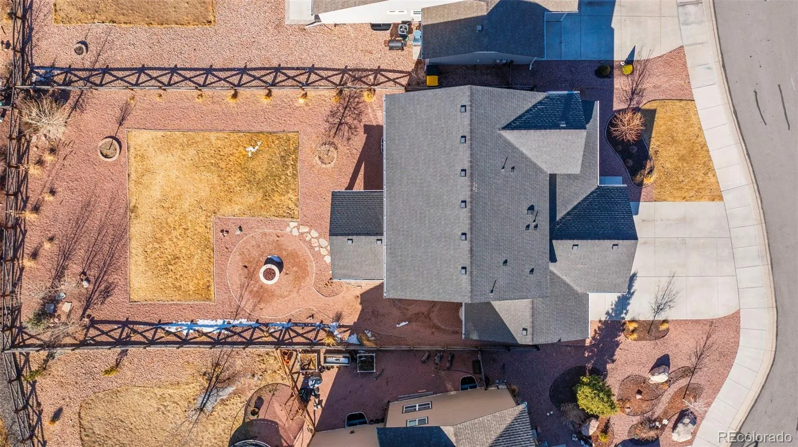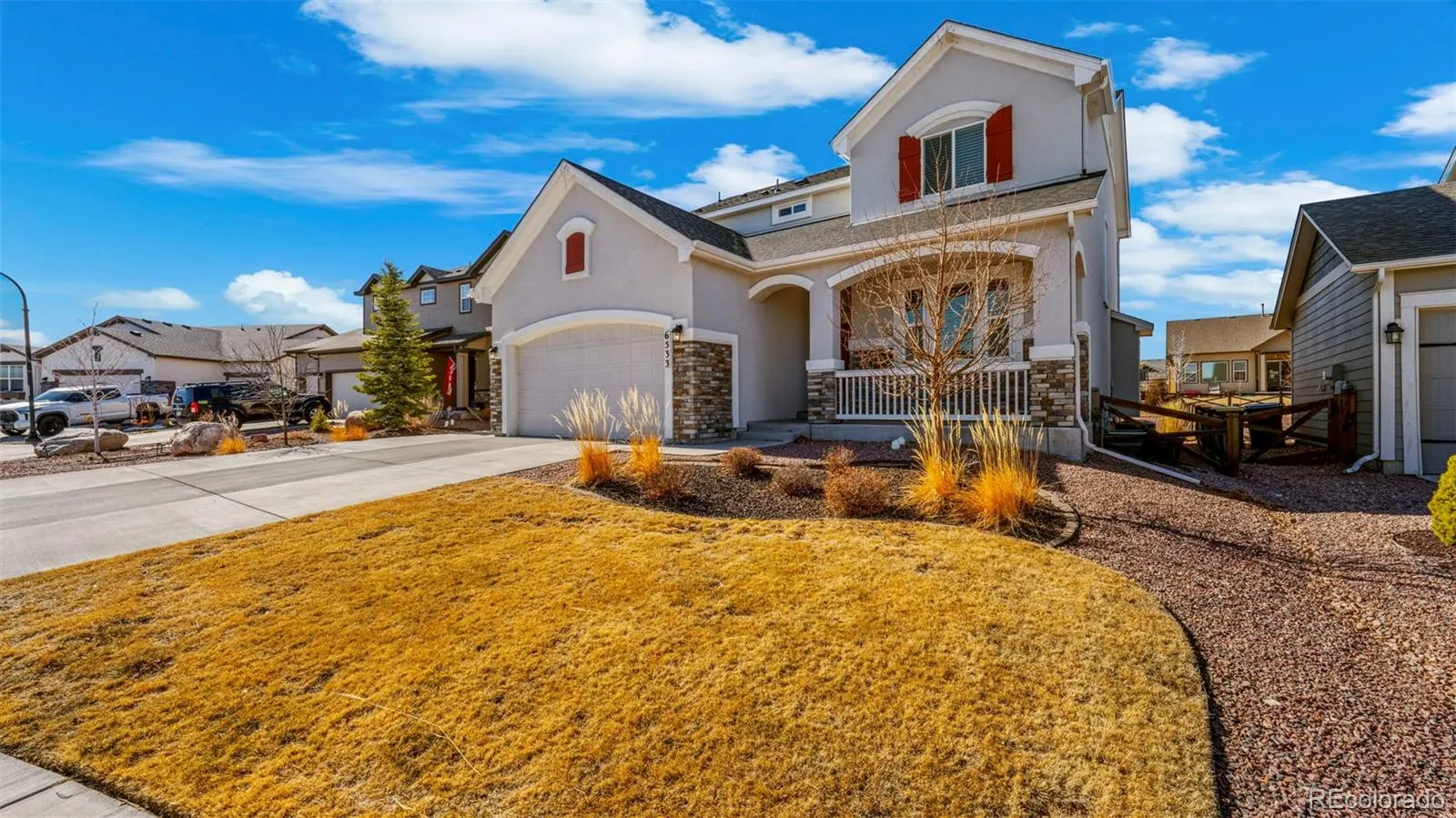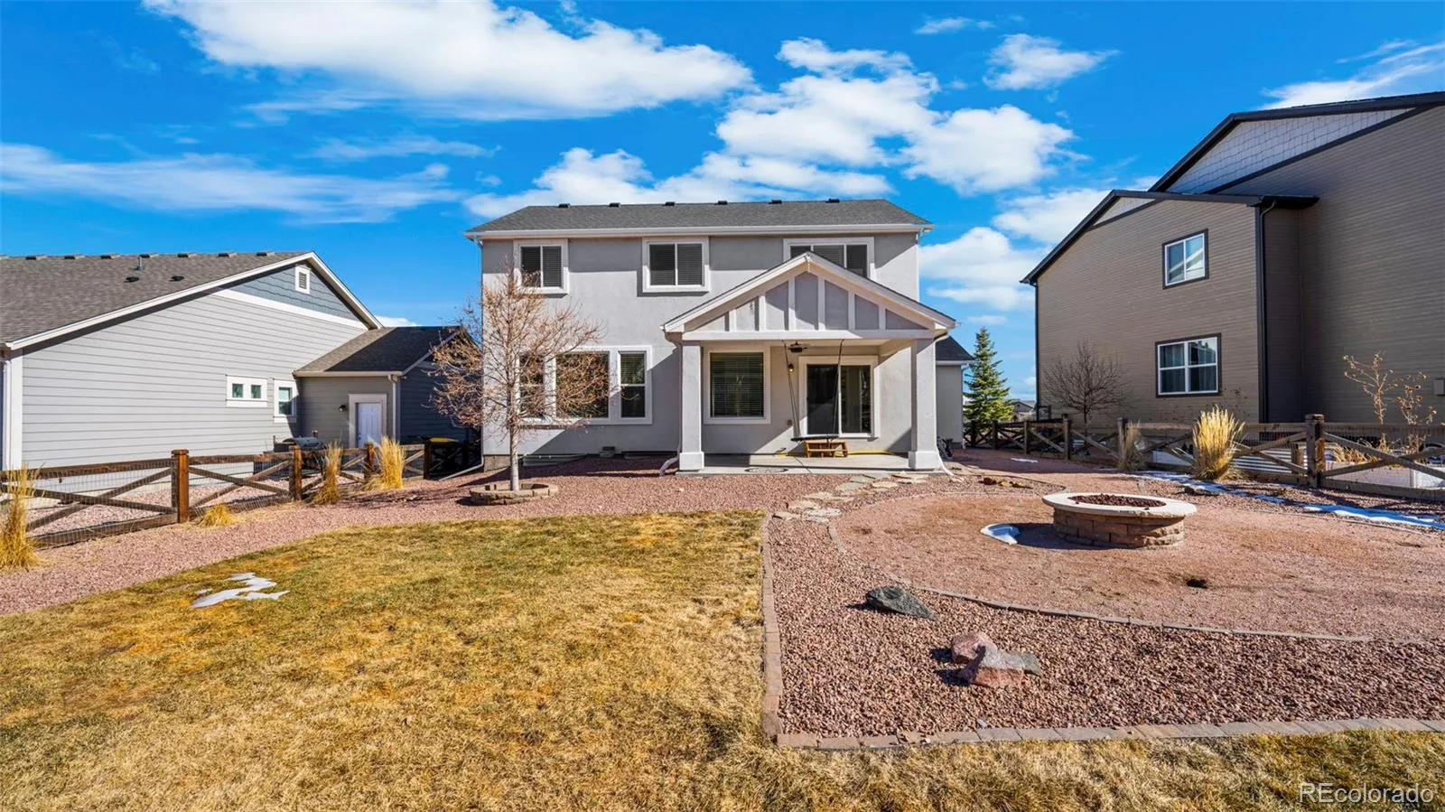 Welcome to this beautifully designed and well-maintained home in the heart of Banning Lewis Ranch, offering the perfect blend of modern comfort, functional space, and resort-style community living. Situated on a large 0.22-acre lot, this home features a spacious and landscaped backyard with a fire pit and a covered patio with ceiling fan—perfect for relaxing or entertaining year-round. Inside, the open-concept main level is warm and inviting with a stunning gas fireplace surrounded by stacked stone in the living room. The kitchen is a true highlight with quartz countertops, gas cooking, a large pantry, and plenty of space for gathering. Just off the garage entry, you’ll love the convenient drop zone/mudroom area with quartz countertop, along with a main floor half bath and a dedicated office, ideal for working from home. Upstairs offers a versatile loft space, convenient upper-level laundry, and three spacious bedrooms. The primary suite is a private retreat featuring a coffered ceiling, walk-in closet, and a luxurious 3/4 bath with double vanity, with matching quartz finishes throughout all bathrooms. The fully finished basement expands your living space with two additional bedrooms (including one with a walk-in closet), a full bath with quartz countertops, under-stair storage, and a large family room with 9+ foot ceilings, creating a bright and open feel. Additional features include central air conditioning, a three-car garage with bump-out, and a convenient garage access door to the backyard. Located near trails, parks, schools, and the incredible Banning Lewis amenities—including pools, fitness centers, tennis courts, and community spaces—this home offers an exceptional lifestyle in one of Colorado Springs’ most desirable neighborhoods.