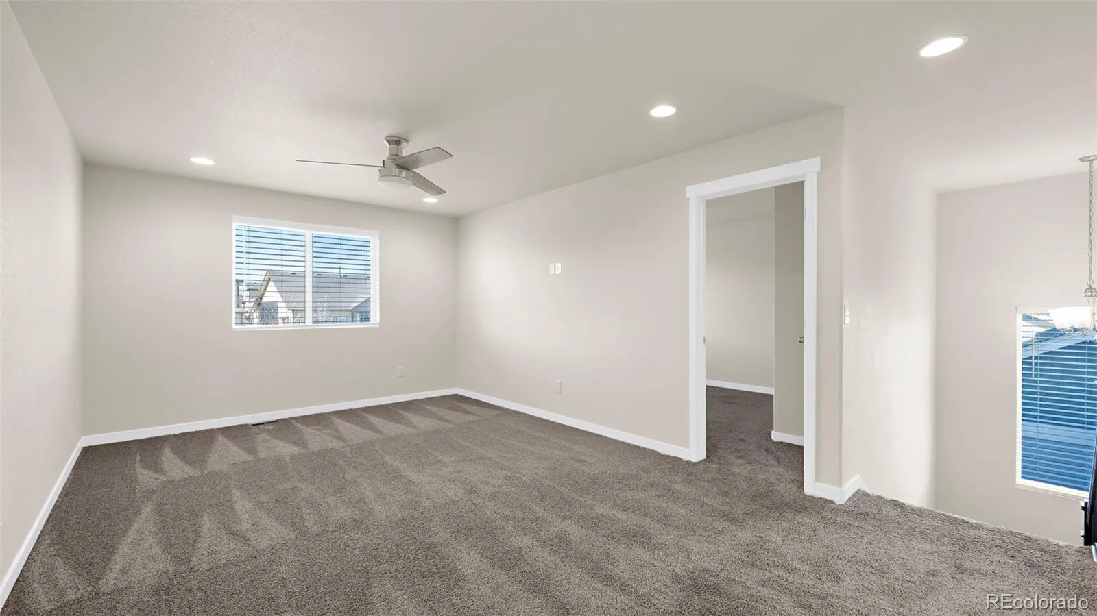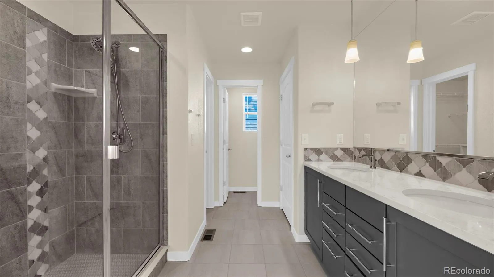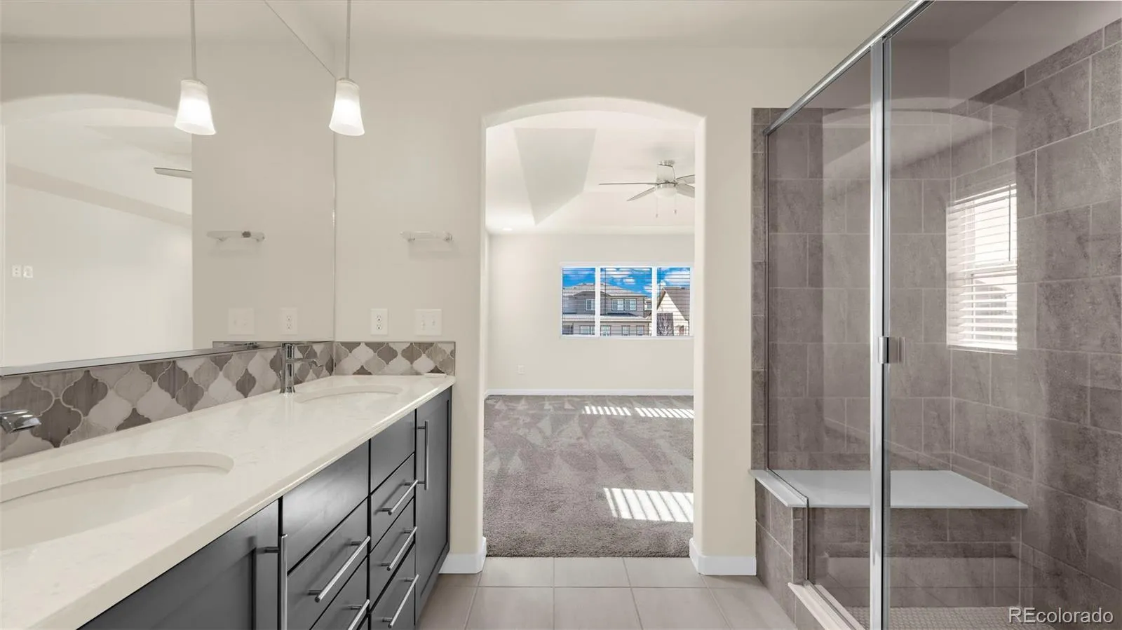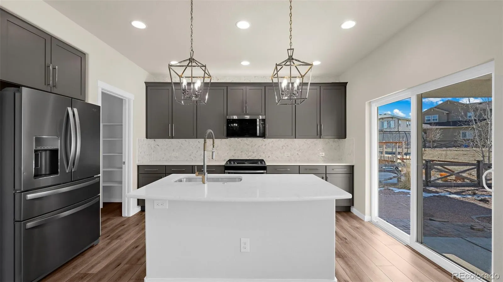 Welcome to this beautifully designed and well-maintained home in the heart of Banning Lewis Ranch, offering the perfect blend of modern comfort, functional space, and resort-style community living. Situated on a large 0.22-acre lot, this home features a spacious and landscaped backyard with a fire pit and a covered patio with ceiling fan—perfect for relaxing or entertaining year-round. Inside, the open-concept main level is warm and inviting with a stunning gas fireplace surrounded by stacked stone in the living room. The kitchen is a true highlight with quartz countertops, gas cooking, a large pantry, and plenty of space for gathering. Just off the garage entry, you’ll love the convenient drop zone/mudroom area with quartz countertop, along with a main floor half bath and a dedicated office, ideal for working from home. Upstairs offers a versatile loft space, convenient upper-level laundry, and three spacious bedrooms. The primary suite is a private retreat featuring a coffered ceiling, walk-in closet, and a luxurious 3/4 bath with double vanity, with matching quartz finishes throughout all bathrooms. The fully finished basement expands your living space with two additional bedrooms (including one with a walk-in closet), a full bath with quartz countertops, under-stair storage, and a large family room with 9+ foot ceilings, creating a bright and open feel. Additional features include central air conditioning, a three-car garage with bump-out, and a convenient garage access door to the backyard. Located near trails, parks, schools, and the incredible Banning Lewis amenities—including pools, fitness centers, tennis courts, and community spaces—this home offers an exceptional lifestyle in one of Colorado Springs’ most desirable neighborhoods.