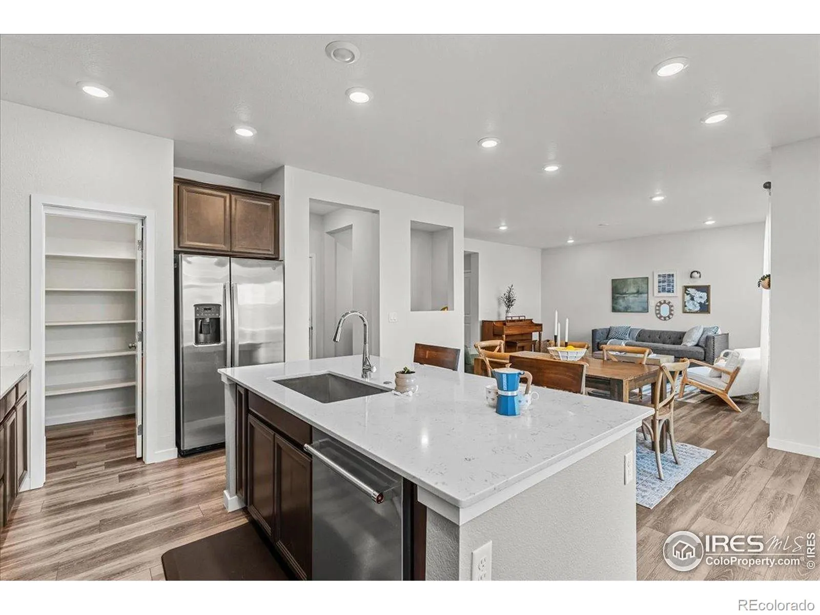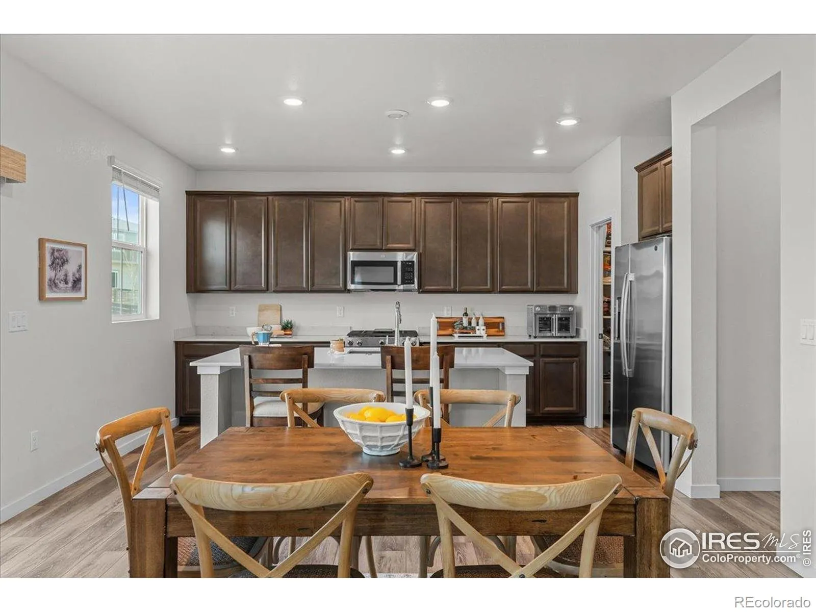 Step into this bright and inviting professional interior painted SMART home. This 3-bedroom, 3-bath retreat offers 2,788 total SF with 1,894 SF finished. Full of upgrades this home was built in 2022 and offers an over-sized natural gas line permitted for a gas range (duel fuel range) in the kitchen and a fireplace/fire pit/tankless hot water heater options for the future. The builder electric range has been upgraded to a Duel Fuel Range with a 5 burner gas cook-top and a large electric/confection/steam oven. Enjoy the low decibel dishwasher for quiet time in the open concept. The upstairs landing and bedroom 3 offer the wood LTV flooring for easy cleaning. The garage floor has epoxy for a clean garage. Enjoy the luxury of oversized closets throughout the house. A large laundry room is located on the second floor for easy access. The yard has been professionally landscaped offering multiple lush plants. There is a backyard patio with a wrap around sidewalk from the back to the front. With the multiple type of plants, garden area, and the patio, the backyard brings an oasis of peaceful serenity. Centrally located to I-25, HWY 34, and many Northern Colorado communities. If you are looking for a peaceful neighborhood with direct access to many accommodations and walking/biking trails this is your property. Kinston at The HUB (Clubhouse) offers simply interior and exterior comfortable places to sit, gather with friends, share a conversation and lose track of time. It truly embodies the building of community.