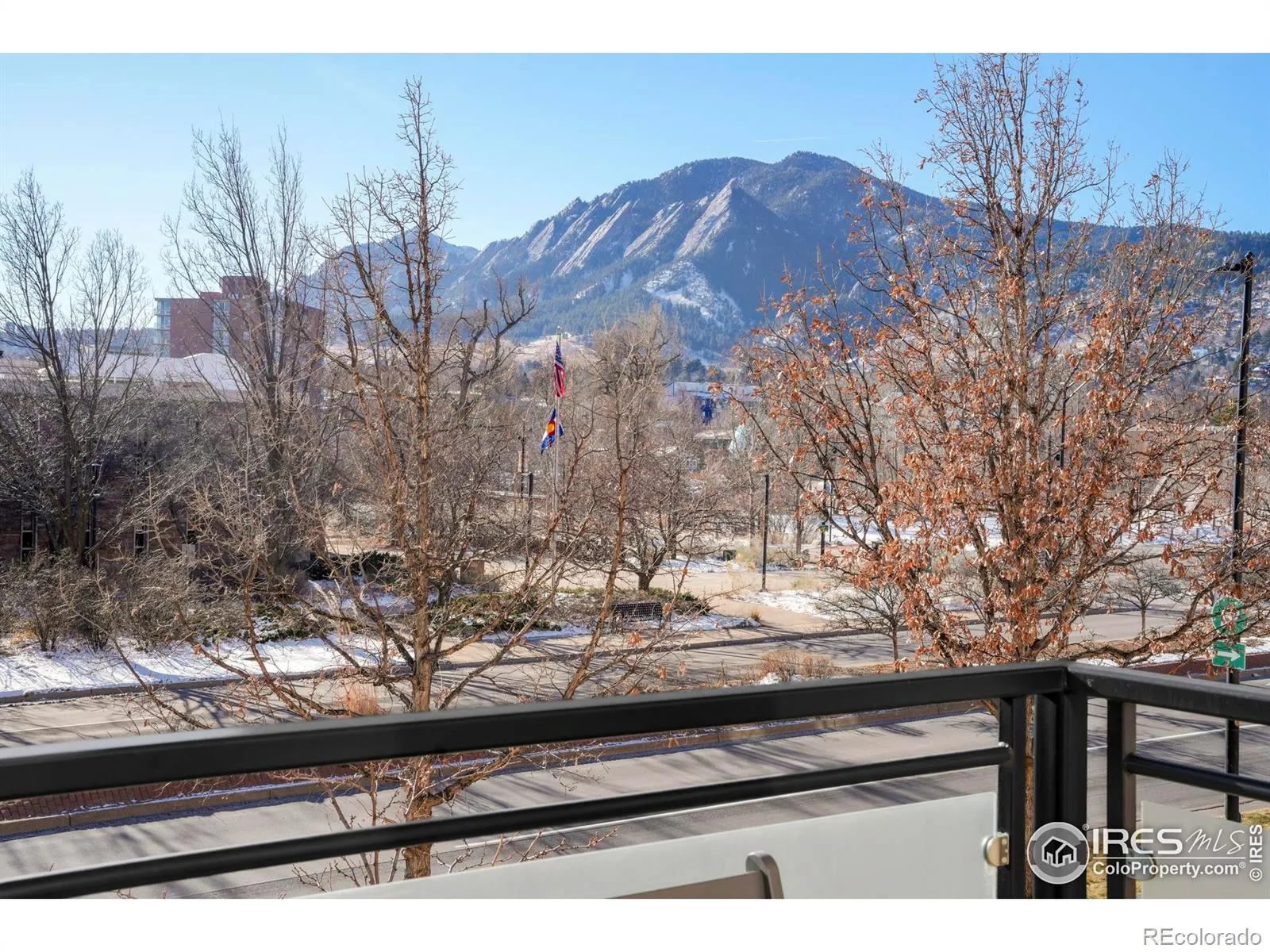Bathed in southern light with iconic Flatiron views, this downtown Boulder residence delivers refined living just moments from Pearl Street. Set within a secure, high-end building, this spacious single-level condo balances a timeless, comfortably modern aesthetic with exquisite craftsmanship throughout. The open-concept living and dining area is anchored by a gas fireplace with a floor-to-ceiling Fieldstone surround and framed by a wall of windows that capture dramatic mountain views. Brazilian cherry floors, 10-foot ceilings, custom built-ins and a dedicated work alcove elevate both form and function. The updated chef’s kitchen features custom wood cabinetry, quartz countertops, an island with a breakfast bar and wine fridge and a premium appliance suite including Sub-Zero, Wolf, and Asko. A private terrace extends the living space outdoors. The primary suite offers a luxurious five-piece bath with a steam shower and a walk-in closet. Additional highlights include remote-controlled window coverings, two designated underground parking spaces, storage, bike parking and a well-run HOA with internet included.