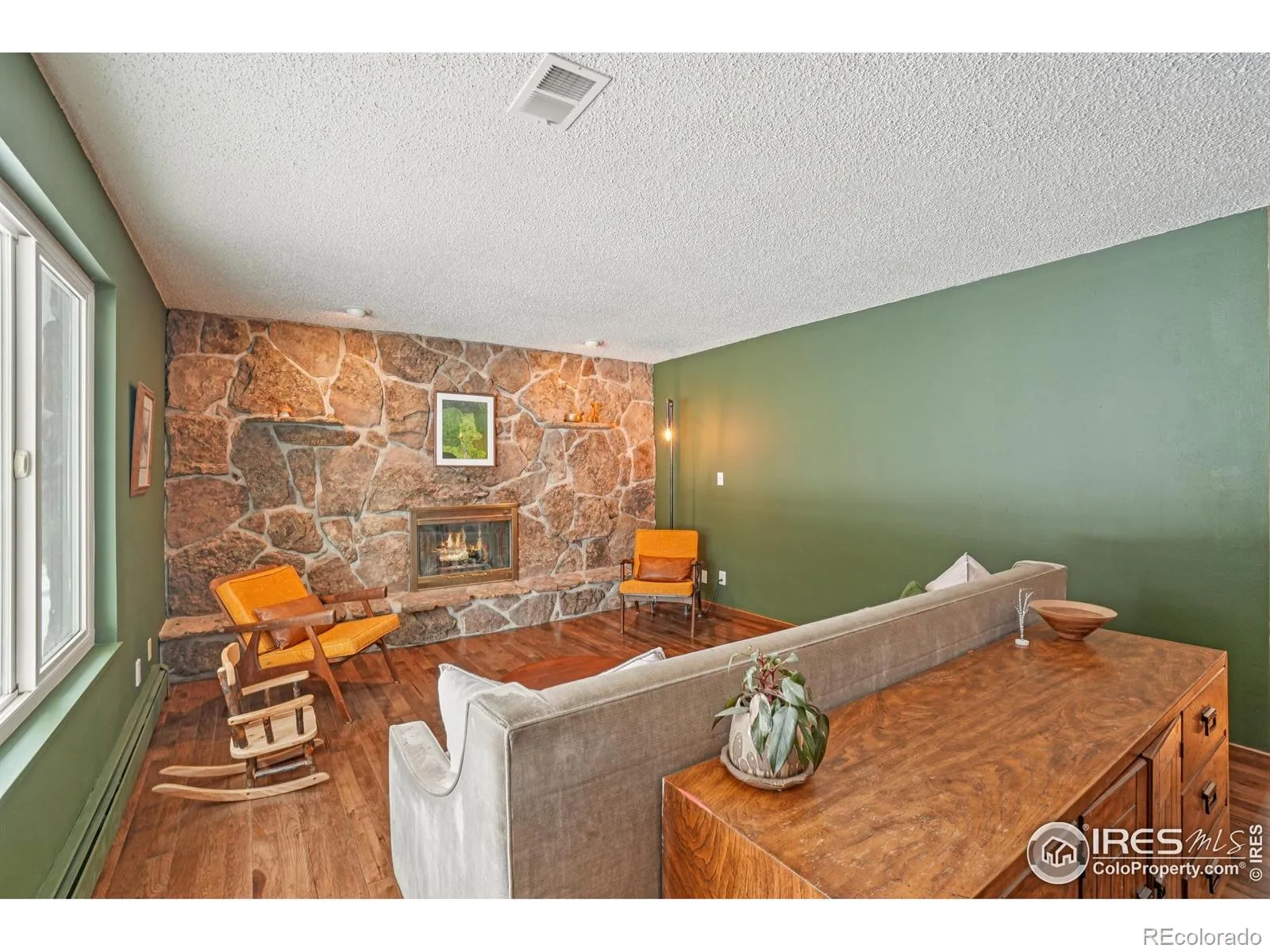 A true mid-century modern gem, this all-stone & brick exterior home blends timeless character with thoughtful updates. Step inside to find all new hardwood flooring and a tile entry that set the tone for a warm, inviting living space anchored by a real wood-burning fireplace. The large basement rec room offers flexible space for movie nights, a game room, or additional living.Out back, enjoy a covered patio and a fully fenced yard shaded by mature trees, with the added privacy of an alley-backing lot. The standout feature is the fully finished backyard shed, complete with insulation and heating/cooling-perfect for a private office, studio, or hobby space.All of this just minutes from Lake Loveland, where trails, water, and open space are right at your fingertips. Classic style, modern comfort, and a location that’s hard to beat.