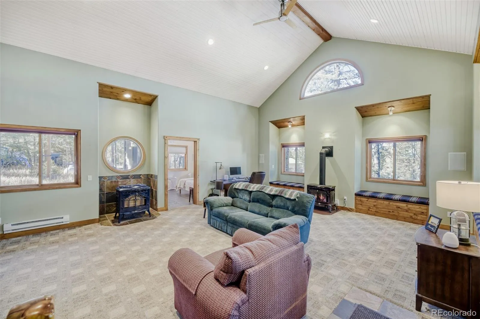 Step inside this 4-bedroom, 3-bath home, built in 1978 from solid wood, and feel instantly at ease. The great room, with its vaulted tongue-and-groove ceiling, porthole windows, and cozy window seats, radiates warmth and charm. Curl up by the Quadrafire pellet stove, enjoy music on the built-in 6-speaker system, or watch the light dance through the windows while sipping your morning coffee. The home also features surround sound throughout for a full audio experience. For creatives, the bright studio opens directly to tranquil flagstone patios—perfect for painting, writing, or quiet reflection. Downstairs, the family room with its brick-surround pellet stove offers another cozy retreat alongside a bedroom, laundry, workshop, and attached 2-car garage. The garage is WiFi-compatible, and a full camera security system keeps the home secure. This 1978 wood-built home offers multiple energy sources: natural gas pellet and electric heat, propane, and whole-house backup power for peace of mind. The property sits on a flat 1.5-acre lot with over 600 mature trees, a back driveway with power, RV hookups, and one of the deepest water wells in the county—perfect for irrigation, gardening, or your projects. The land stretches generously, offering space for outdoor activities, toys, or vehicles. Upstairs, the primary suite is a personal retreat, with a custom walk-in closet, ductless A/C, and spa-like bath with granite counters and a solar tube. Two additional bedrooms are bright, spacious, and filled with sunlight. Living areas flow naturally into the kitchen and dining space, featuring maple cabinets and bull-nosed Silestone™ countertops. Step outside onto the redwood deck with southern exposure and retractable awning, or enjoy quiet evenings on the flagstone patio below, surrounded by towering trees.