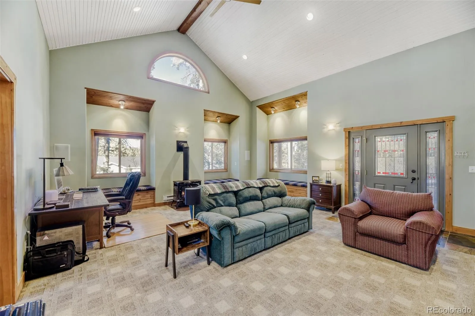 Step inside this one-of-a-kind 4-bedroom, 3-bath home and feel instantly at ease. From the moment you walk into the great room, with its vaulted tongue-and-groove ceiling, porthole windows, and cozy window seats, you’ll sense the warmth and charm this home exudes. Imagine curling up by the Quadrafire pellet stove, listening to your favorite music on the built-in 6-speaker system, or watching the light dance through the windows while sipping your morning coffee. For anyone who loves to create, the bright, inspiring studio opens directly to tranquil flagstone patios – perfect for painting, writing, or just enjoying a quiet moment outdoors. Downstairs, the family room with its brick-surround pellet stove offers another cozy retreat, alongside a bedroom, laundry, workshop, and attached 2-car garage. Outside, you’ll find plenty of space for your toys or projects with RV parking and power hookups, all backed up by a whole-house generator for peace of mind. Upstairs, the primary suite is your personal haven, complete with a custom walk-in closet, ductless A/C, and spa-like bath featuring granite counters and a solar tube. Two additional bedrooms are bright, spacious, and filled with sunlight. The living areas flow naturally into the dining space and kitchen, where maple cabinets and bull-nosed Silestone™ countertops make cooking and entertaining a pleasure. Step outside onto the redwood deck with southern exposure and a retractable awning, or wander down to the flagstone patio below for quiet evenings under the sky. Every corner of this home tells a story—of comfort, creativity, and connection – and it’s ready for the next chapter of your life.