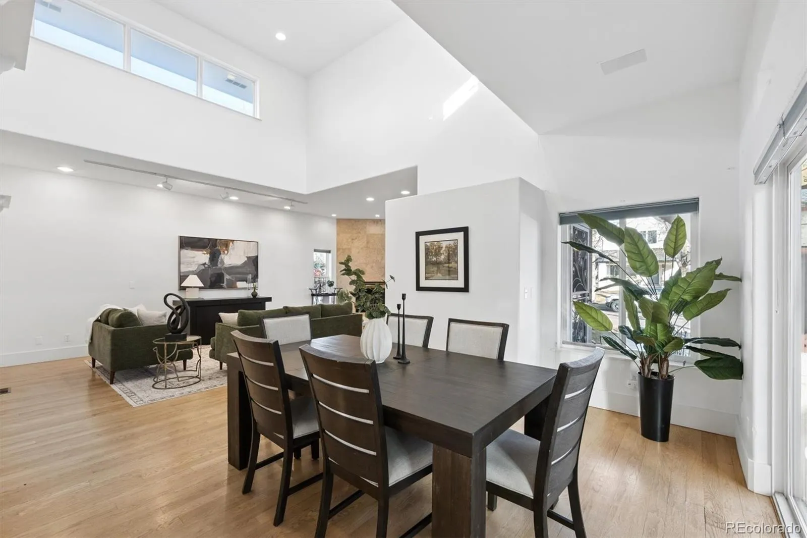 Spectacular location just a few steps from Washington Park. Prairie-style designed home, inspired by Frank Lloyd Wright, featuring roof overhangs and ribbon windows that fill the home with an abundance of natural light. A highly sought after main floor primary suite is complemented by an adjacent office with a private entrance and half bath – perfectly suited for today’s flexible lifestyle. A nicely appointed kitchen with stainless appliances and an inviting breakfast nook flows seamlessly into the living room, where soaring ceilings create an inviting gathering space. Two upstairs bedrooms share a well-designed hallway bathroom with a double vanity and a bonus loft area. The finished basement expands the living experience with a cozy family room, conforming fourth bedroom, full bathroom and generous storage area. Outdoors, the professionally curated landscaping surrounds the property with mature trees, vibrant perennials, a discreet dog run and a private patio offering a tranquil retreat. Additional highlights include an attached two car garage, oak hardwood floors, main floor laundry, solar panels, a gas fireplace and central air conditioning. This is a special floorplan located on one of the strongest blocks in Denver’s most coveted neighborhood.