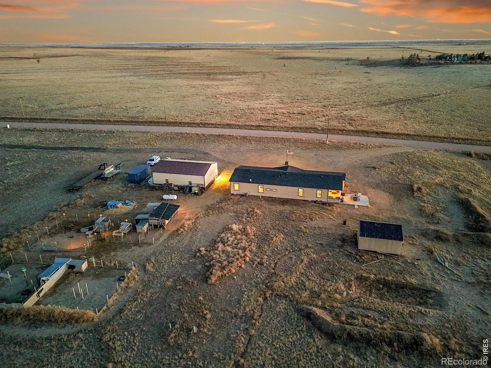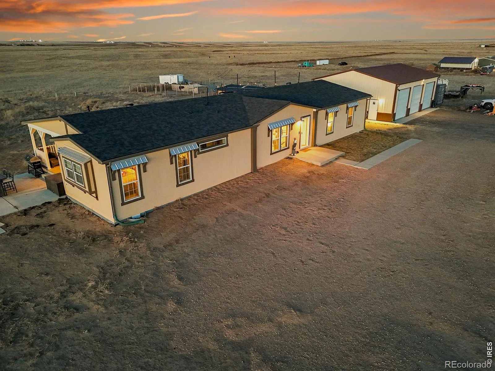 This spacious 4-bedroom, 3-bath home, has an open-concept that flows naturally with a generous walk-in pantry. The primary bedroom is a true retreat with a massive walk-in bathroom and oversized walk-in closet. As an added bonus, the second bedroom features its own large walk-in closet connected directly to a full bathroom perfect for kids, guests, or multi-generational comfort. The second and third bedroom share a convenient Jack and Jill bathroom! This home has an upgraded HVAC, and the living room includes a non-electric gravity-fed pellet stove. As a perk, $1,000 of pellets for the pellet stove will be included! Additionally, a brand-new roof has been applied with class 4 shingles. The agricultural infrastructure is already here and waiting for you. There are five fully functional animal pens with shelters (including a large metal-roof ideal for chickens) paired with wide-open pasture ready for grazing. A reliable multi-use well supports the home, livestock, and all your ag needs. This lot allows for up to three total homes giving you flexibility to add family quarters or expand your legacy exactly as you wish! Step outside and the possibilities multiply. The 1,200 sq ft shop/garage easily fits six vehicles and/or farm equipment. A separate 320 sq ft permitted outbuilding has a metal-roof already applied and is soft-wired and ready to be finished. This space is ideal for a farm office, guest quarters, bunkhouse, workout space, or future expansion. Both buildings and home are wired with premium CAT6A for network and surveillance infrastructure. There is covered patio that flows straight onto a concrete pad perfect for weekend BBQs, a hot tub, or simply relaxing while you watch the sun set over the mountains. Briggsdale delivers that small-town feel with a convenient mom-and-pop grocery store just minutes away for everyday needs, while still giving you the wide-open privacy you came for!