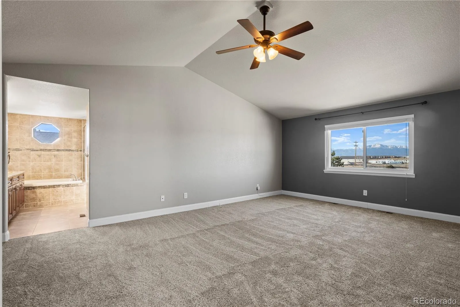Pikes Peak stands as the majestic backdrop to this exceptional two-story home, offering breathtaking mountain views from the formal dining room, gourmet kitchen, family room, primary suite, and across the expansive half-acre backyard. This residence seamlessly blends architectural grandeur with high-end custom finishes and timeless quality. The main level is defined by soaring vaulted ceilings in both the living and family rooms, creating an airy, light-filled atmosphere that highlights the exquisite hardwoods and rare, flush-mount matching floor vents. The gourmet kitchen is a chef’s delight with granite countertops, a stunning pantry and custom cabinetry. Subtle touches of luxury extend throughout the home with granite surfaces in nearly every bathroom and the spacious laundry room. Retreat to the massive primary suite, a private sanctuary featuring its own vaulted ceilings, iconic views of the Peak, and brand-new, plush carpeting. The attached five-piece master bath offers custom tiling and a generous walk-in closet. A major highlight is the newly finished basement, providing significant additional living space perfect for a home theater, guest quarters, or a massive playroom. For the enthusiast, the property offers an incredible total of five garage spaces—including a three-car attached garage and a detached two-car workshop—plus gated RV parking on the oversized lot. Modern convenience is integrated throughout, from the nearly whole-home dimmable lighting to a comprehensive security system protecting all windows and doors. Ideally located within walking distance to the King Soopers Marketplace and local dining, this is an incredible opportunity to own a home of this scale and caliber, where the massive 5-car capacity and 2-car detached shop perfectly complement the unmatched quality and world-class views of Pikes Peak.