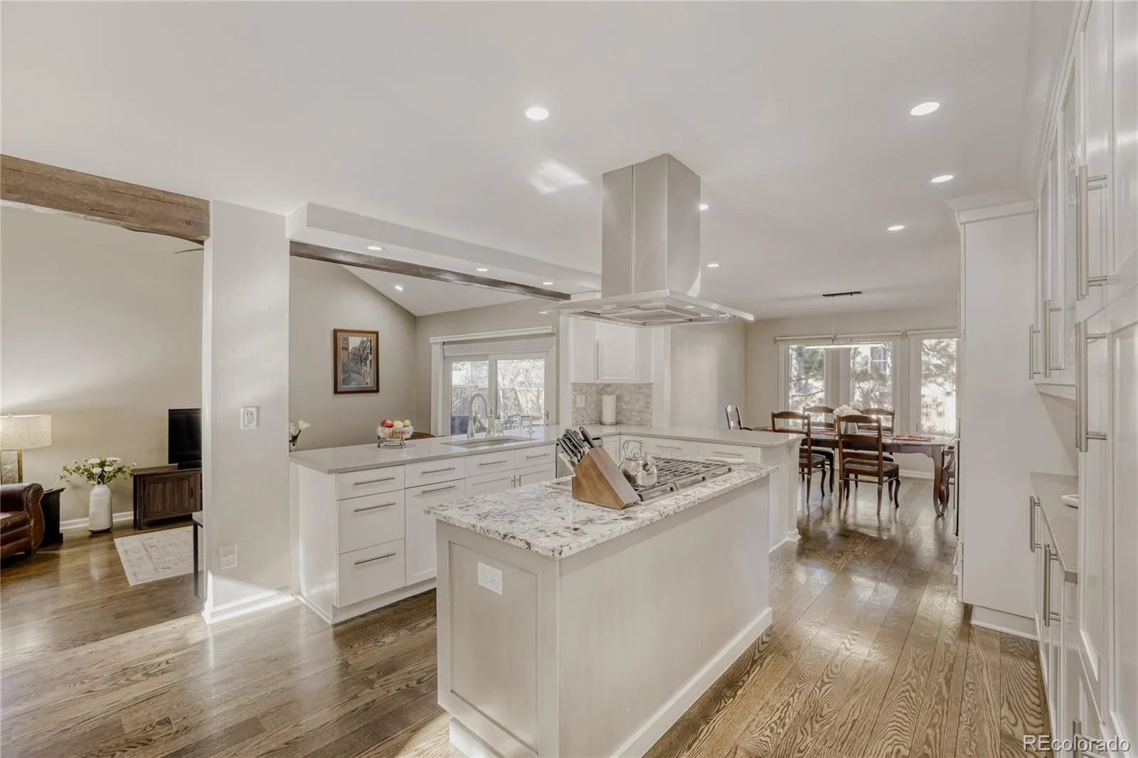 Perfectly positioned, this exceptional Arapahoe Estates residence offers a rare blend of privacy, space, and timeless design. From the moment you arrive, the light-filled front foyer, with soaring ceilings and skylights, sets a welcoming tone and draws you effortlessly into the heart of the home. Exquisitely remodeled with an updated kitchen festuring two Wolf ovens, Wolf stove and microwave, granite and corian countertops. Desirable main floor primary bedroom and updated bathroom with heated floors, custom vanity and a soaking tub. Stunning hardwood floors on both the main level and upper levels. This home is ready for you to move right in!