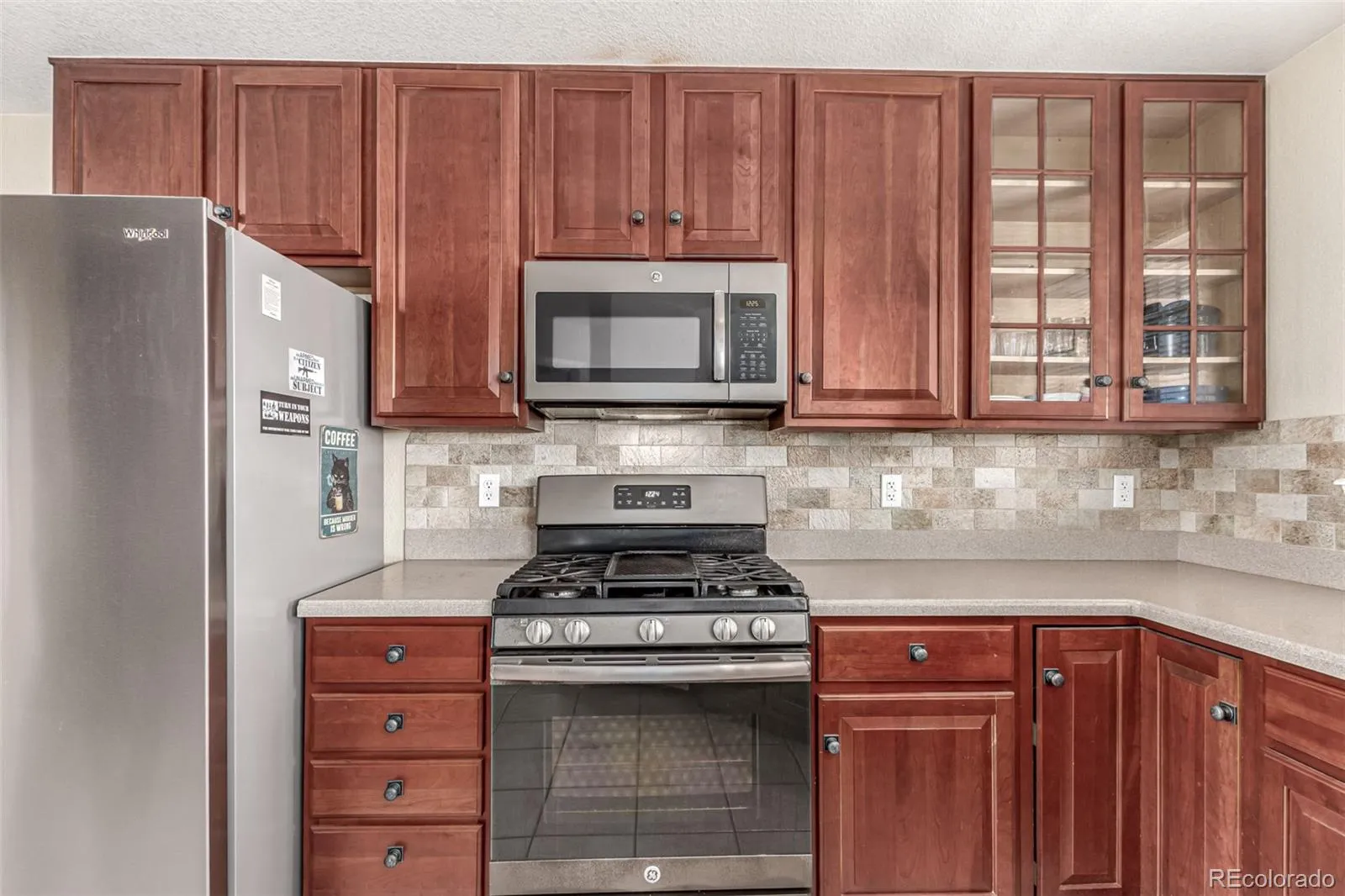 Welcome to this gorgeous townhome showcasing charming stone accents on the facade and a convenient 2-car garage. Inside, you’ll find a thoughtfully designed interior featuring pre-wired surround sound, a soothing neutral palette, and a cozy living room highlighted by elegant wall niches and a warm fireplace perfect for relaxing evenings or hosting guests. The kitchen is both stylish and functional, offering stainless steel appliances, rich wood cabinetry, a tile backsplash, and a peninsula with a breakfast bar ideal for casual dining or entertaining. Retreat to the spacious primary bedroom, where comfort awaits with a private bathroom boasting dual sinks, a luxurious jetted tub, and a generous walk-in closet. Downstairs, the finished basement adds incredible versatility with an additional bedroom and bathroom, making it an excellent space for guests, a home office, or extended living. Enjoy the convenience of being close to parks, dining options, freeways, and a variety of local amenities that make everyday living effortless. This beautiful townhome combines comfort, style, and location, an opportunity you won’t want to miss! Act now!