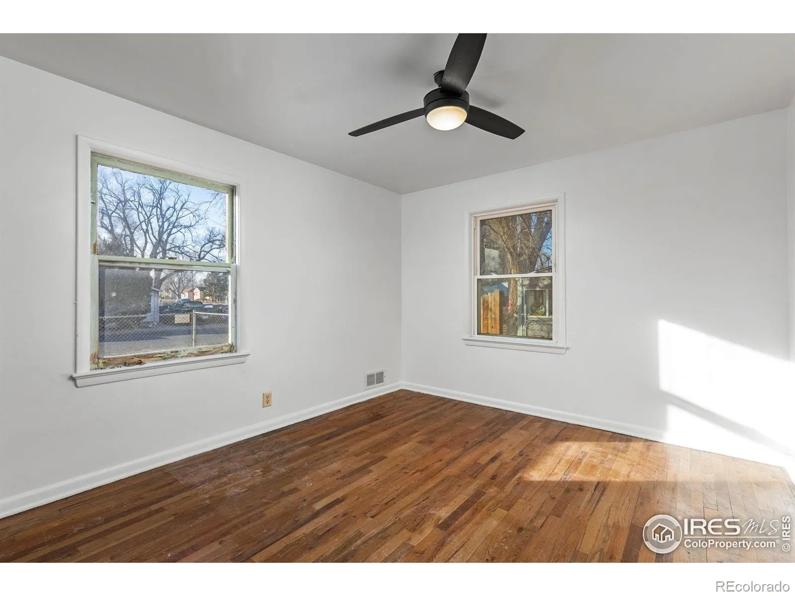 This is one of a kind and it has a new class IV hail-resistant roof providing peace of mind and reducing the cost of your homeowner’s insurance. The interior was just repainted last week. It’s got lots of interior and exterior storage spaces and there’s no HOA. Enter through the gate into the fully fenced front yard, featuring mature landscaping and raised garden beds which take advantage of southern and western sunlight Through the front door, warm hardwood flooring and arched doorways create character and welcome you in. The front living room is a cheery, bright space with an awning over the front windows providing shade and protection from inclement weather. Both bedrooms have new lighting fixtures/ceiling fans, and there’s a unique converted bonus room above accessed via a pull-down ladder. The kitchen is the nerve center of the home, with all appliances included (range/oven to be added) and a lot of cabinets and counterspace plus a recessed showcase with glass doors to display your China and/or fine collectibles. The rear sunroom/family room affords flexibility in its use as a second living room, formal dining room, exercise room, etc. and leads out to the covered patio and the large shady backyard which is fully fenced and private, allowing for relaxation and security for the kids and pets to play in. A shed gives you room for more storage, and the oversized detached garage (aka workshop) is equipped with built in shelving and cabinets, a work bench, a heater and an extra refrigerator. There’s a long and wide west facing driveway for extra off-street parking. Located right by the newly re developed Swanson Kiwanis Park plus walkable to events at Lincoln Park, Farmer’s Market, Friday Fests on the Plaza, the Rec Center, Civic Center, historic downtown’s museums and cultural attractions, restaurants, entertainment, shopping, government offices and services as well as Island Grove Regional Park, home of the Greeley Stampede.