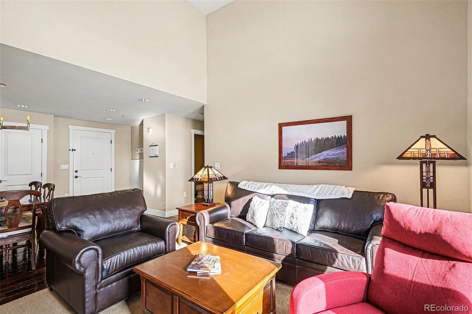 Rare slopeside Base Camp penthouse with ski area views and true ski-in/ski-out access at Granby Ranch, offering the full mountain lifestyle. This exceptional 4th-floor residence is one of only two two-bedroom units on the top level, featuring tall vaulted ceilings and an open, light-filled layout. Enjoy beautiful ski area views from a unit that has never been rented and is in excellent condition. High-end finishes include granite countertops, hardwood floors, and a stone fireplace, ideal for cozy après-ski evenings. The spacious primary suite features a luxurious five-piece bath. The condo is within walking distance to the pool and includes one covered parking space, plus dedicated ski and gear storage. Located at the base of Granby Ranch—the heart of the community—owners enjoy year