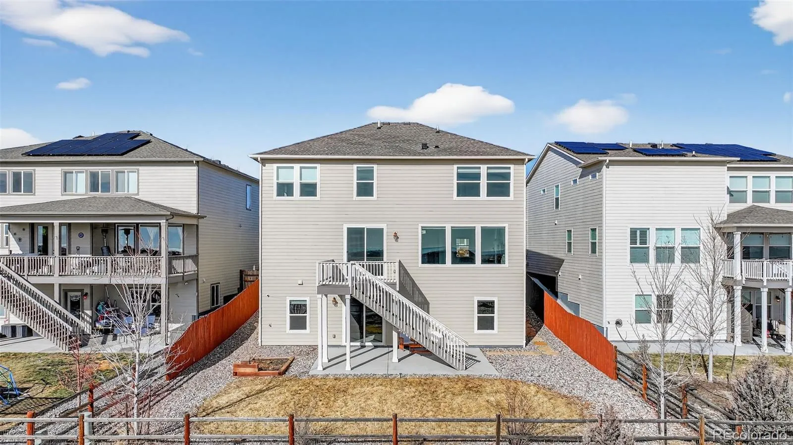 Welcome home to this beautifully appointed 4-bedroom, 4-bath residence in the heart of Meridian Ranch, one of the most desirable communities. Thoughtfully designed for both everyday living and entertaining, this home offers space, style, and views that truly set it apart. Step inside to an inviting open floorplan filled with natural light and seamless flow between the living, dining, and kitchen areas. The living room is anchored by a beautiful fireplace, creating the perfect cozy gathering spot on Colorado evenings. Just beyond, a Trex deck extends your living space outdoors — ideal for morning coffee or sunset relaxation. The gourmet kitchen is a showstopper, featuring generous counter space, quality finishes, and room for everyone to gather around the heart of the home. Whether hosting holidays or casual dinners, this space delivers both function and flair. Upstairs, you’ll find a versatile loft area — perfect as a home office, study space, or additional lounge — along with spacious bedrooms designed for comfort and privacy. The fully finished walkout basement adds incredible flexibility, offering additional living or entertainment space and direct access to a concrete patio making indoor-outdoor living effortless. And then there are the views — sweeping south-facing vistas and breathtaking east-west sightlines that showcase the majestic Front Range. Colorado living doesn’t get better than this. Residents enjoy the exceptional amenities provided by the Meridian Ranch Metro District, including water, sewer, snow removal, an indoor/outdoor pool, and a full workout facility — all designed to support an active, connected lifestyle. This home blends comfort, elegance, and community — a place where memories are waiting to be made.
