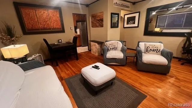 The condo boasts lots of natural light, beautiful hard wood floors, a large bedroom and a full sized bathroom.