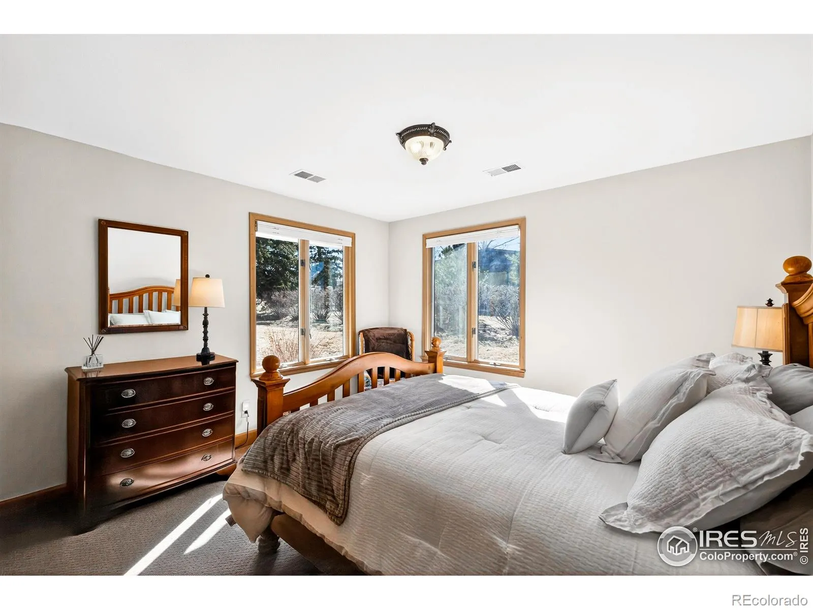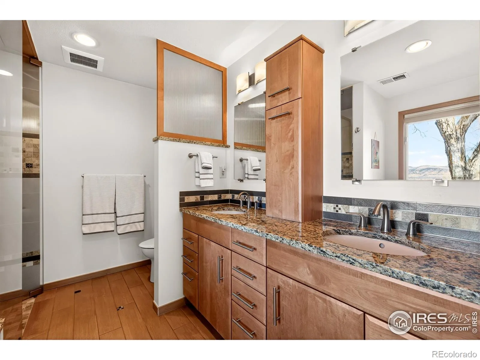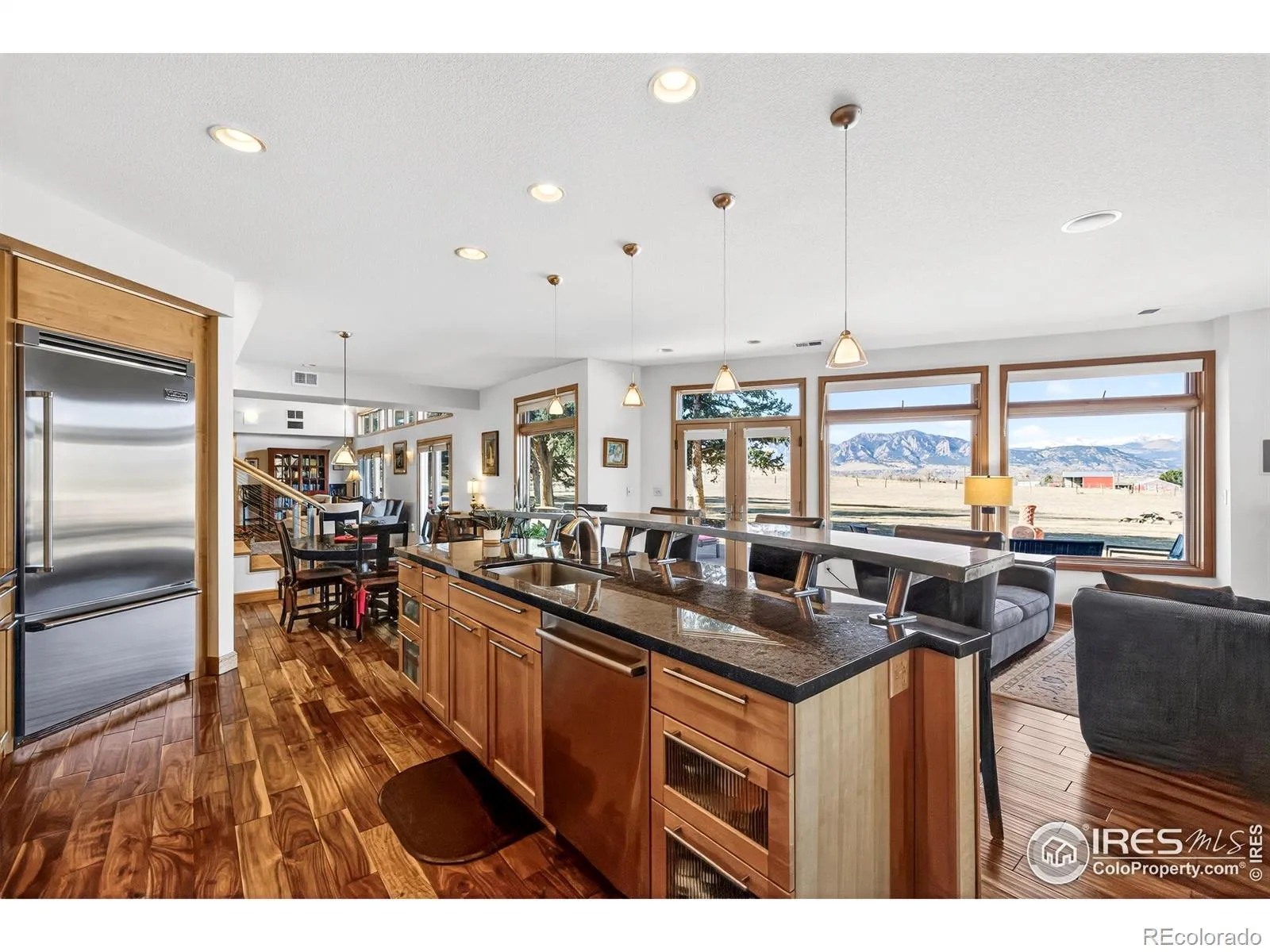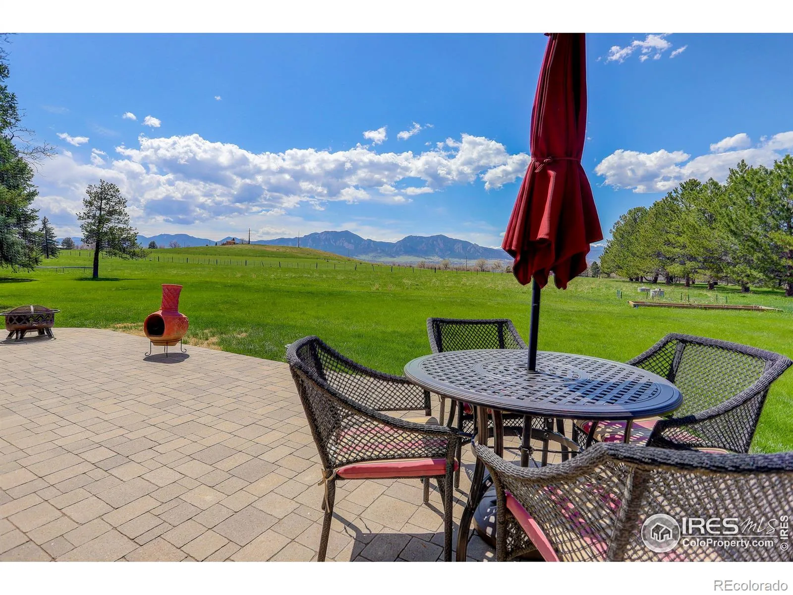 Welcome to Vista Prive, an extraordinary private retreat offering some of Boulder’s most breathtaking, unobstructed views. Tucked along a picturesque country lane, this one-of-a-kind residence evokes a rare sense of seclusion and serenity, while remaining just minutes from downtown’s vibrant energy. From the moment you enter, you are captivated by soaring ceilings and dramatic volumes of light in the expansive great room. A striking double-sided, wood-burning fireplace anchors the formal living and dining spaces, creating an inviting ambiance for gatherings. Radiant-heated wood floors flow effortlessly throughout, guiding you into the heart of the home. The chef’s kitchen is both refined and functional, featuring premium appliances, granite countertops, and a stainless-steel breakfast bar, perfectly positioned to take in the sweeping, ever-changing landscape. Open to the family room, this space invites connection and comfort framed by panoramic views. Upstairs, the secluded primary suite is a true sanctuary, showcasing vaulted ceilings, a cozy gas fireplace, and a private patio. The spa-inspired five-piece bath offers a steam shower, jetted soaking tub, and generous walk-in closet. A second main-level primary suite provides direct access to the patio and hot tub, ideal for guests or multigenerational living. Two additional main-level bedrooms are filled with natural light, while a thoughtfully designed den creates the perfect home office or creative retreat. A private, tucked-away guest suite on its own level offers exceptional privacy and flexibility for visitors. Designed for seamless indoor-outdoor living, this residence embodies the very essence of the Boulder lifestyle. Expansive patios, tranquil surroundings, and adjacent farmland create a breathtaking backdrop for sophisticated entertaining and everyday enjoyment. This is more than a home, it is a rare sanctuary where luxury, nature, and privacy converge in perfect harmony.