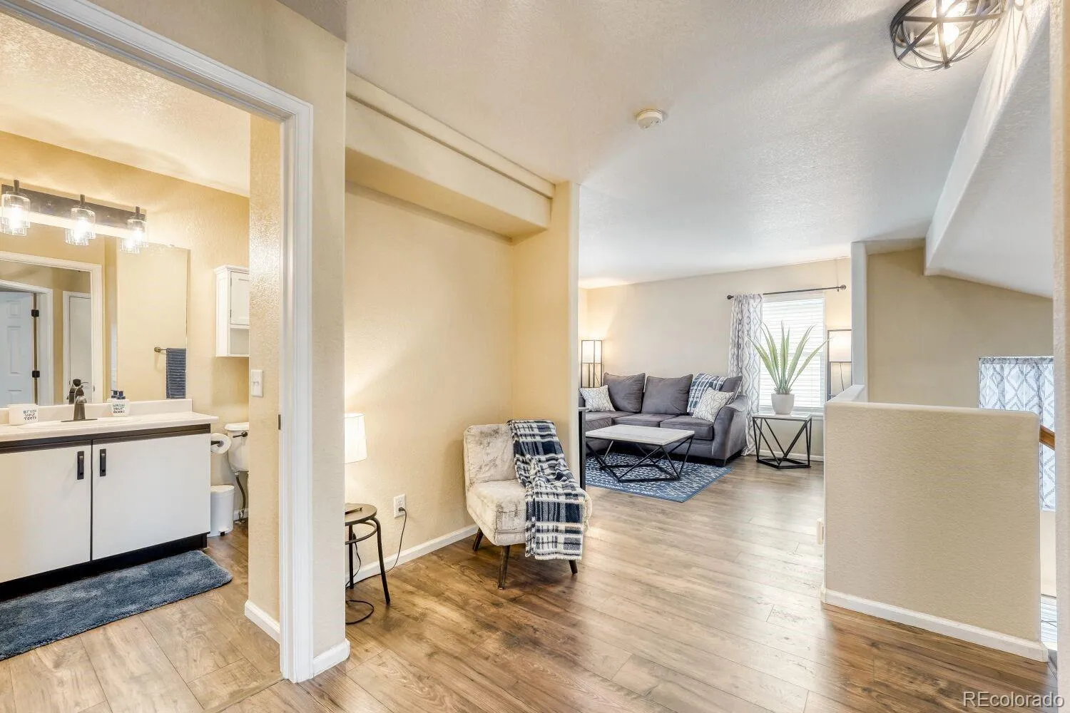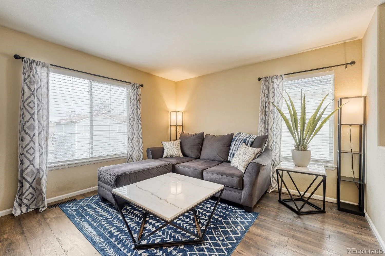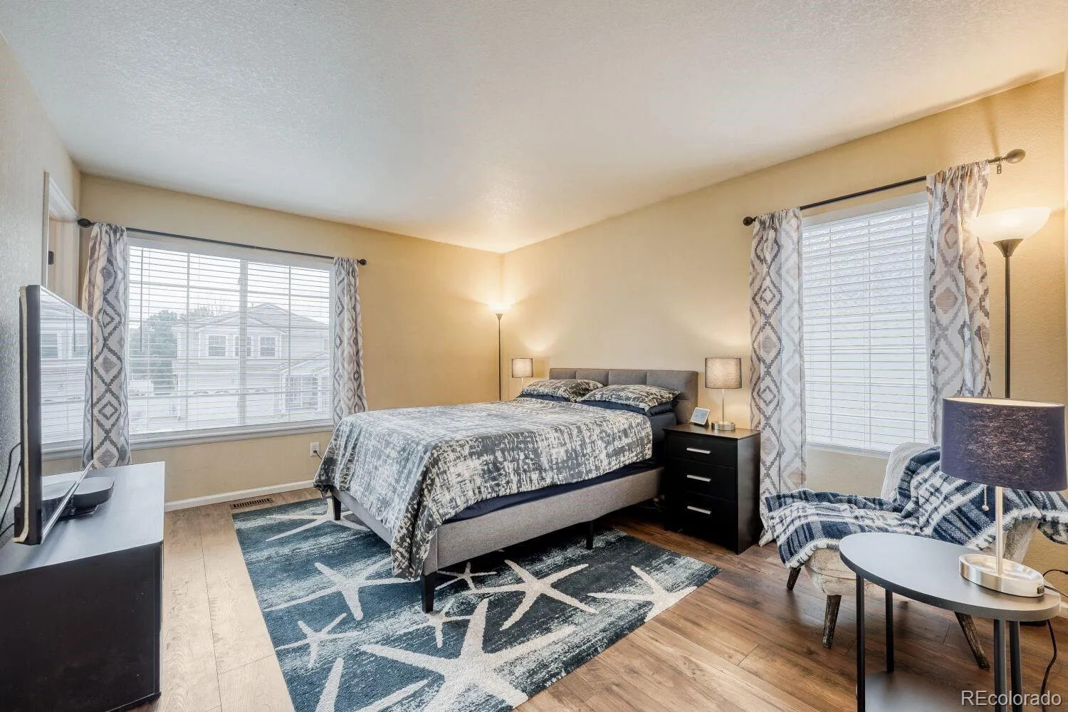 Upstairs, the private primary bedroom serves as a relaxing retreat with ample space, large windows, and a calm, neutral palette. The additional bedroom and loft provide flexibility for guests, a home office, or growing needs. Thoughtful finishes, updated lighting, and a functional layout make this home truly move-in ready. Updated features include Laminate wood flooring in 2020, New HVAC and Water Heater in 2025 This home is conveniently located near parks, trails, shopping, dining, and DIA, this home offers the perfect balance of comfort, style, and accessibility.