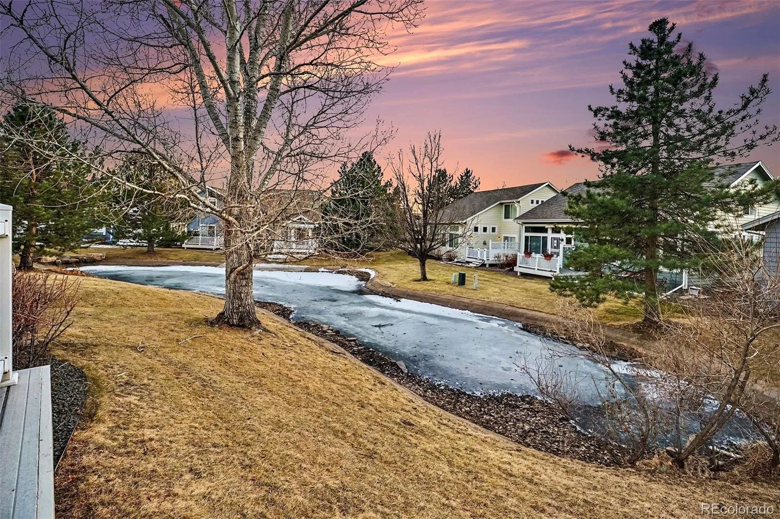 Rarely does such a beautiful Ranch Patio Home on a corner lot with a 2-car garage become available in the sought-after neighborhood of Wyndham Park. You’ll love this gorgeous home with mature landscaping & a gorgeous pond and water feature in the backyard that gives you such a feeling of peace and serenity while you enjoy your back deck. As you step into this immaculate Home, you will immediately experience the beauty of this open concept floor plan design with light & bright windows that let the sunshine in all around. Entertaining is easy with the family room & kitchen flowing so beautifully together in this well designed floor plan. You’ll love the large family room with a large picture window and a built-in gas fireplace. You’ll enjoy entertaining in the amazing chef’s kitchen with beautiful stainless steel appliances, lots of cabinets and counter space, gorgeous hardwood flooring, along with a large sliding glass door with easy access to your back deck for entertaining. The back deck has a privacy fence and it also includes one awning for the deck and another awning for the family room so you can enjoy outdoor living at any time of day. This stunning home also offers 2 bedrooms and 2 bathrooms that are all conveniently located on the main floor. The primary bedroom is the one you’ve been dreaming of with high vaulted ceilings and lots of windows, along with a large full bathroom that includes a double sink vanity, large tub, walk-in shower, a large walk-in closet & a second large closet with sliding double doors. The 2nd bedroom is near the front of the Home and is conveniently located next to the 2nd full bathroom. The laundry room has upper level cabinets for storage and also resides on the main floor too. The unfinished basement has endless possibilities but it is already a great place for storage, a play area for the kids, a work out room, a theatre room etc. You can have it all in this gorgeous Home with no exterior maintenance or yard work!