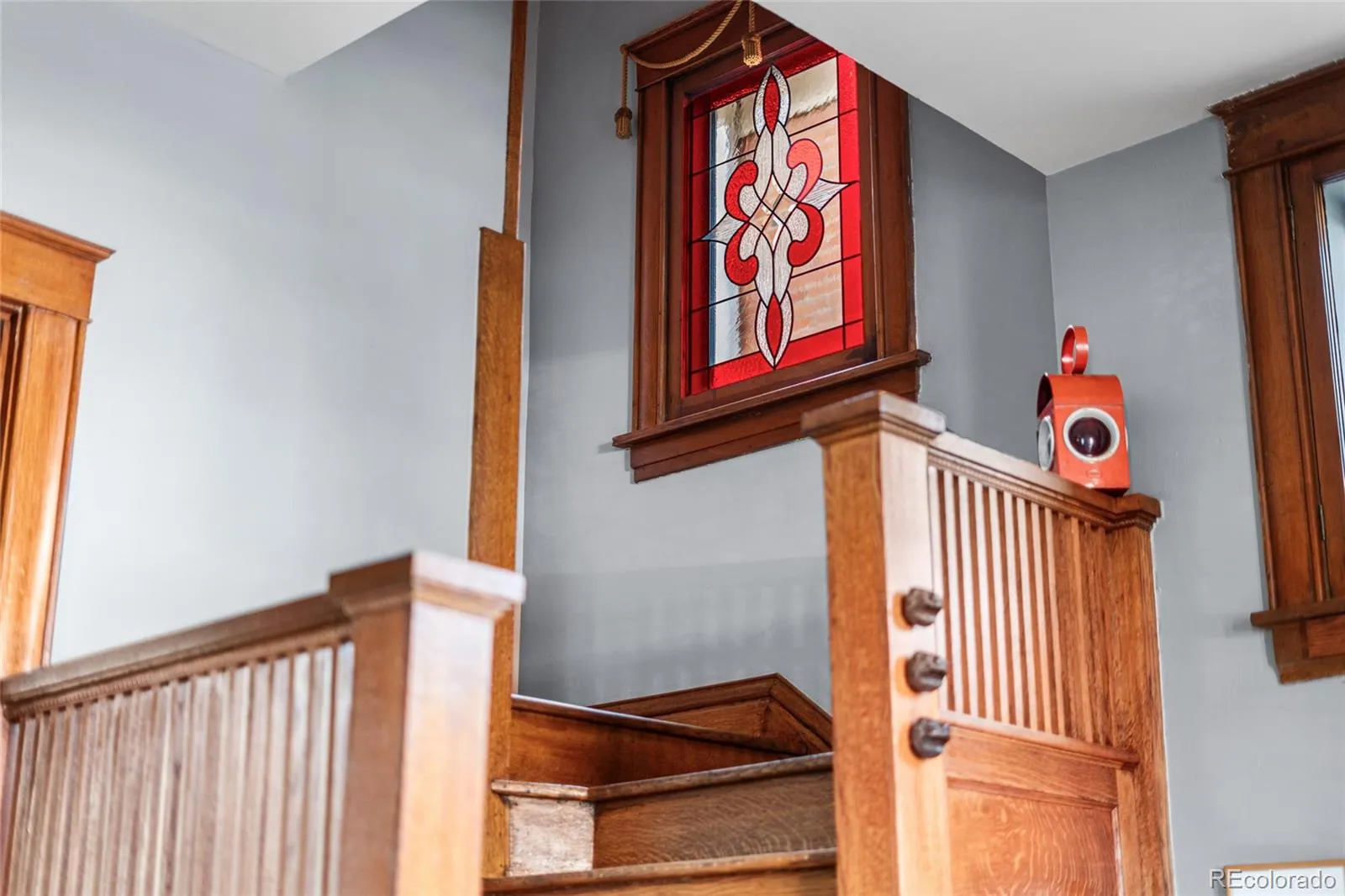 The first and second levels showcase original craftsmanship, including rich woodwork, a gracious entry and staircase, hardwood floors, built-ins, and classic trim and window casings. Leaded and stained-glass windows add architectural interest, while the living space features a custom-built fireplace finished in Cle tile. The kitchen was fully redesigned in 2024 with an efficient layout, offering new cabinetry and shelving, double drawers, a gas range, quartz countertops, an instant hot water faucet with filtration, and an antique pantry piece.