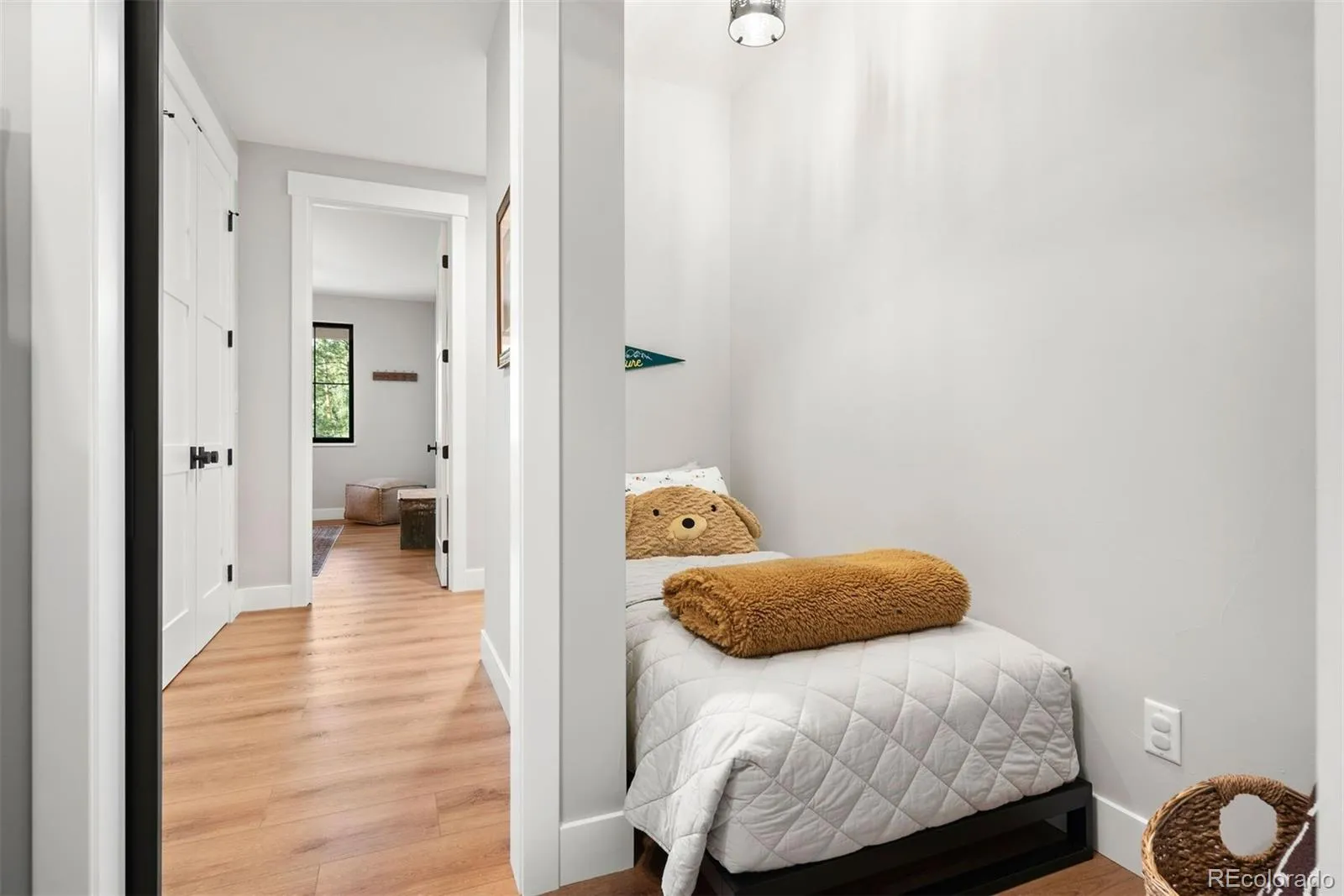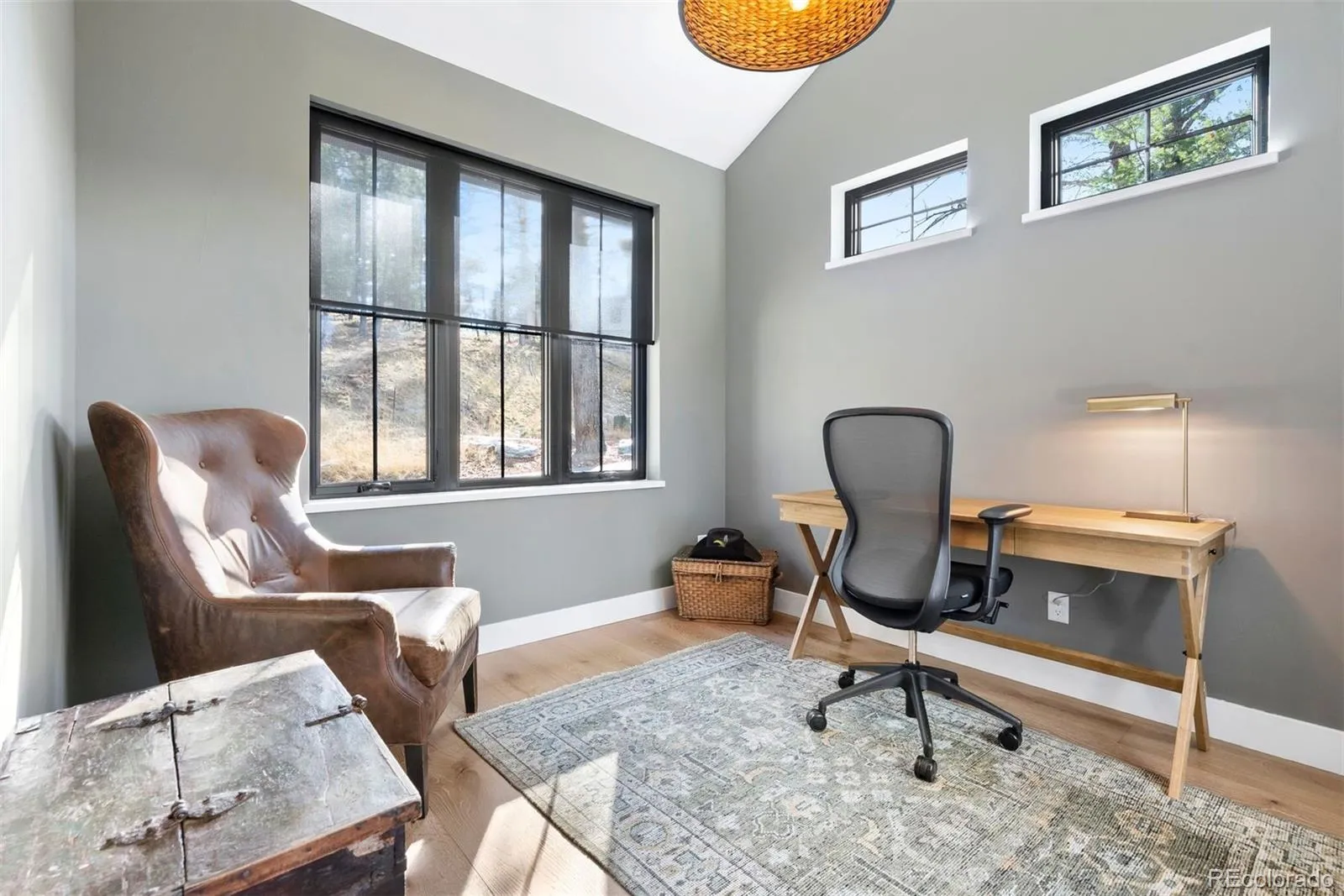 Positioned at the coveted end of a peaceful cul-de-sac, this gorgeous property is defined by premium finishes & materials that create an atmosphere of sophisticated mountain living. Pristine craftsmanship and contemporary design represent an exceptionally rare opportunity for brand new construction in the mature mountain community of Evergreen where most properties have graced the mountainsides for decades. A collaborative vision of builder Best Custom Homes, local architect Terry Winegard and Blackbird Kitchen and Bath; this stunner is a magazine-worthy home that seamlessly blends rustic mountain charm with modern luxury. The thoughtful floor plan features 3 bedrooms, a dedicated office, versatile loft area, and what can only be described as the most charming bunk room imaginable – ideal for hosting guests or providing a special space for children and grandchildren. Outdoor living spaces offer views for days and backdoor access to 900 acres of open space! Skyline Ridge is a gated community just 2 miles from historic downtown Evergreen & beloved Evergreen Lake – where 26 incredible homesites are surrounded on 3 sides by Denver Mountain Parks. The neighborhood boasts views of Mount Blue Sky, Mount Rosalie, Mount Kinney, Evergreen Mountain, and the mountain range of Rocky Mountain National Park. No detail has been overlooked throughout the interior, (ask about purchasing furnished!) from white-oak flooring, reclaimed newel posts & Hunter Douglas window coverings. The kitchen showcases quartz countertops, top-of-the-line Thermador appliances & a handmade Moroccan Mosaic Zellige tile backsplash, while a mushroom board ceiling adds texture. Warmth & ambiance are provided by a magnificent limestone & rugged rock fireplace in the family room & Titan free-standing gas stove on the lower level. Exterior elements, including Marvin windows, a 24-gauge metal roof & Hardie Board siding have been carefully selected for both beauty & durability in Colorado’s climate.