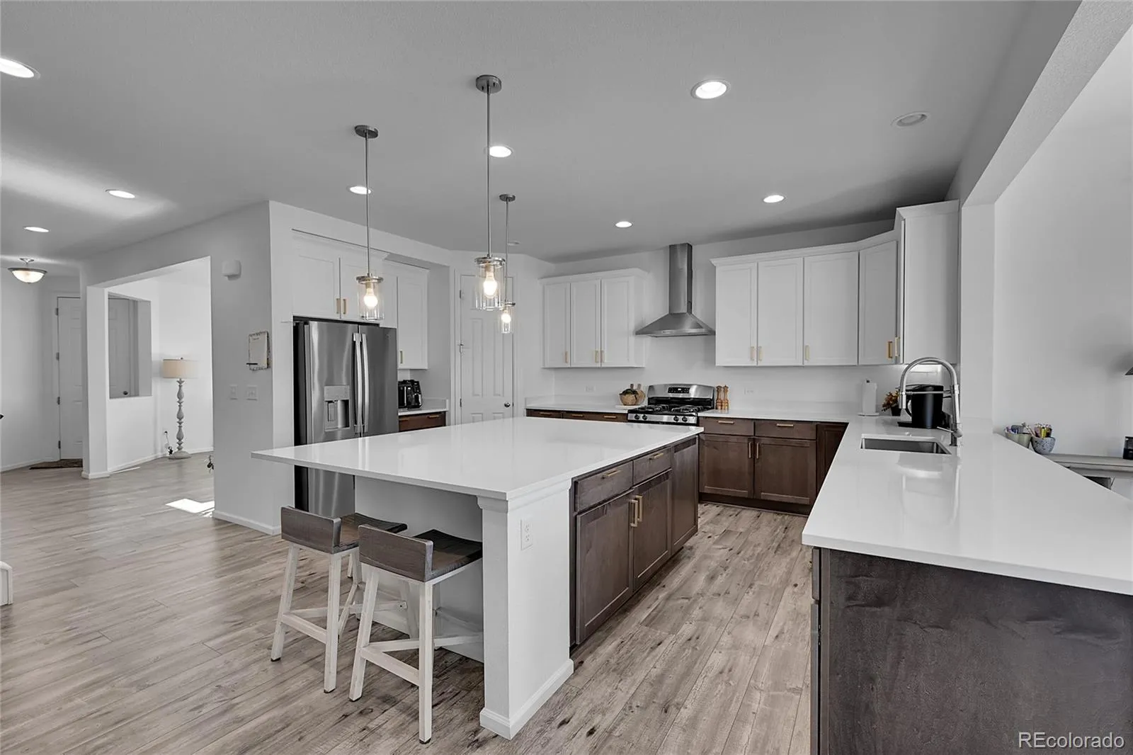 Welcome to this beautifully situated corner-lot home, like new, and one of the largest models in the area. Six bedrooms, four baths, second floor loft, finished basement, and STUNNING kitchen where the oversized quartz kitchen island is the center feature and heart of the of the main floor. This home balances rustic charm with clean, contemporary design, open-concept living and cozy living spaces. It feels inviting, bright, and, above all, functional for family life. Enjoy endless sunsets and mountain views in this prime location. You have mountain views from the master bedroom, sunroom and back deck, the ideal spots to relax, sip your morning coffee, or unwind at sunset. This home is bright, spacious and Located in Sky Ranch, a neighborhood with four parks, nearby schools and walking trails. Close to I-70 and E470.