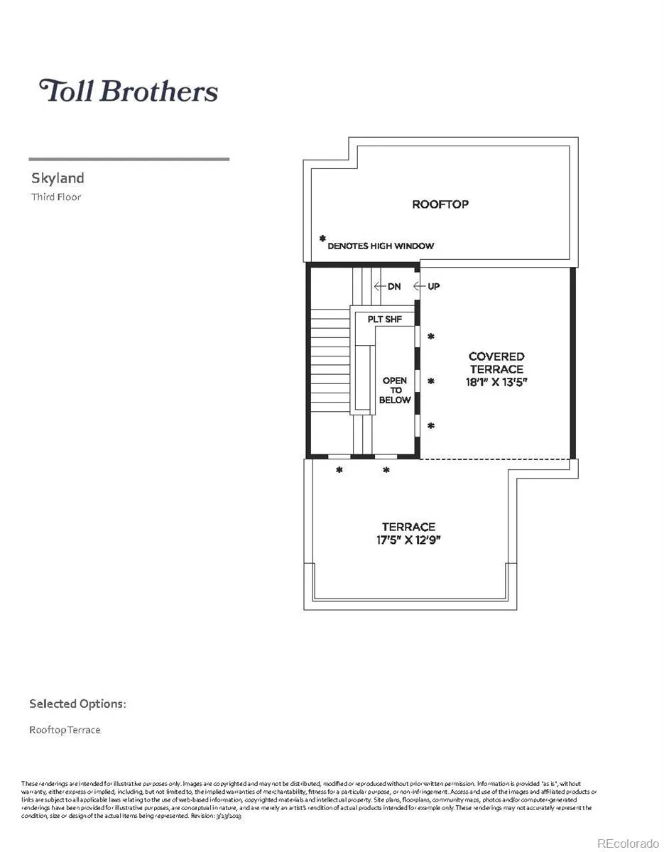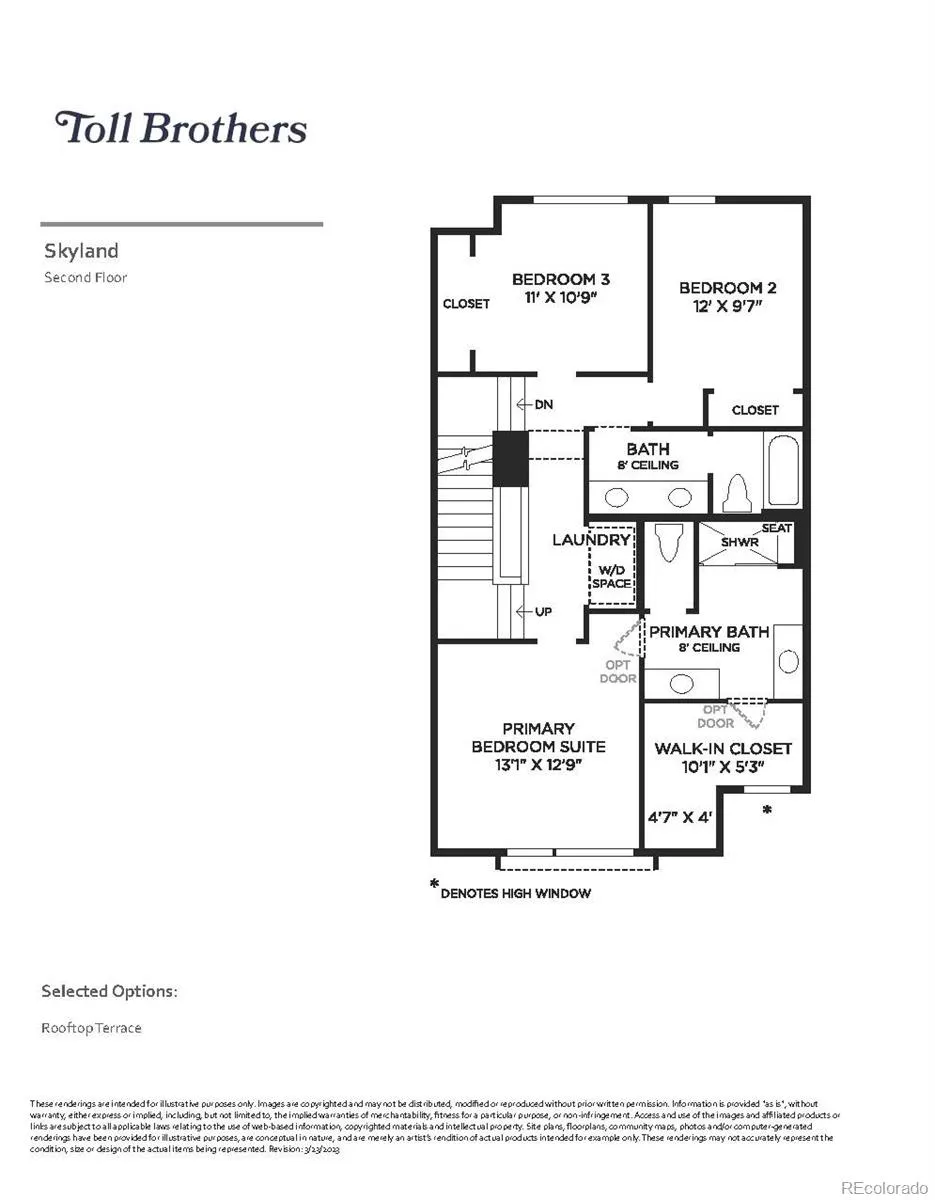 The Skyland’s inviting front stairs and welcoming foyer open immediately onto the spacious great room and beautiful casual dining area on the second floor. The well-appointed kitchen is enhanced by a large center island with breakfast bar, plenty of counter and cabinet space, and roomy pantry. The marvelous primary bedroom suite is highlighted by an impressive walk-in closet and spa-like primary bath with dual vanities, luxe shower with seat, and private water closet. Secondary bedrooms feature sizable closets and shared hall bath with separate dual-sink vanity area. Additional highlights include a secluded office with powder room on the first floor, convenient powder room on the second floor living level, centrally located laundry on the third floor bedroom level, and additional storage throughout. Partially covered oversized rooftop terrace is ideal for all of your outdoor living.
