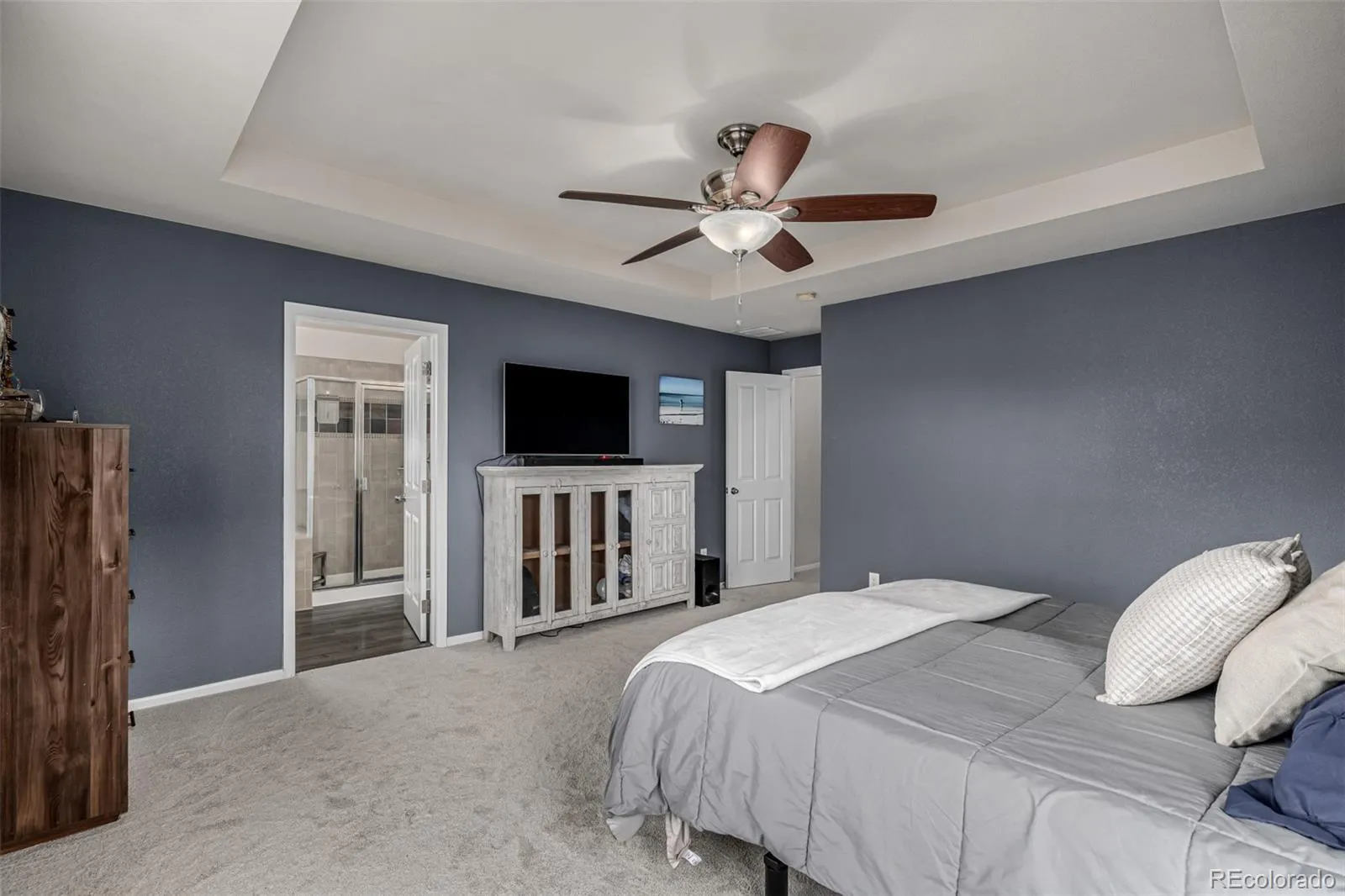 Welcome to this spacious 2-story home located in the heart of Erie. Walking distance/short drive/bike ride to a multitude of shops, including Starbucks & several dining options, Lehigh Park, the neighborhood pool & gym, Colorado National Golf Club, walking & bike trails leading to 100’s of miles of exploration, making this homes location desirable. Erie is known for its community feel, small town vibe, its proximity to outdoor recreation and superb views of The Rocky Mountains. Inside this well loved home you will discover the spaciousness it offers with several living spaces throughout. The main floor provides a sunlit office with glass paneled French doors & built-ins. A formal sitting area and dining room with a 3-way gas fireplace greets you upon entry and guides you to the heart of the home – the Kitchen. This kitchen includes an island with plenty of eat-up seating space, quartz counters and multiple areas for food prep, a double oven, gas cooktop, walk-in pantry, ample cabinet space for storage and a cozy breakfast nook with a bay window. The sizable main floor laundry-room closes off providing generous cabinetry, washer & dryer and utility sink for whatever life challenges arise. Upstairs enjoy brand new plush carpet, a massive primary suite with an attached 5-piece bathroom, soaking tub, double sink, linen closet & walk-in closet. 3 spacious secondary bedrooms on the upper level, one including a private en-suite full bath. The fully finished basement with a wet bar offers multiple flex spaces to use however your heart desires. This home is LOADED with storage space, closets galore and a tandem 3 car garage with tall ceilings for additional storage. The outdoor spaces of this home offer both a covered front porch and a covered back patio + hot tub. A perfect sized yard for easy maintenance. Add’l info: Solar panels, roof w/premium Class 3 impact resistance 2023, exterior paint 2023, hot water heater 2023, new main water line, Bosch dishwasher.
