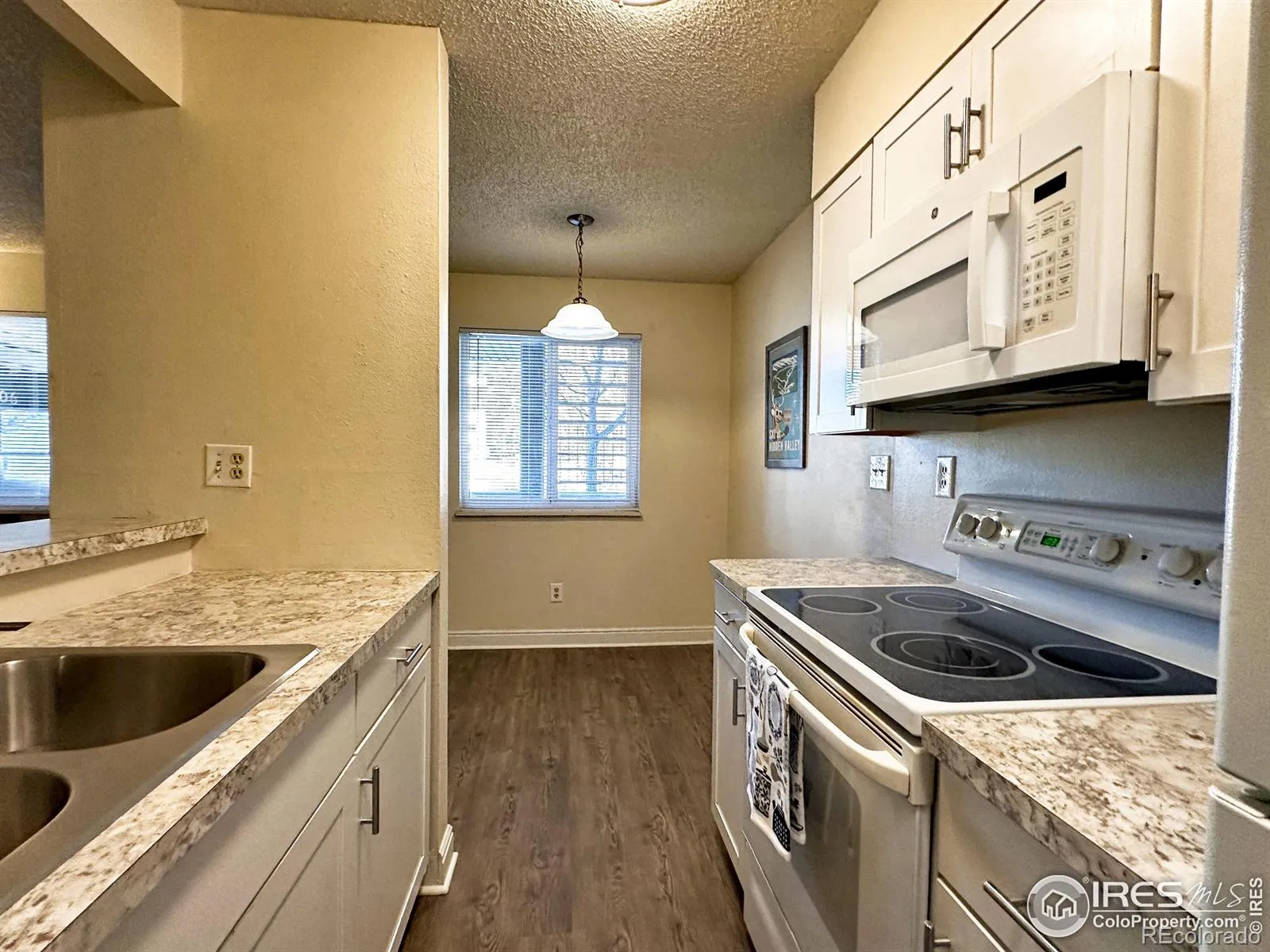 Lakefront! Super location! Step out the front door to the lake and a few more steps to the pool and clubhouse Nice ground floor unit offers the highly desired open concept floor plan with breakfast bar. Updated kitchen, bathroom and flooring. Large bedroom has two closets, two windows and offers flexibility for a bedroom and home office or two beds. View the lake from the living room and dining area. New electric panel in 2025. Storage closet. Heatheridge Lakes is centrally located, abuts open space and is close to CSU, bike trail and park. Bus stop is at the end of the street.